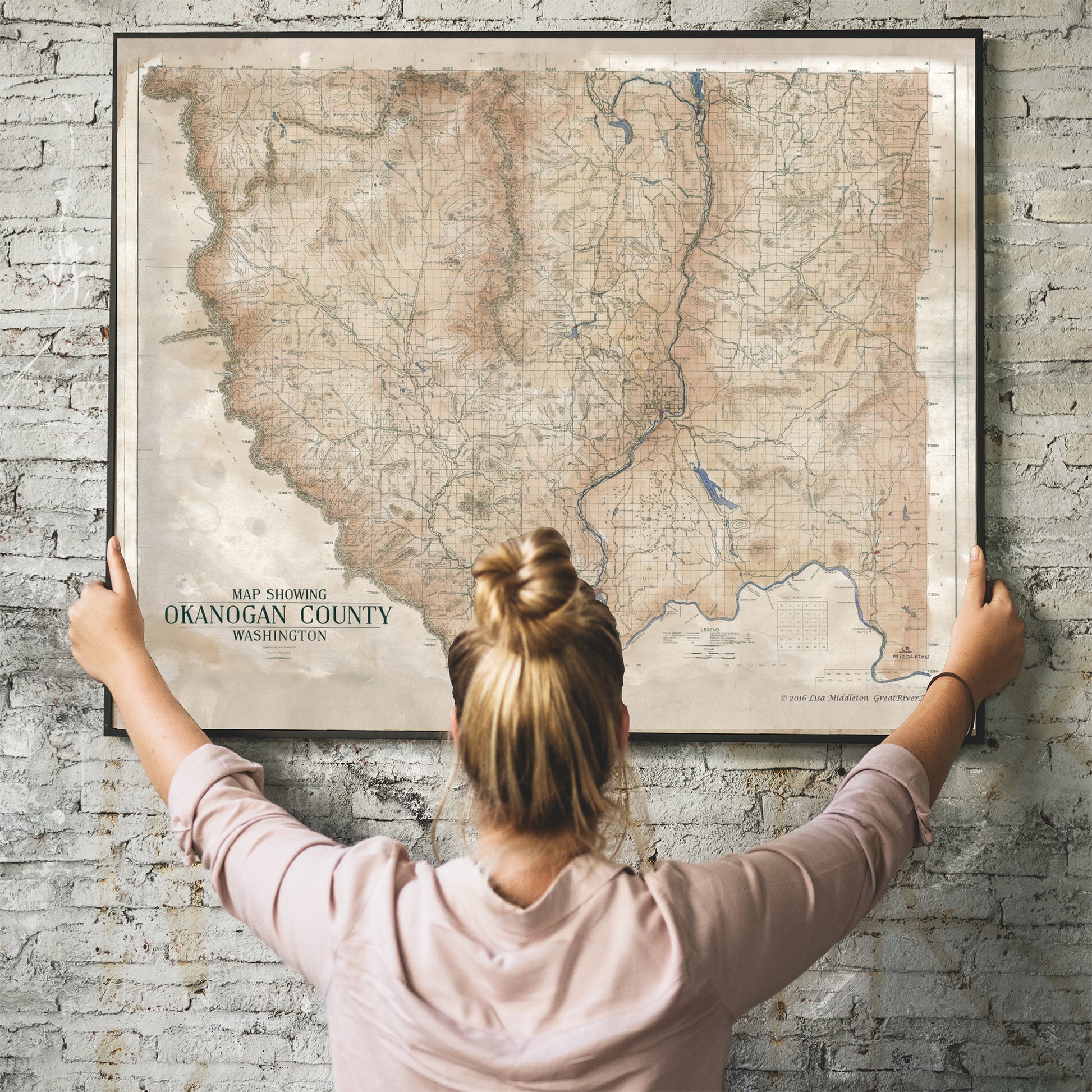166 Okanogan County 11x14"" vintage historic antique map poster print by Lisa Middleton