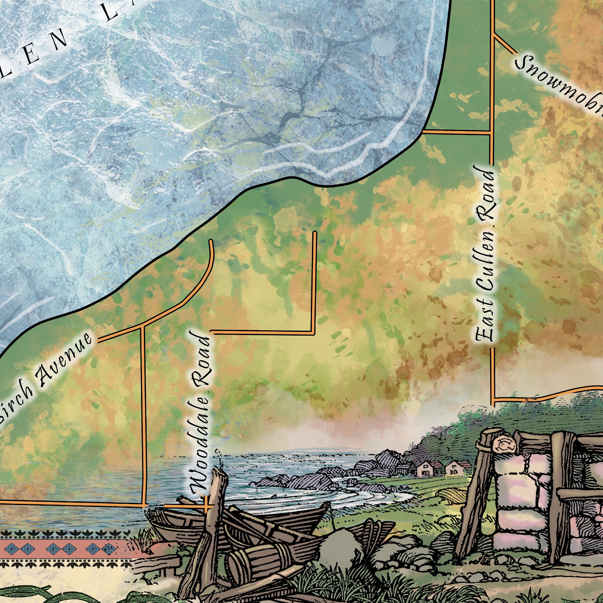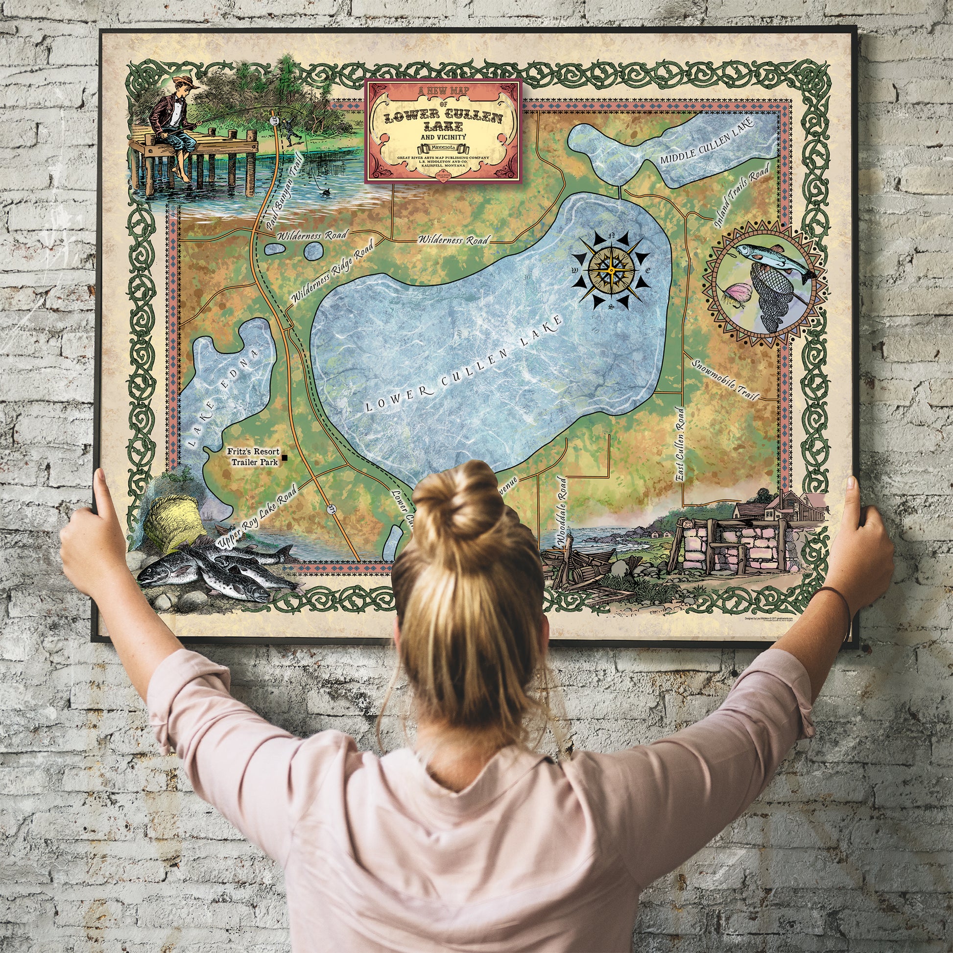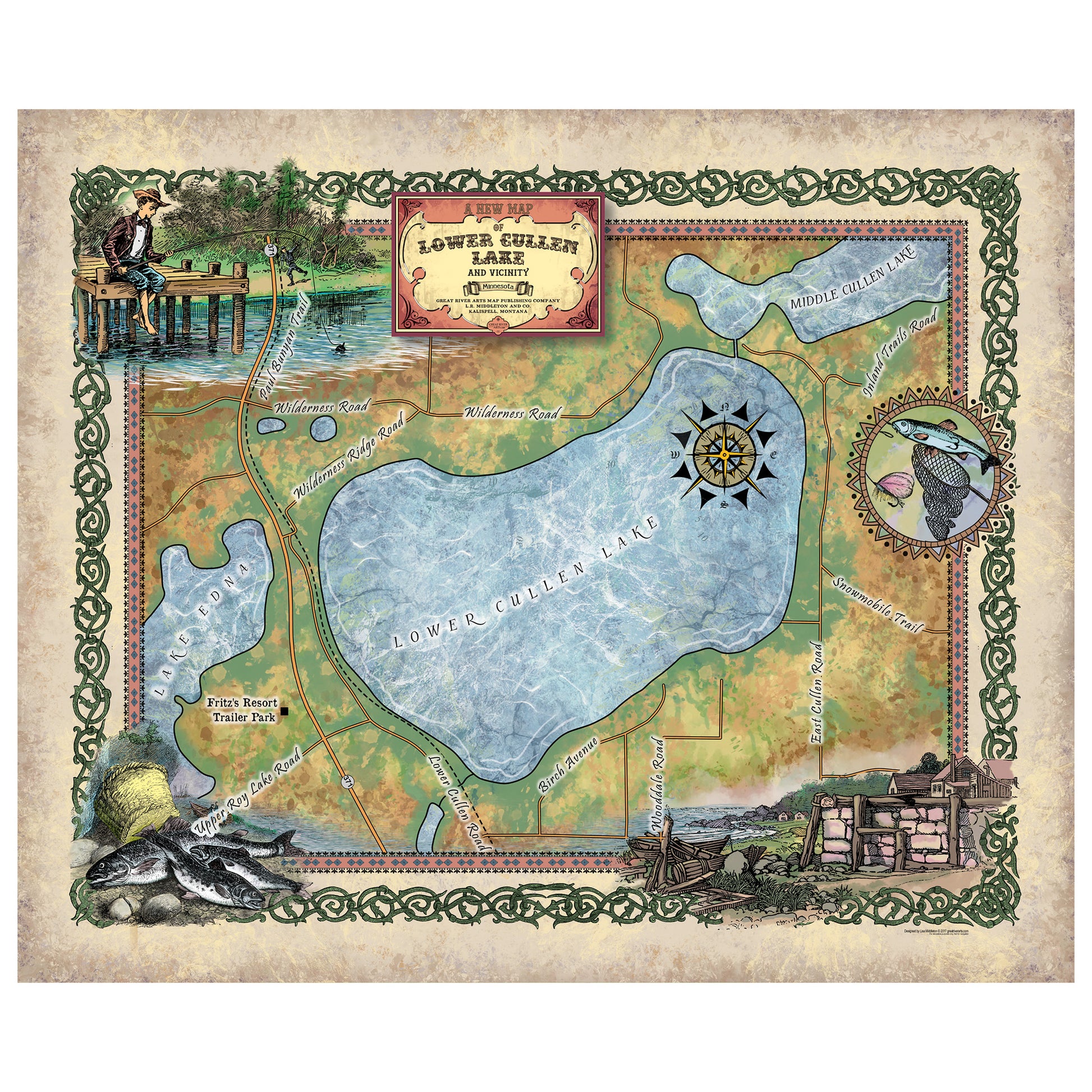 286-Lower Cullen Lake, Minnesota vintage historic antique map poster print by Lisa Middleton