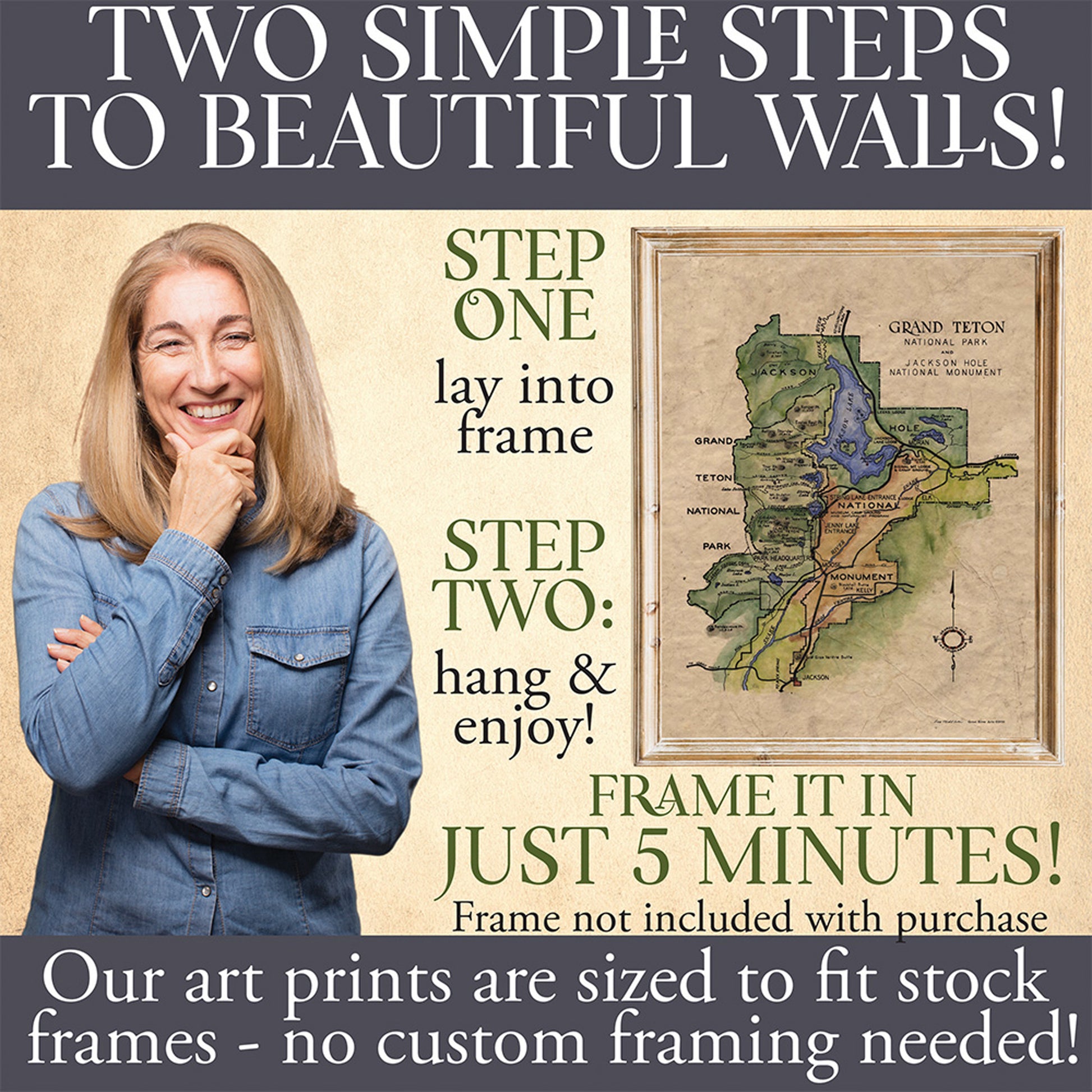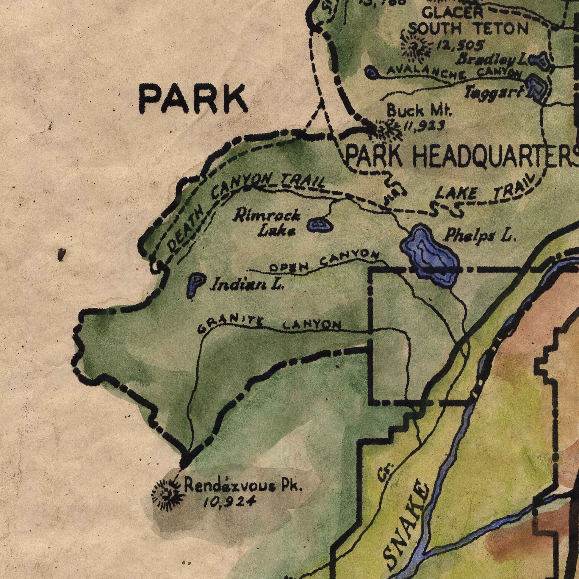 49 Grand Teton National Park 1938 vintage historic antique map poster print by Lisa Middleton