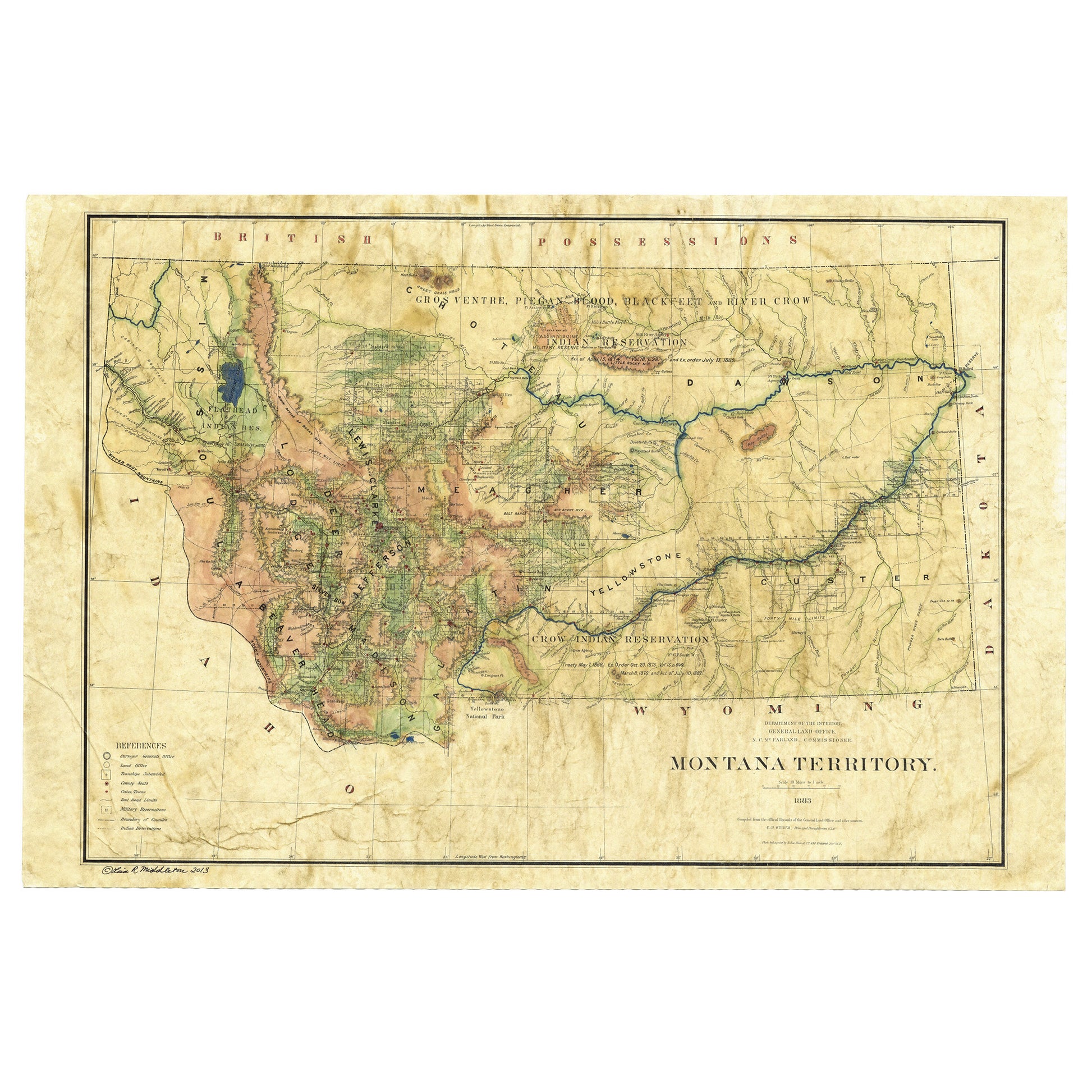 80 Montana Territory 1883 Vintage map,Vintage map art,Montana vintage map,old map,antique maps,map antique,montana map,coastal art,map vinta