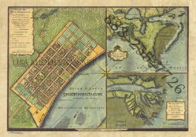 90 Louisiana: New Orleans French Quarter 1720 vintage historic antique map poster print by Lisa Middleton