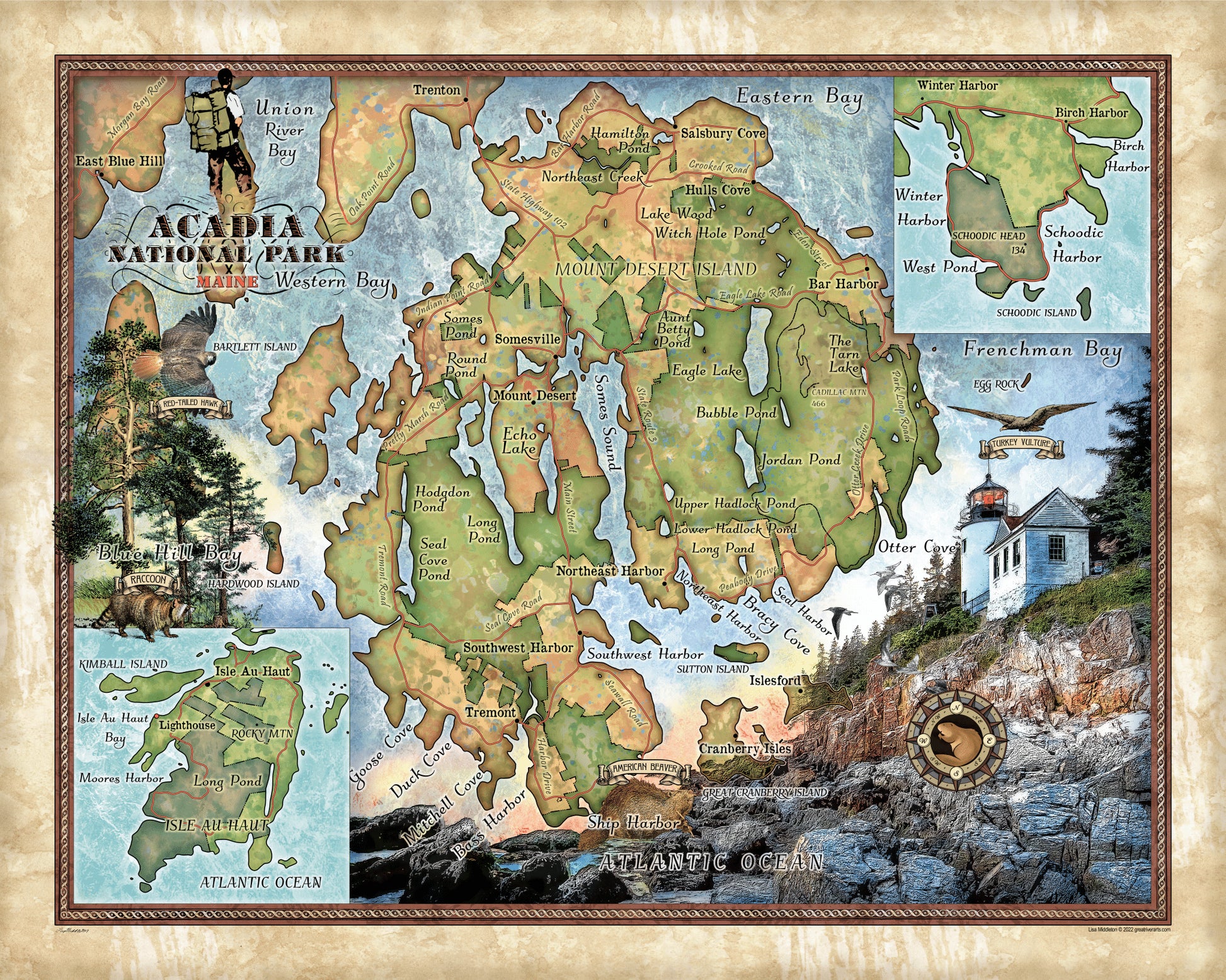 Acadia National Park Maine Historic Map Art Print Poster Vintage Wall Decor For Home Office Livingroom Classroom Lakehouse Decor Gift