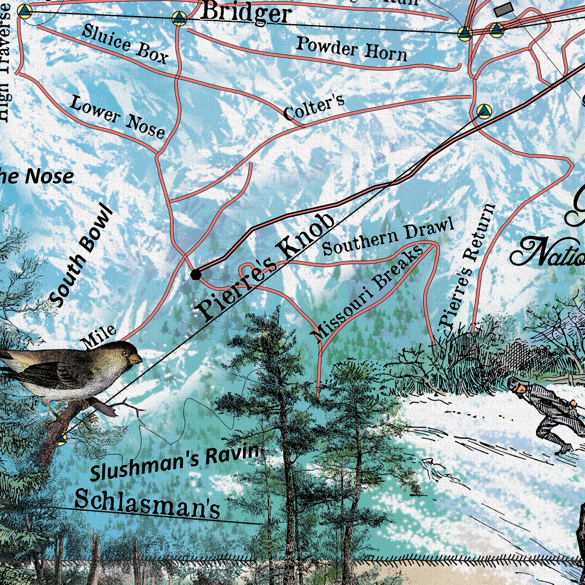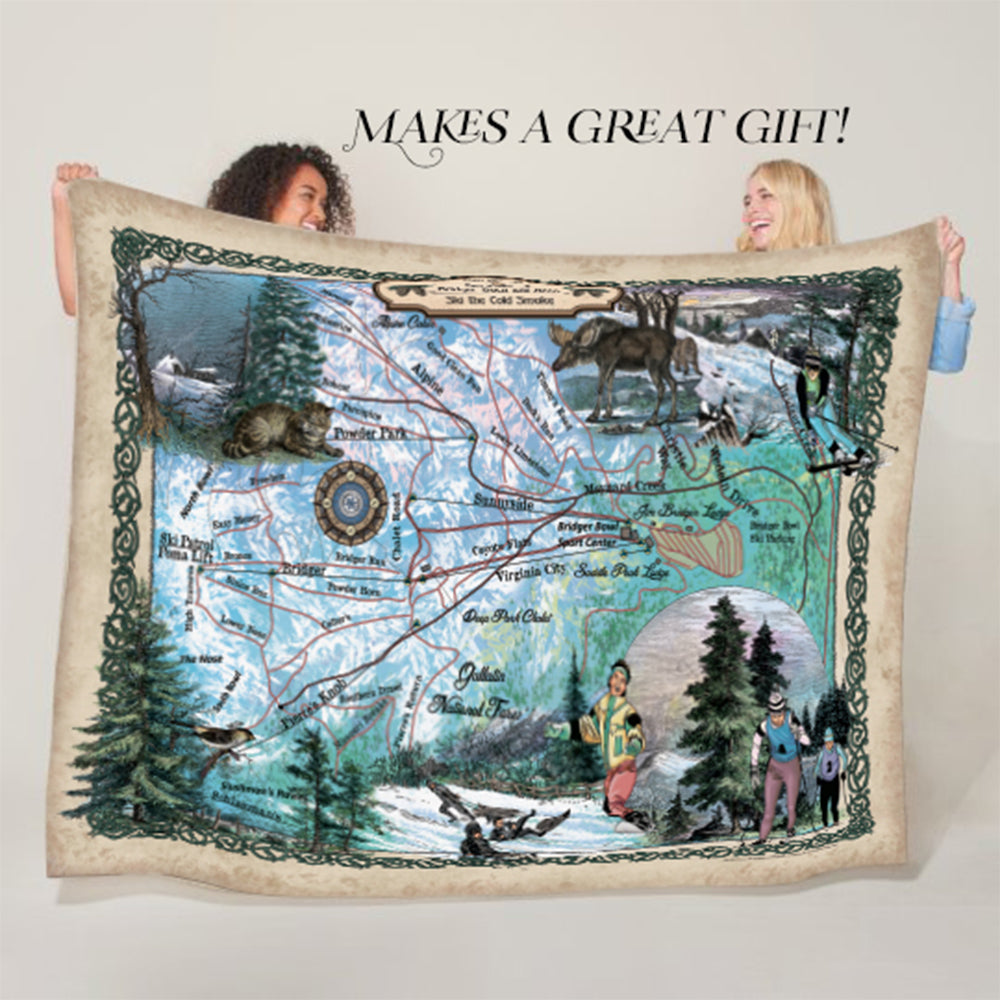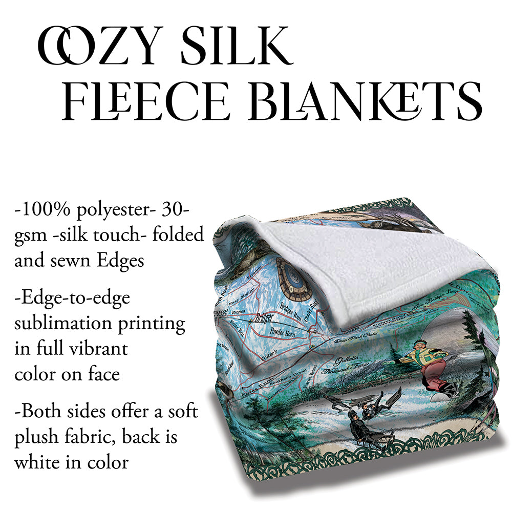 Bridger Bowl Montana Bozeman Map Sherpa Fleece Blanket Double Stitched Edges Cozy Luxury Fluffy Super Soft 430 GSM Polyester Throw Blanket