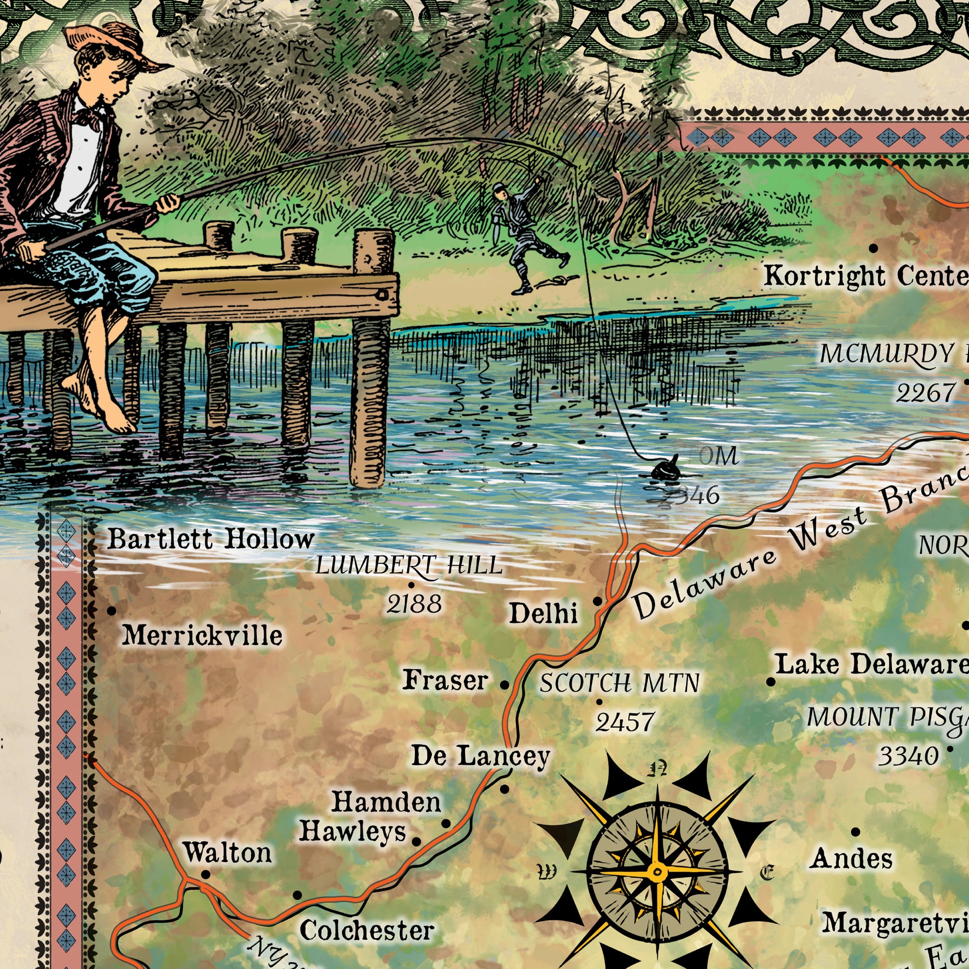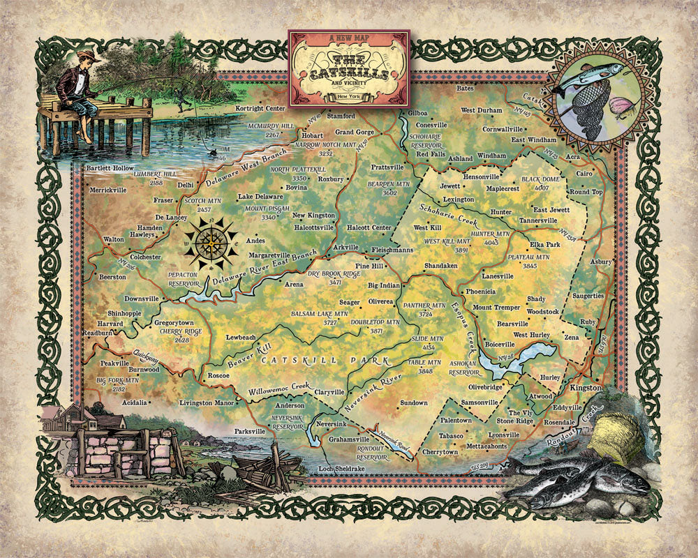 Catskill Mountains Antique Map Art Blanket Throw Sherpa Fleece Vintage Artwork Blanket For Bed Sofa Couch Gift & Winter Travel