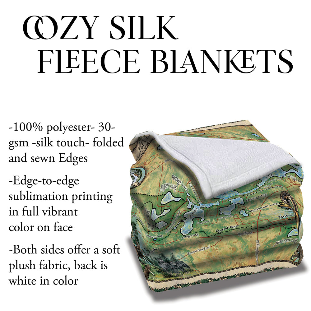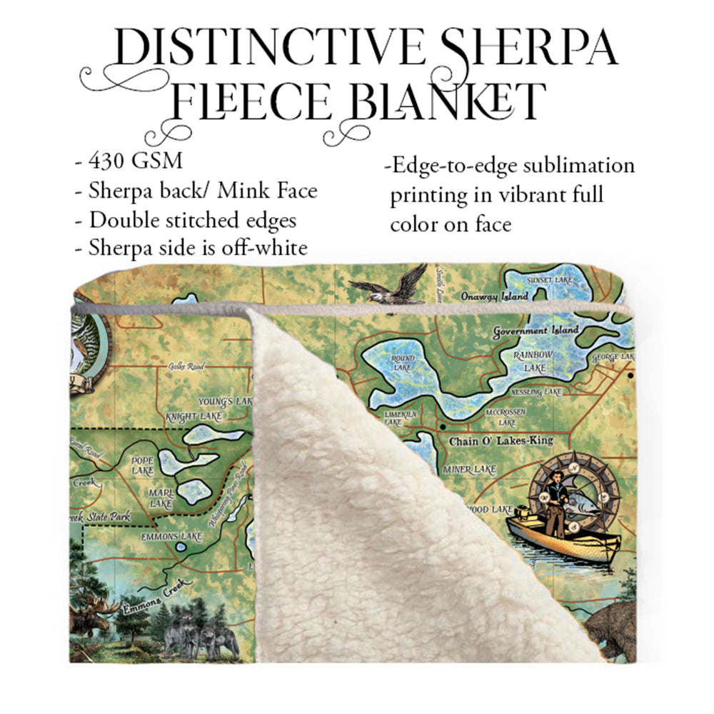Chain O' Lakes Waupaca Wisconsin Sherpa Fleece Blanket Double Stitched Edges Cozy Luxury Fluffy Super Soft 430 GSM Polyester Throw Blanket