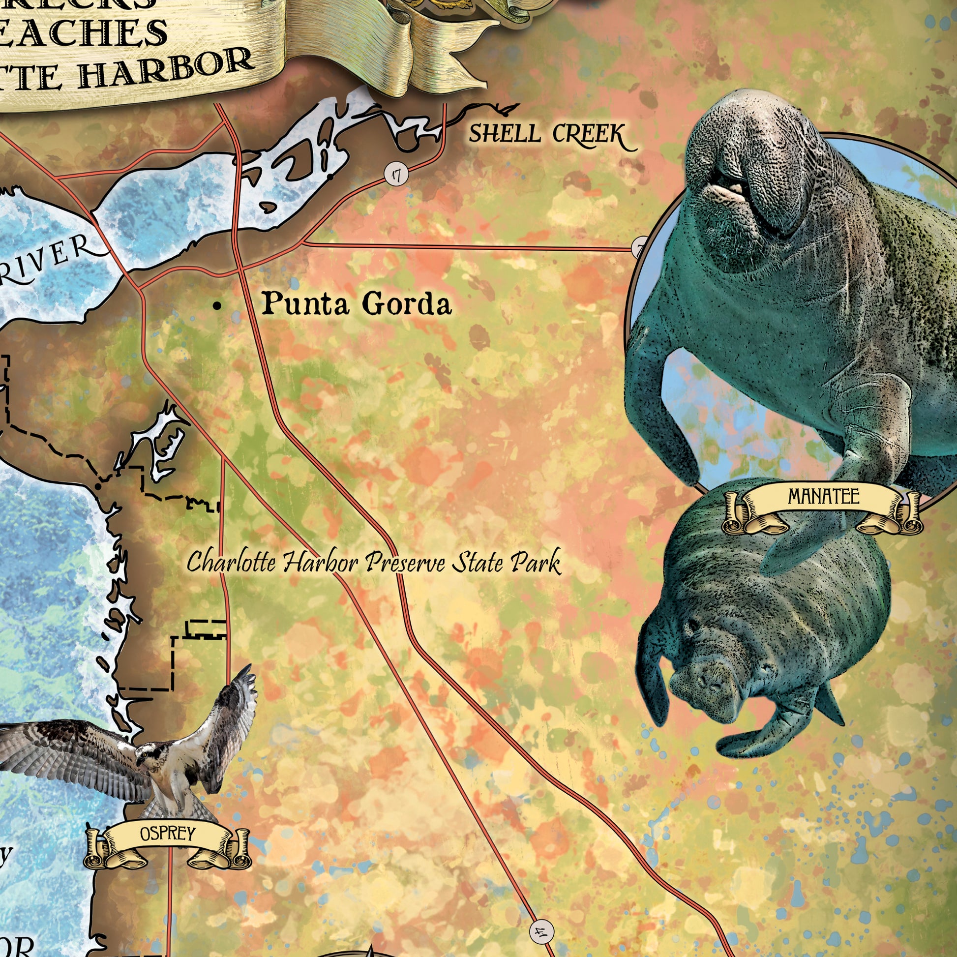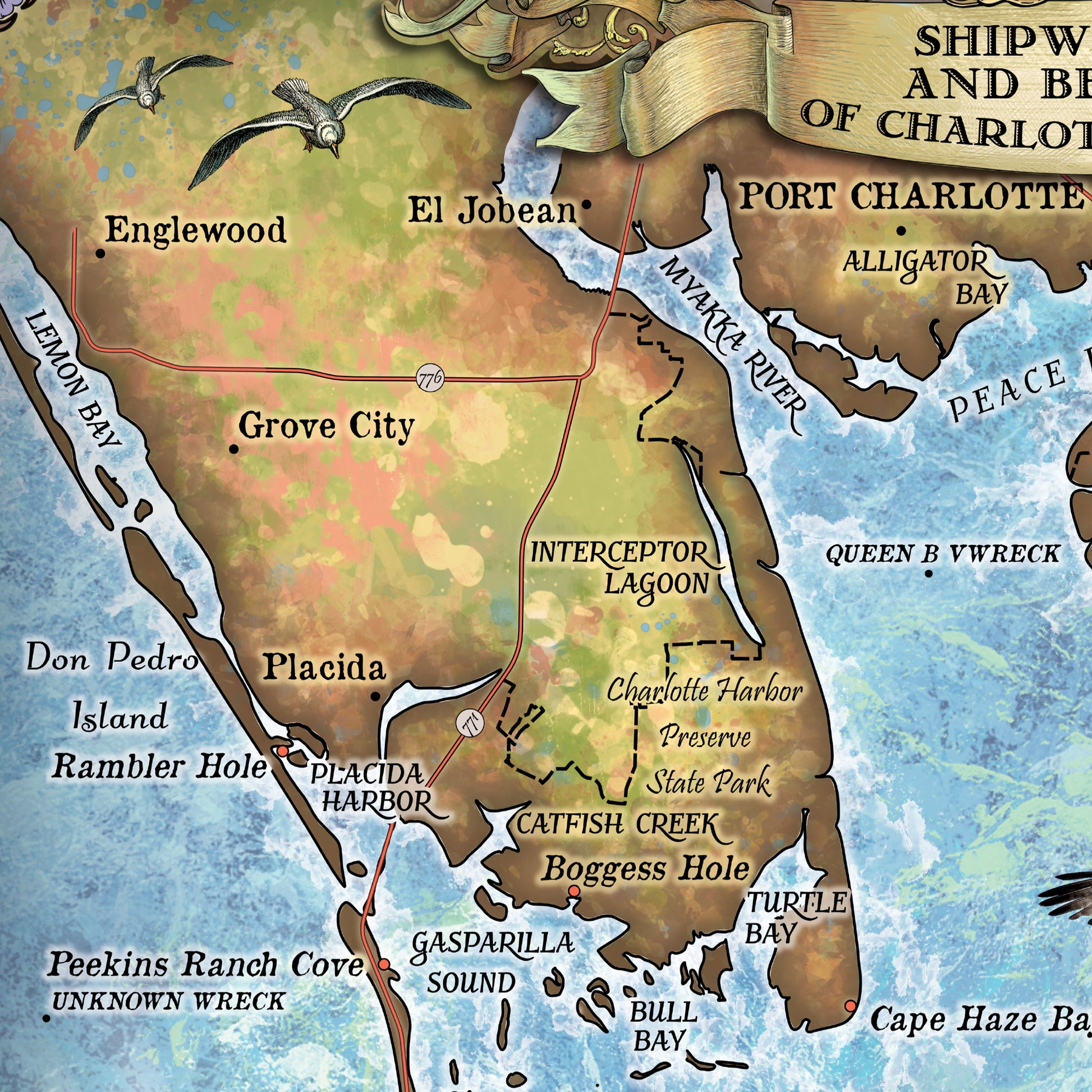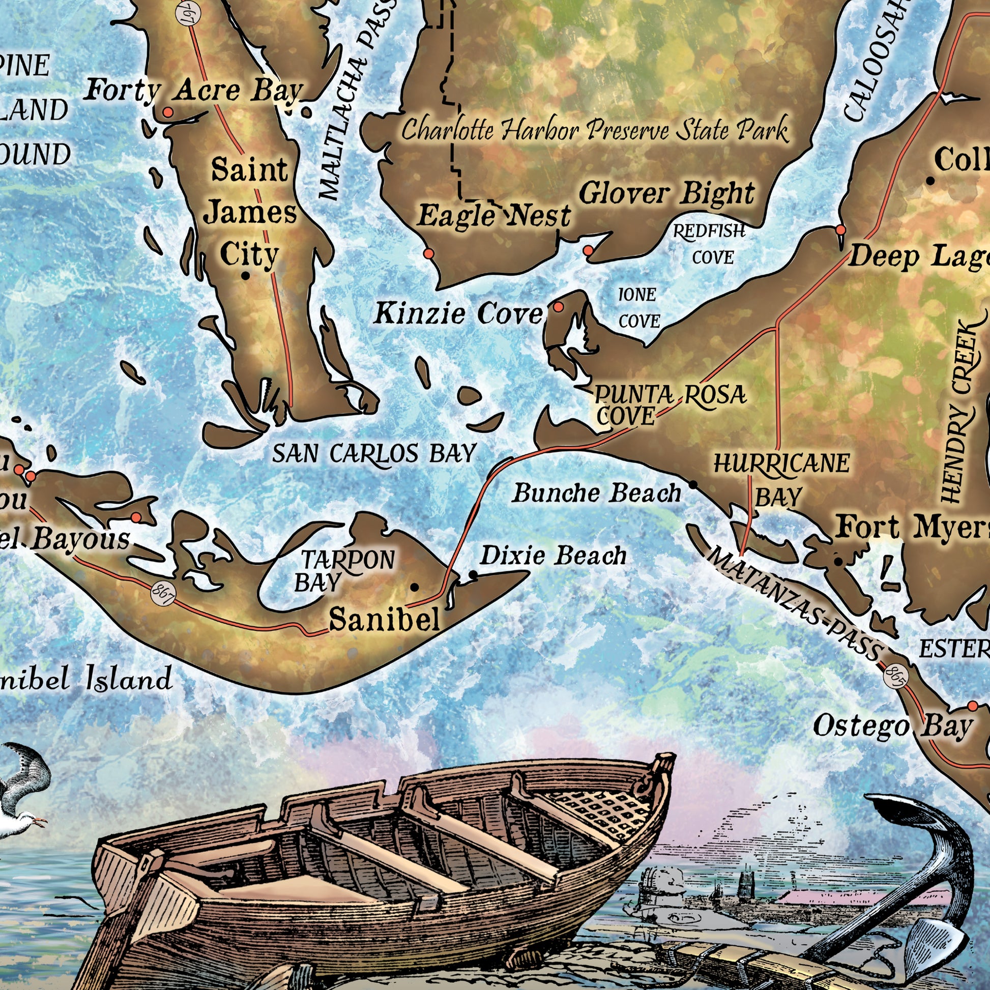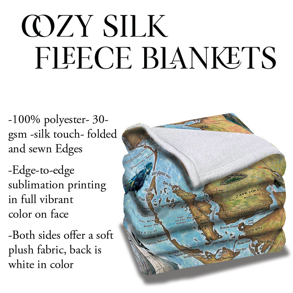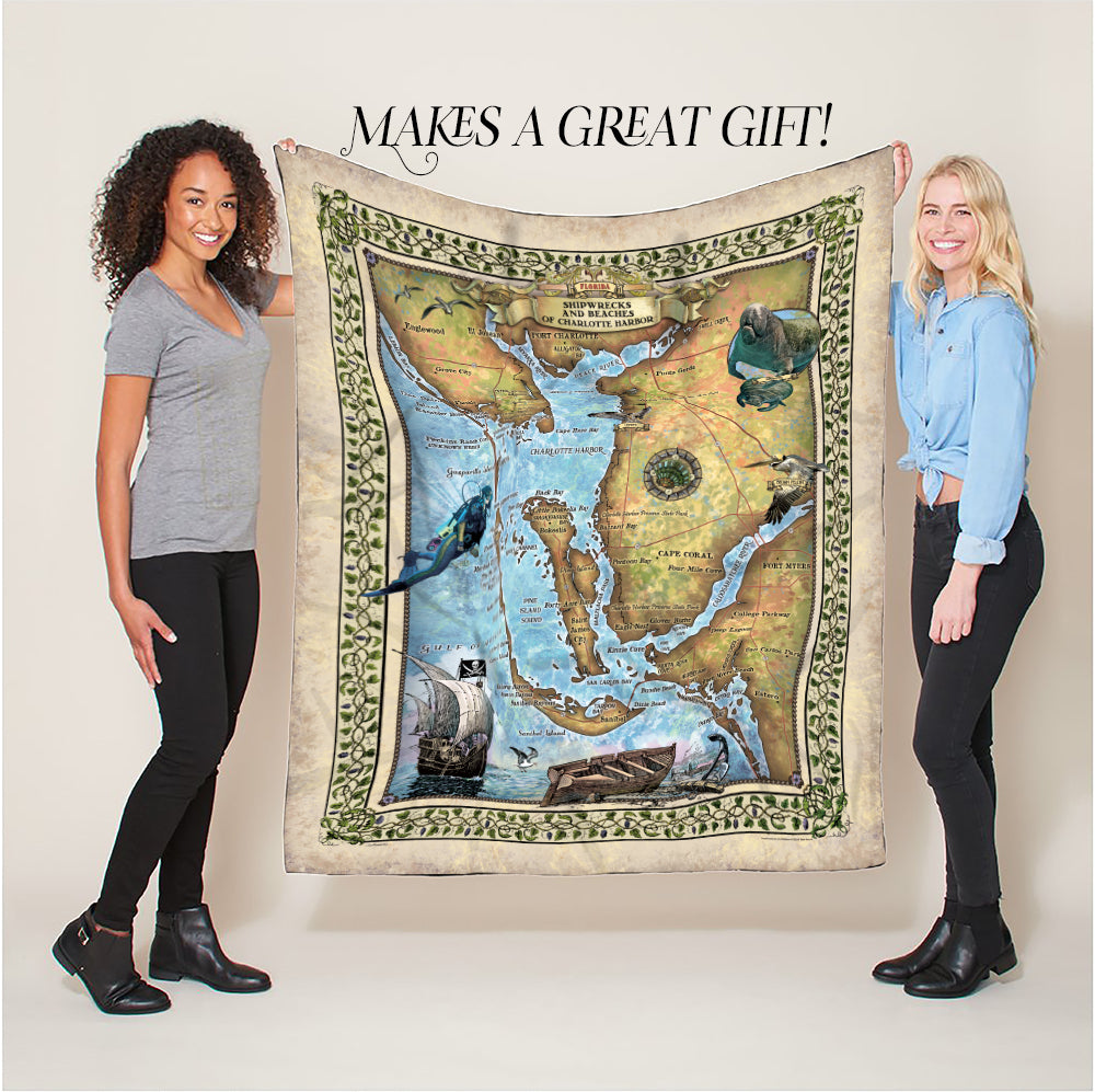 Charlotte Harbor Florida Map Art Blanket Throw Polar/ Silky/ Sherpa Fleece Warm Blanket For Bed Couch Sofa Chair Dorm Gift & Winter Travel