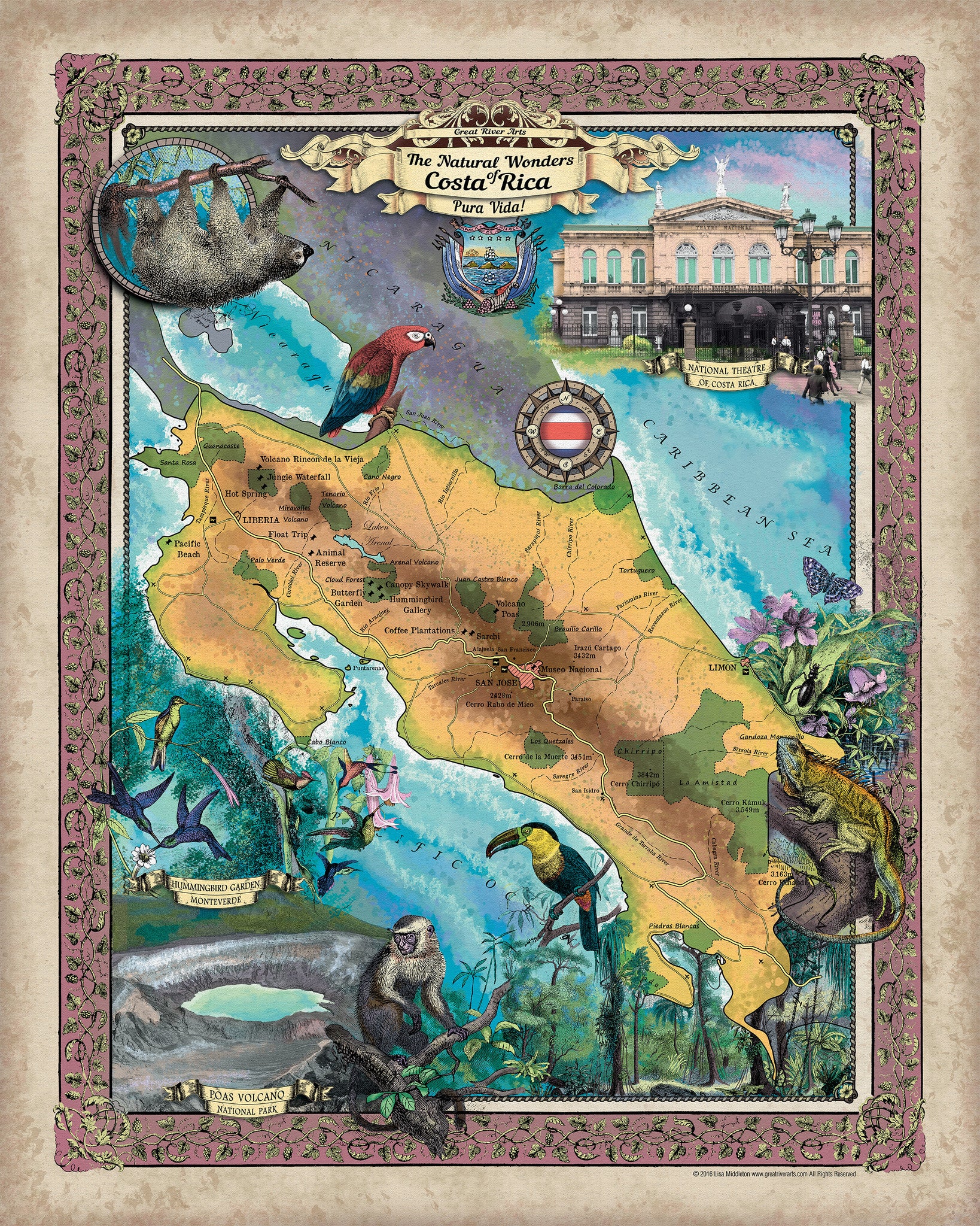 Today, roughly 27 % of the country is composed of conservation and natural protected territories, and is one of the world’s prime ecotourism areas. The country is shaped by rugged highlands, high mountain ranges such as Mount Chirripo which has a variety of climates and vegetation zones, the Caribbean Coast which is hot and humid, rain forest in west, and the much drier Pacific Coast. Many of the country’s habitats are interconnected in what is termed Life Zones, with several different types of forests and aqua habitats.