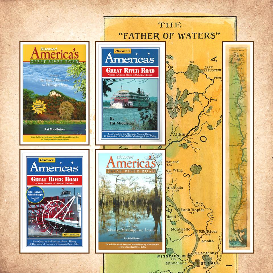 Discover! America's Great River Road 4 Volume gift set + Father of Water Map Gift Bundle