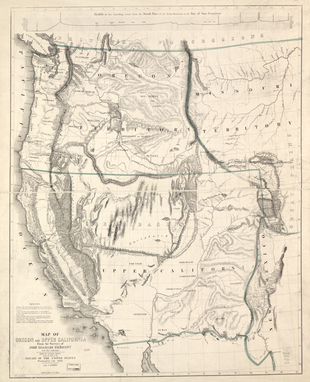 This map is a significant cartographic work, a testament to Fremont’s expeditions, where he went and the things he observed, U.S. expansion into new territories, as well as a monumental contribution to geographical knowledge in the year 1848.