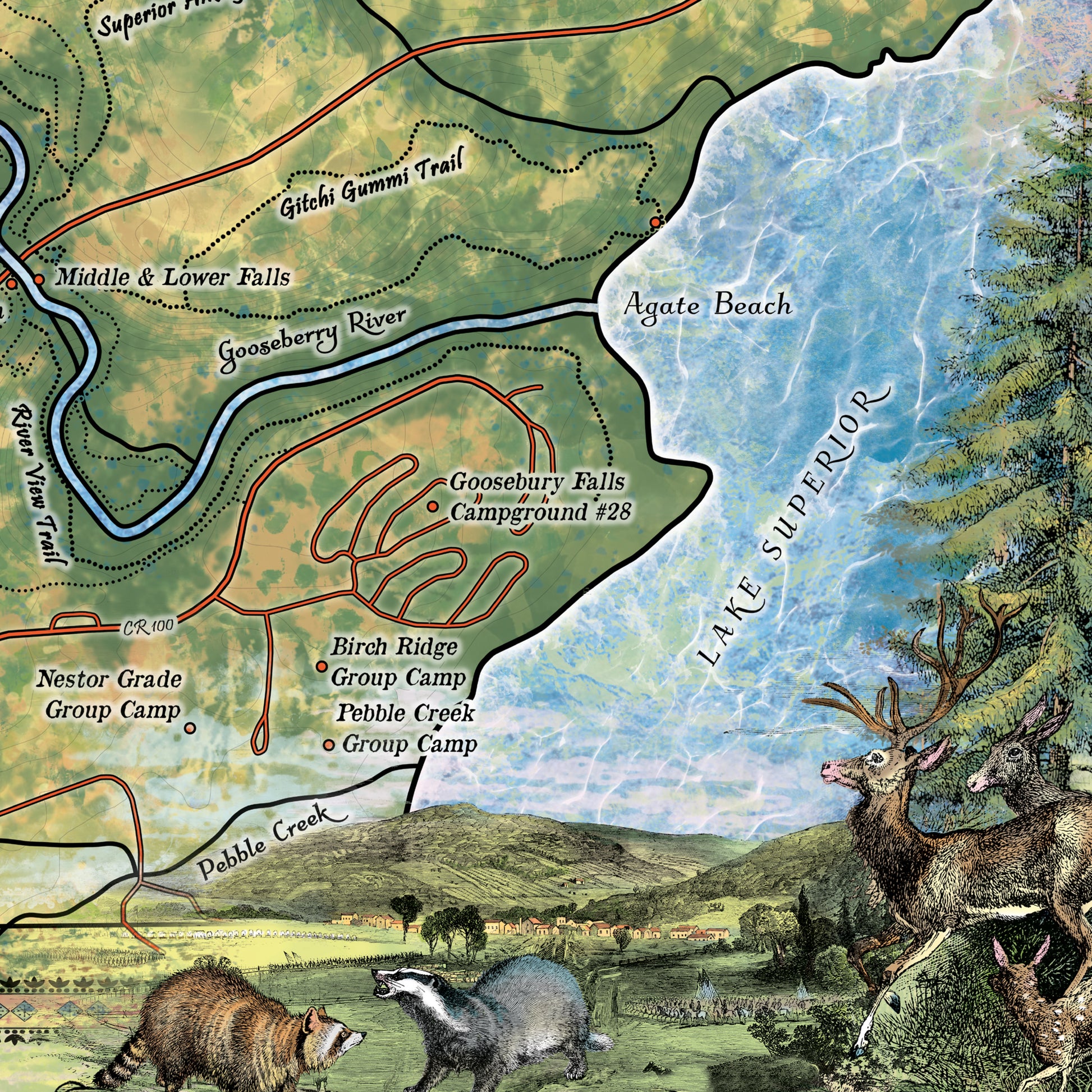 Gooseberry Falls State Park Minnesota Antique Map Art Blanket Throw Sherpa Fleece Vintage Blanket For Bed Sofa Travel Gift