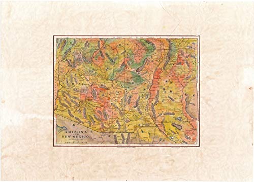 Great River Arts Antique Arizona New Mexico Wagon Railroad Historic Map Reproduction Artwork Wall Art Print Vintage