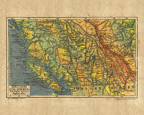 Great River Arts British Columbia 1906 Historic Map Reproduction Artwork Wall Art Print Vintage