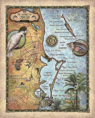 Great River Arts Cancun Mexico Historic Map Reproduction Artwork Wall Art Print Vintage