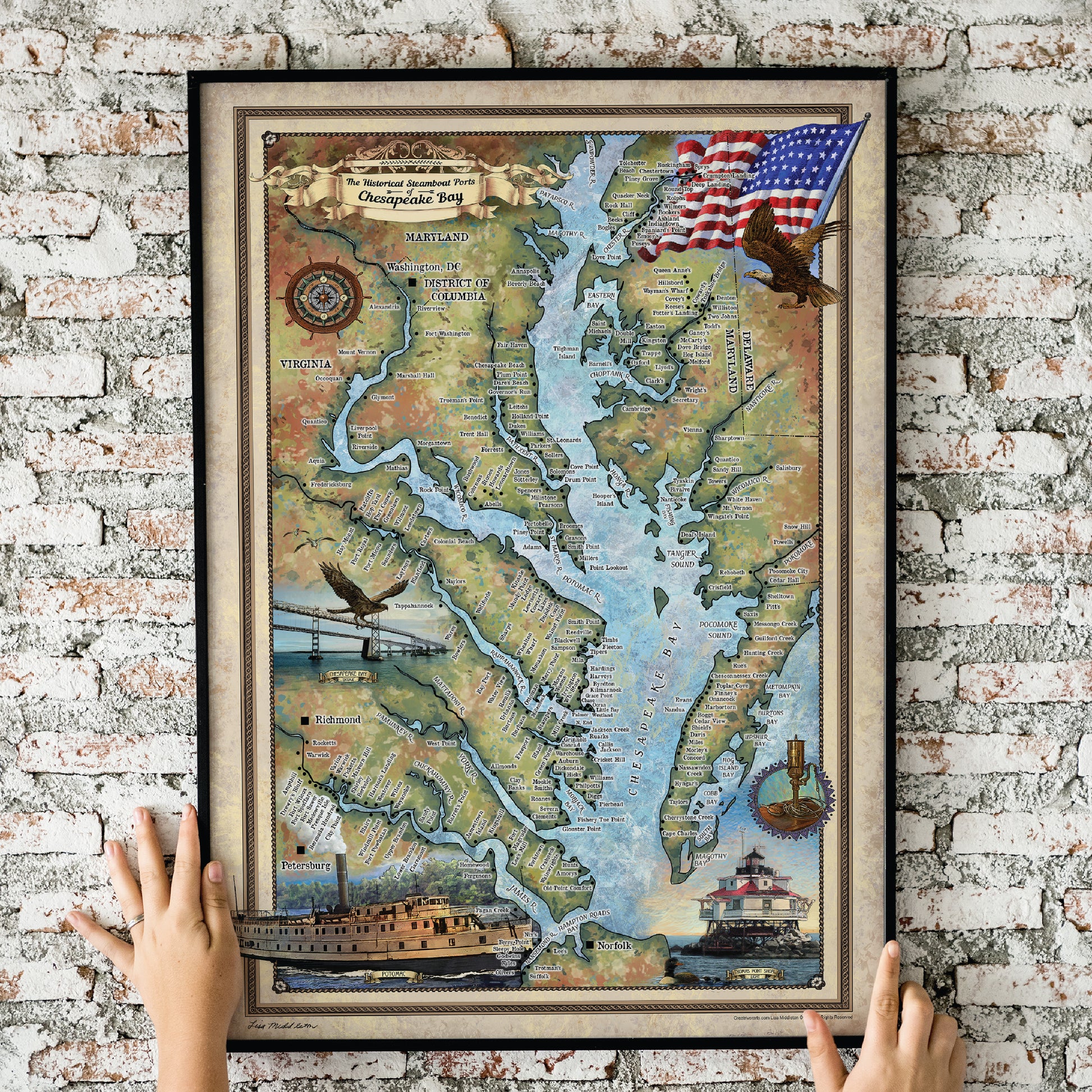Chesapeake Bay Historic Map Reproduction Artwork Wall Art Print Vintage