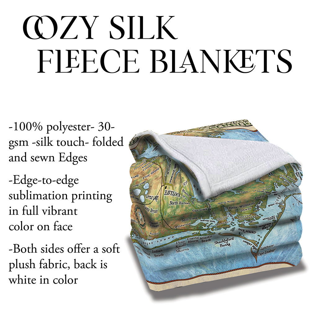 Great River Arts Crystal Coast North Carolina Map Sherpa Fleece Blanket Double Stitched Edges Cozy Luxury Fluffy Super Soft 430 GSM Polyester - Sherpa/ Silky/ Polar Fleece Throw Blanket