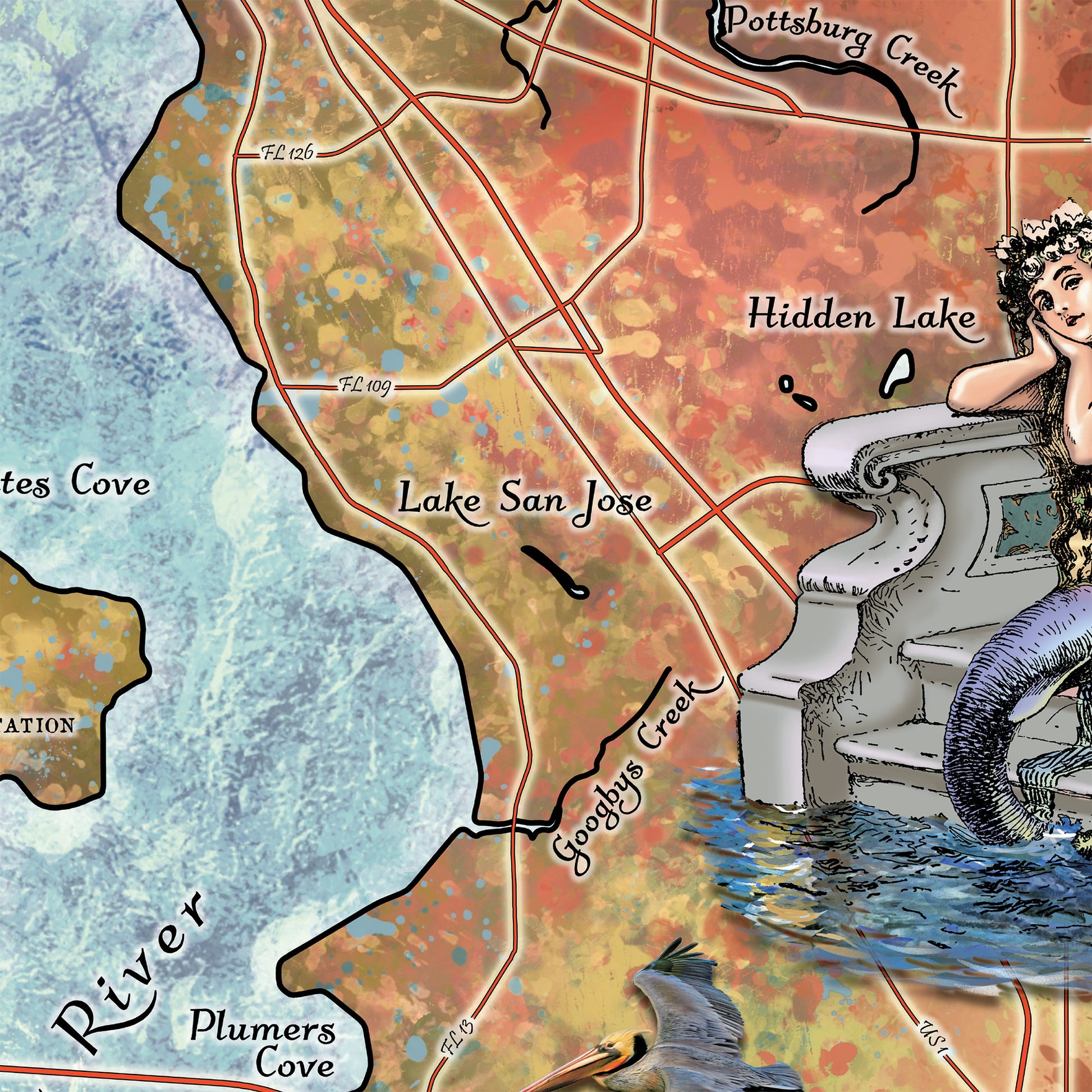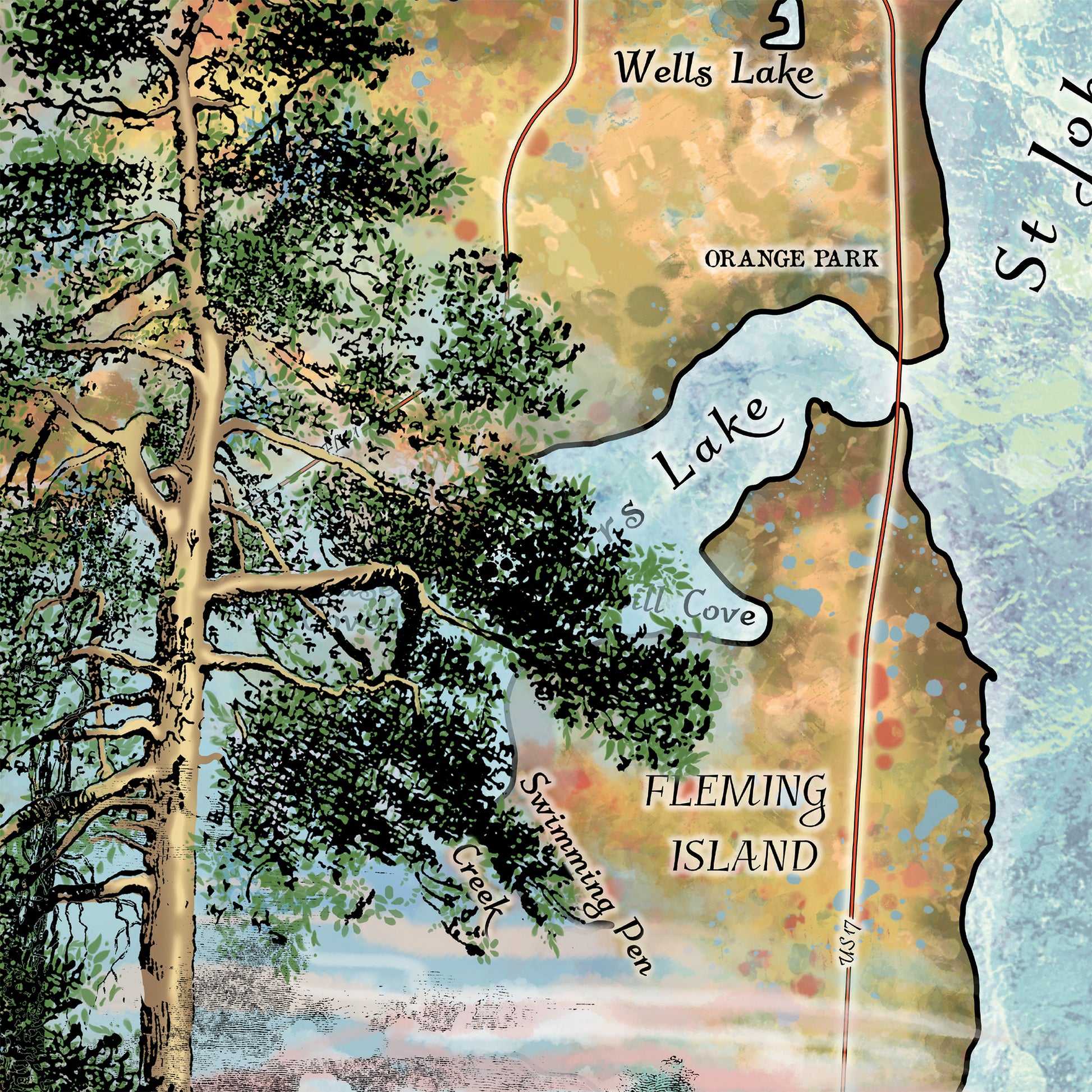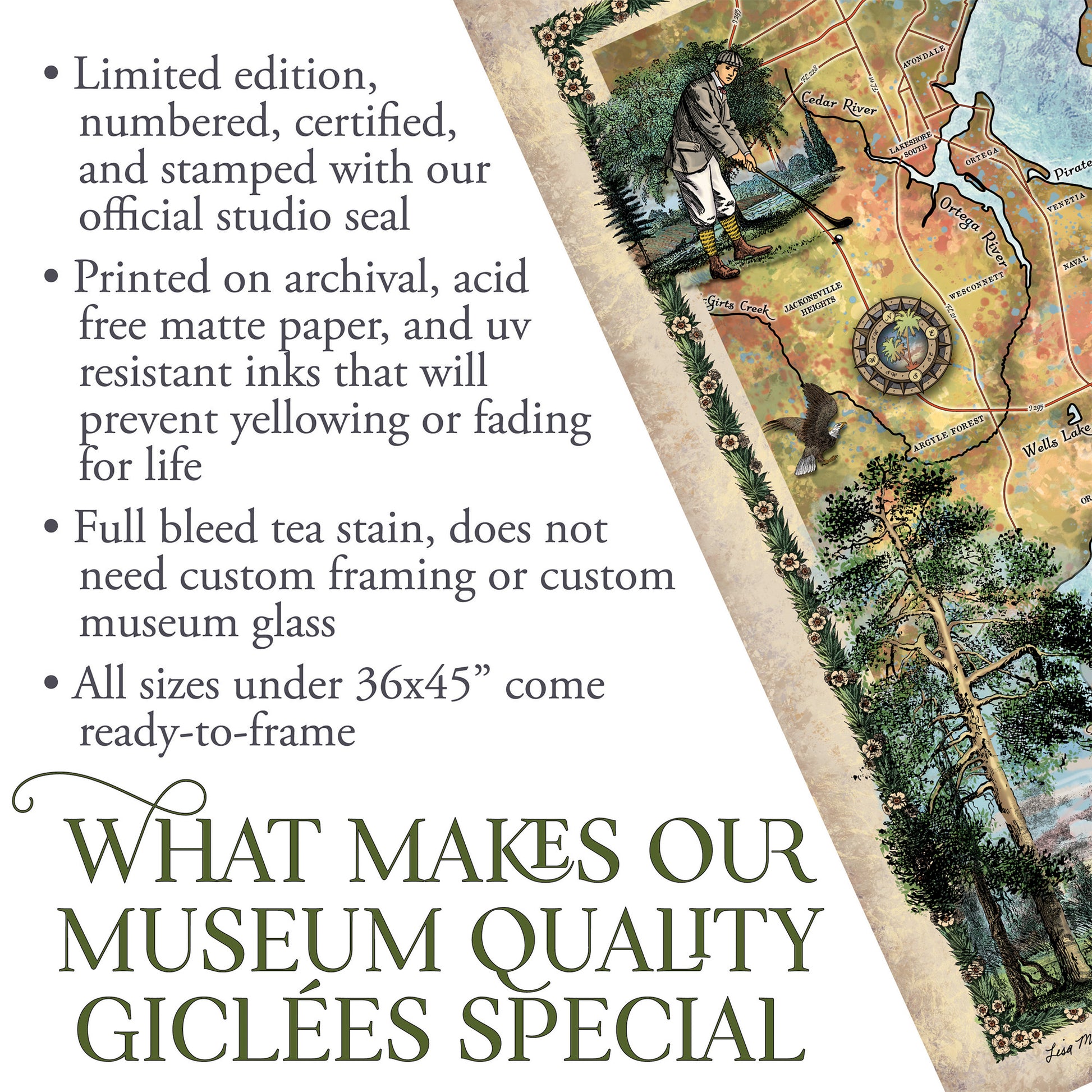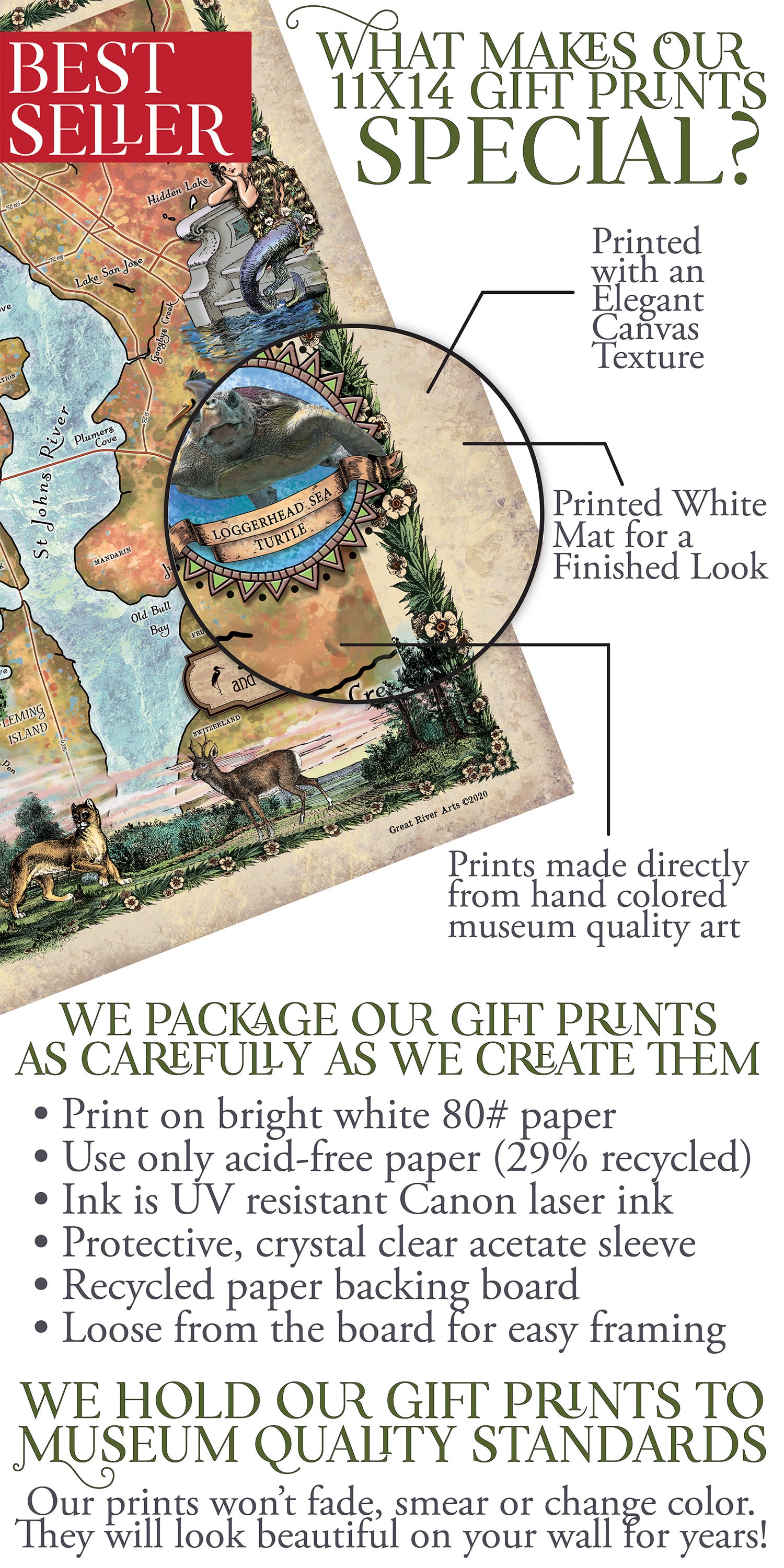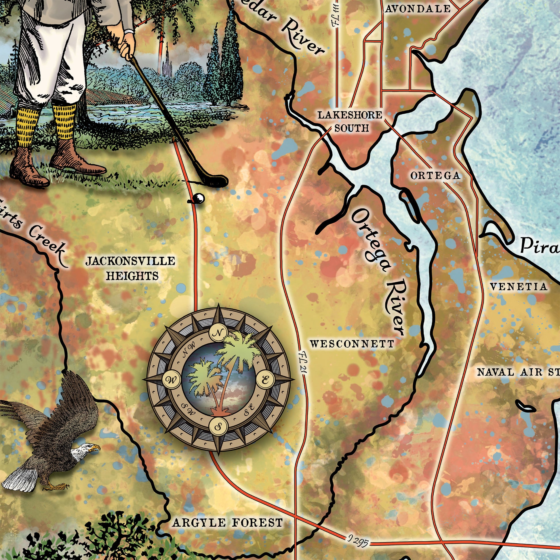 Great River Arts Jacksonville and The St. John's River Historic Map Reproduction Artwork Wall Art Print Vintage