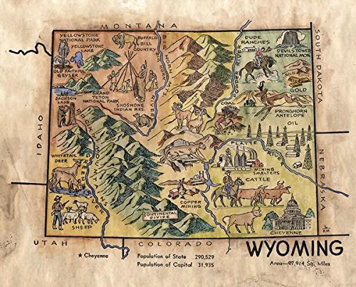 Great River Arts Kids Wyoming Historic Map Reproduction Artwork Wall Art Print Vintage