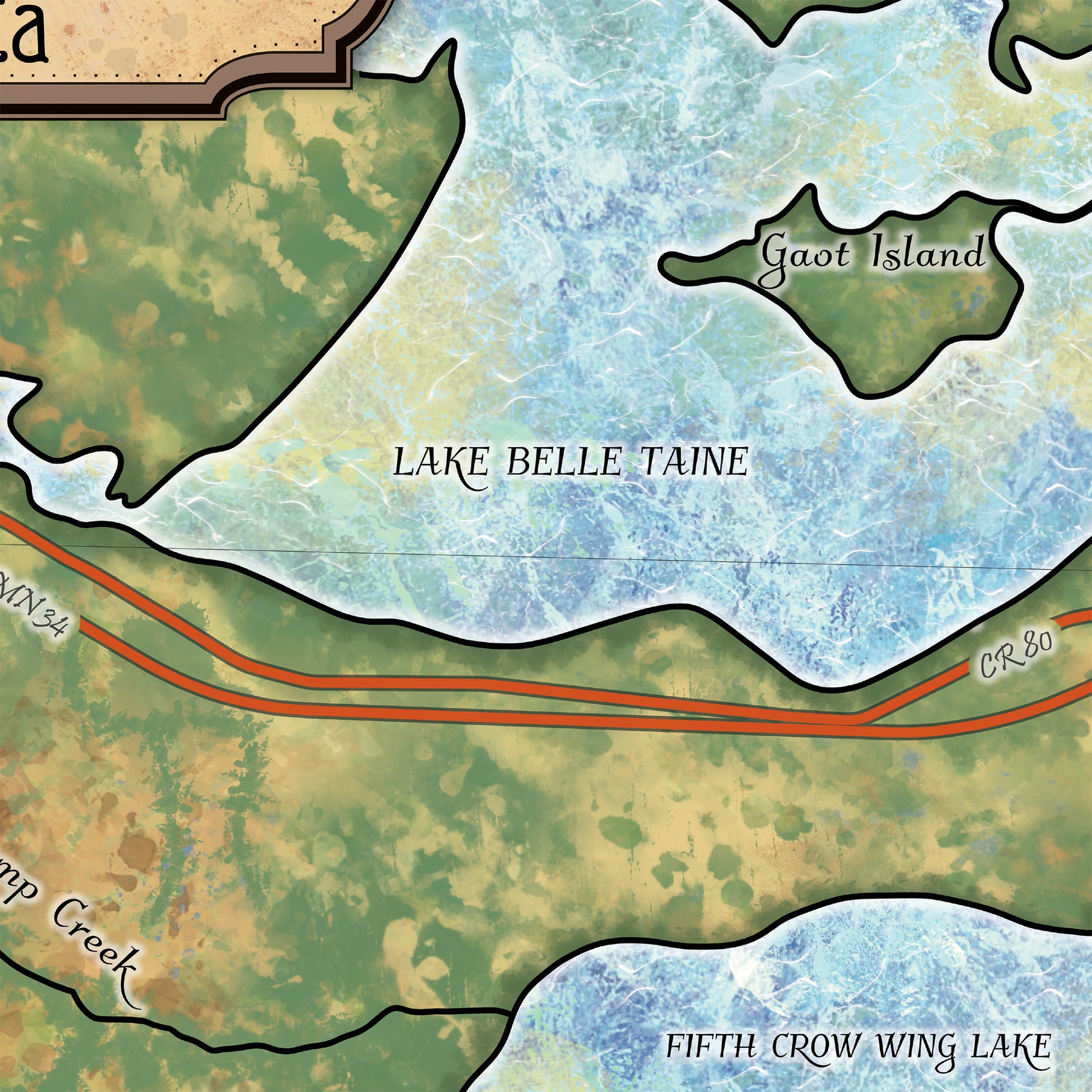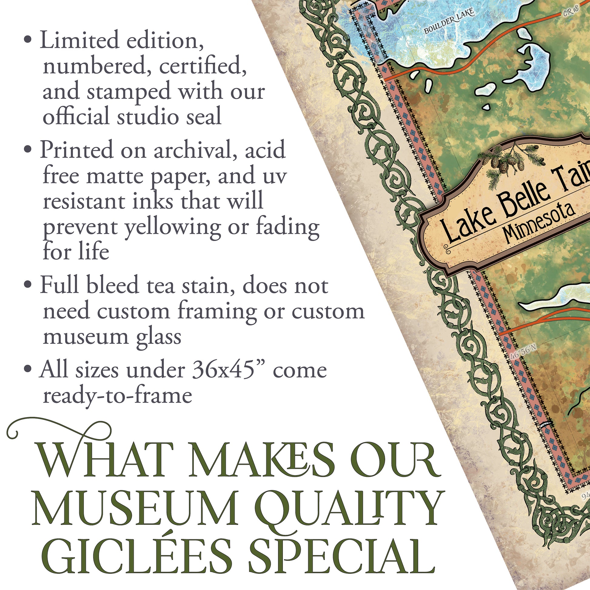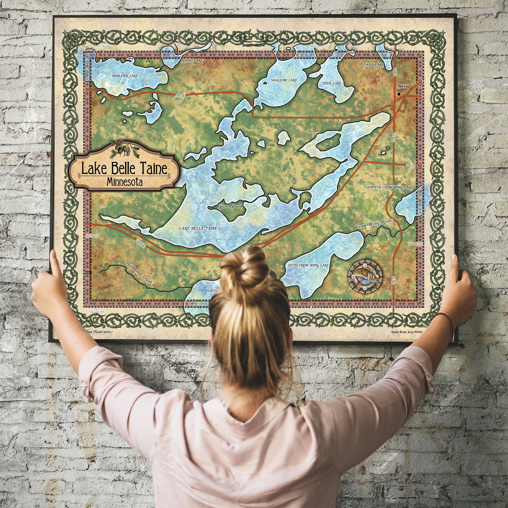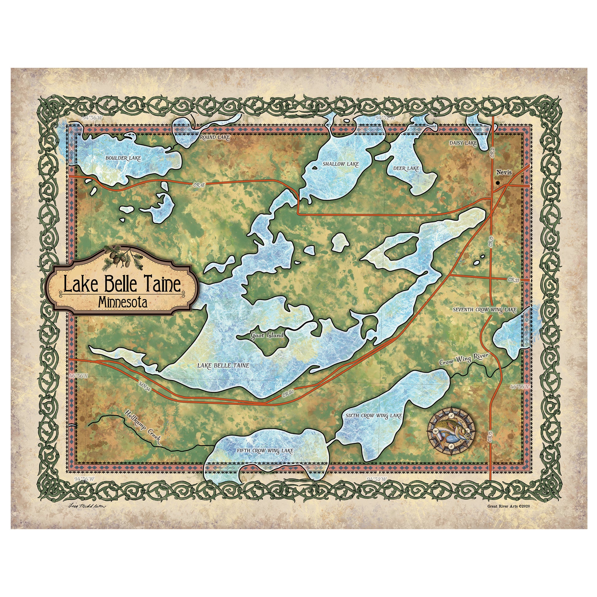 Great River Arts Lake Belle Taine Minnesota Lake Art Historic Map Reproduction Artwork Wall Art Print Vintage