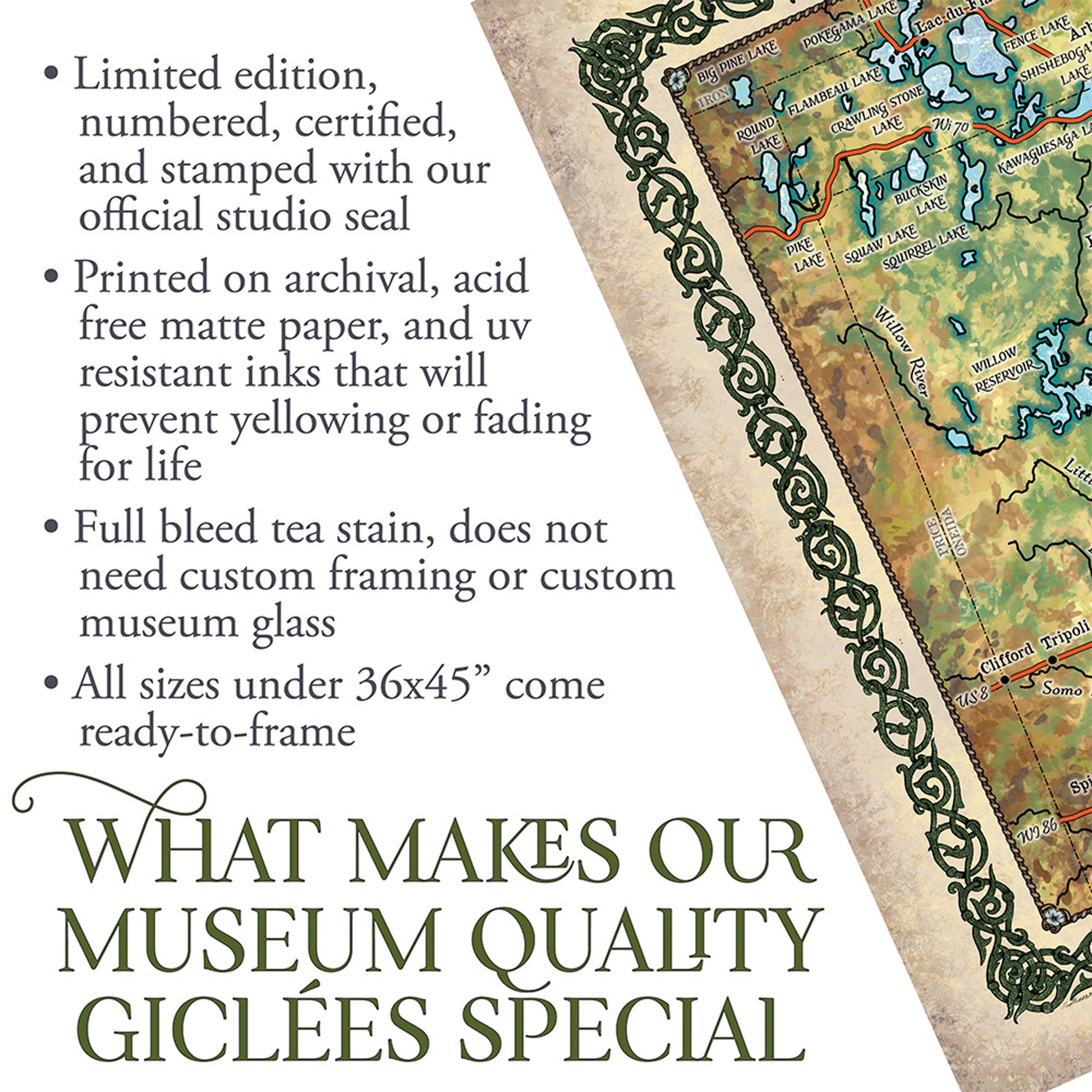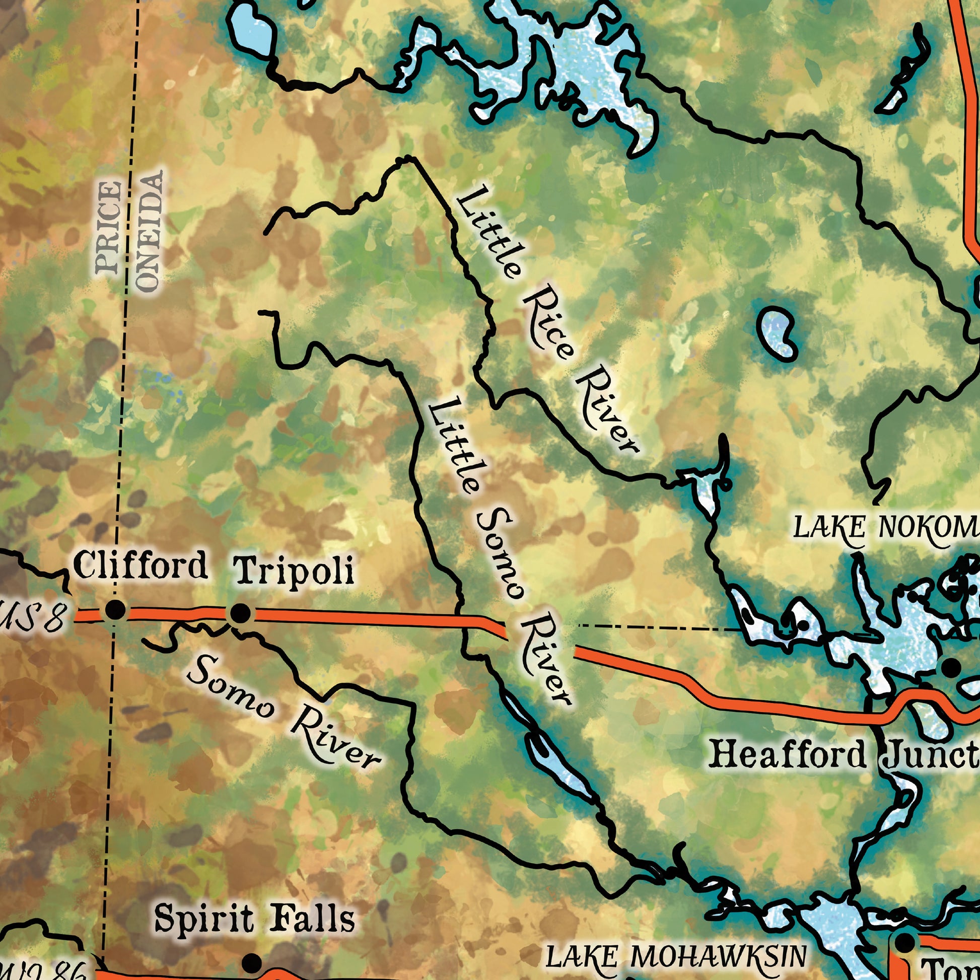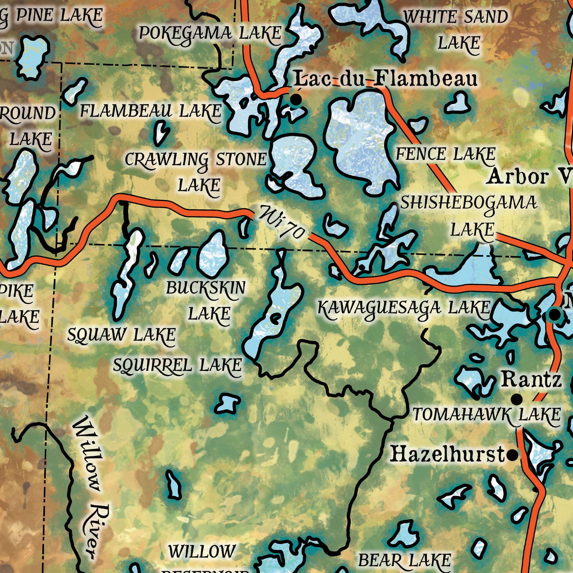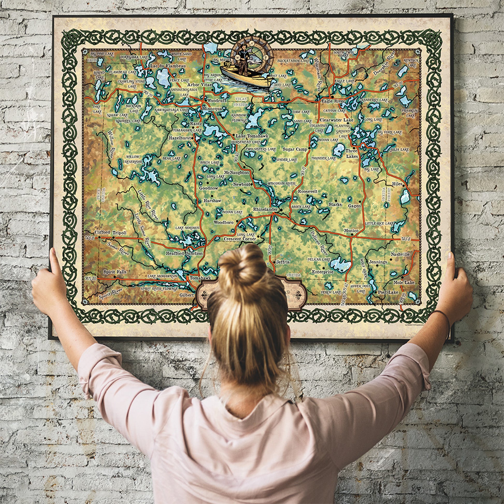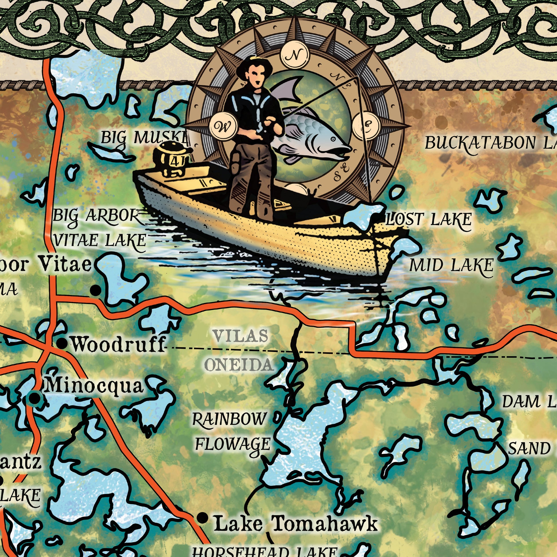 Great River Arts Lakes of Oneida County Historic Map Reproduction Artwork Wall Art Print Vintage