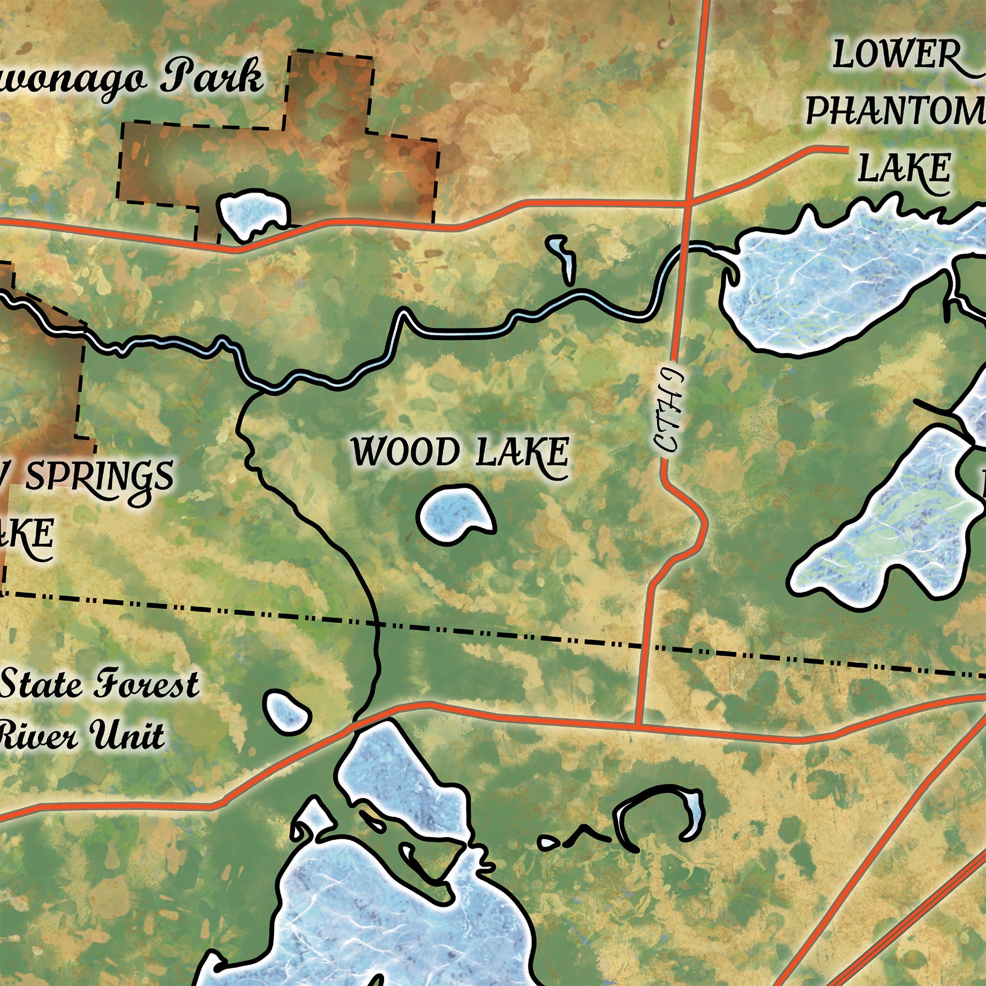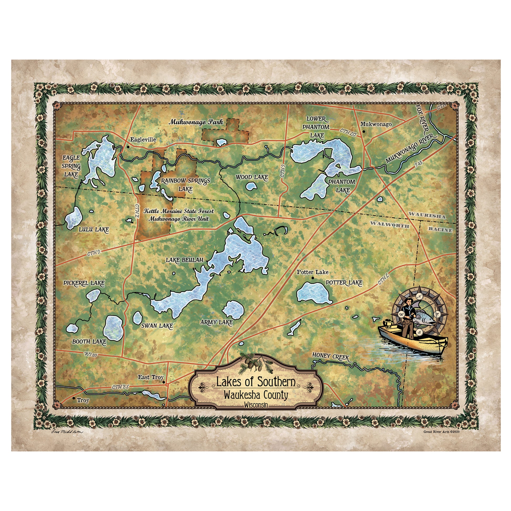 Great River Arts Lakes of Sw Waukesha County Historic Map Reproduction Artwork Wall Art Print Vintage