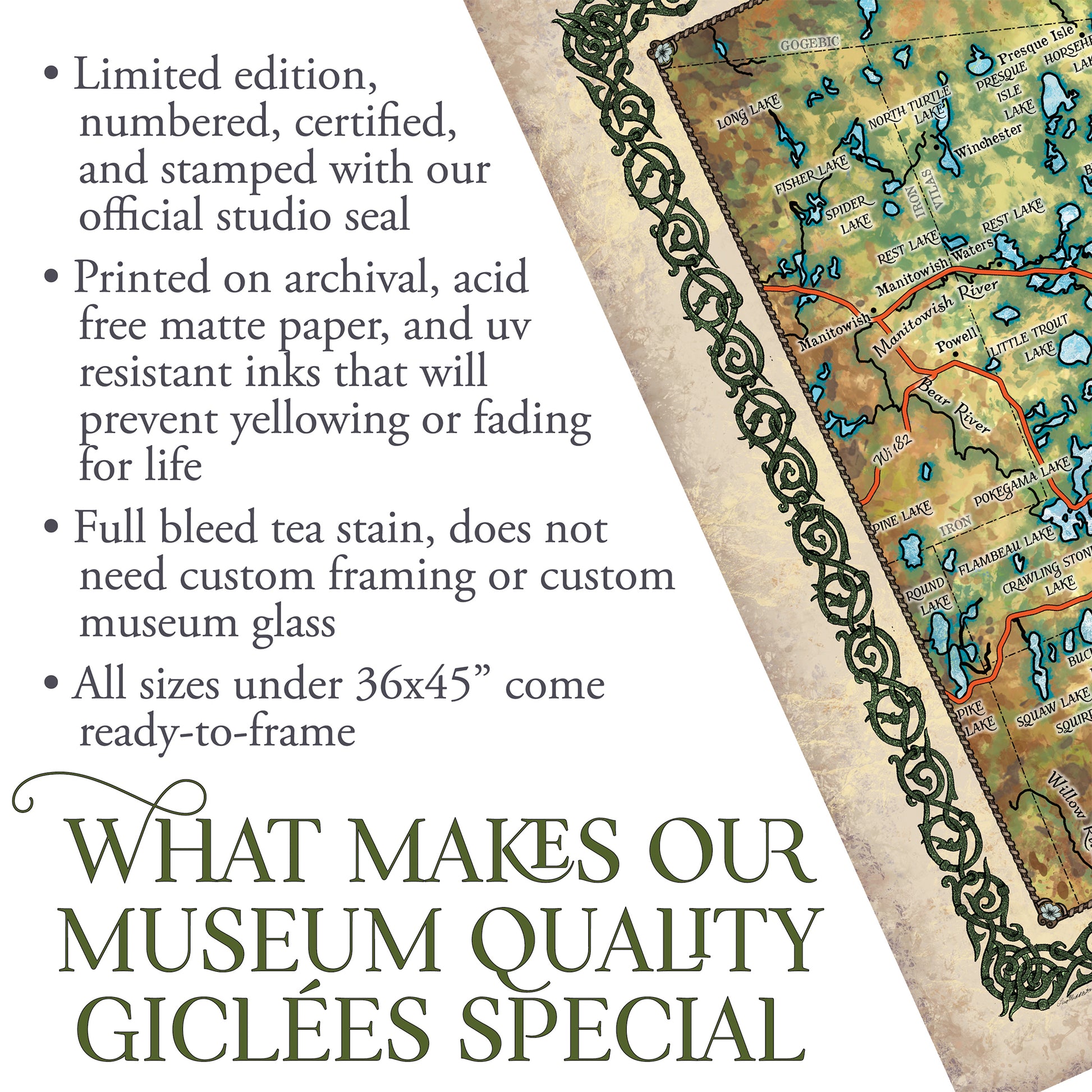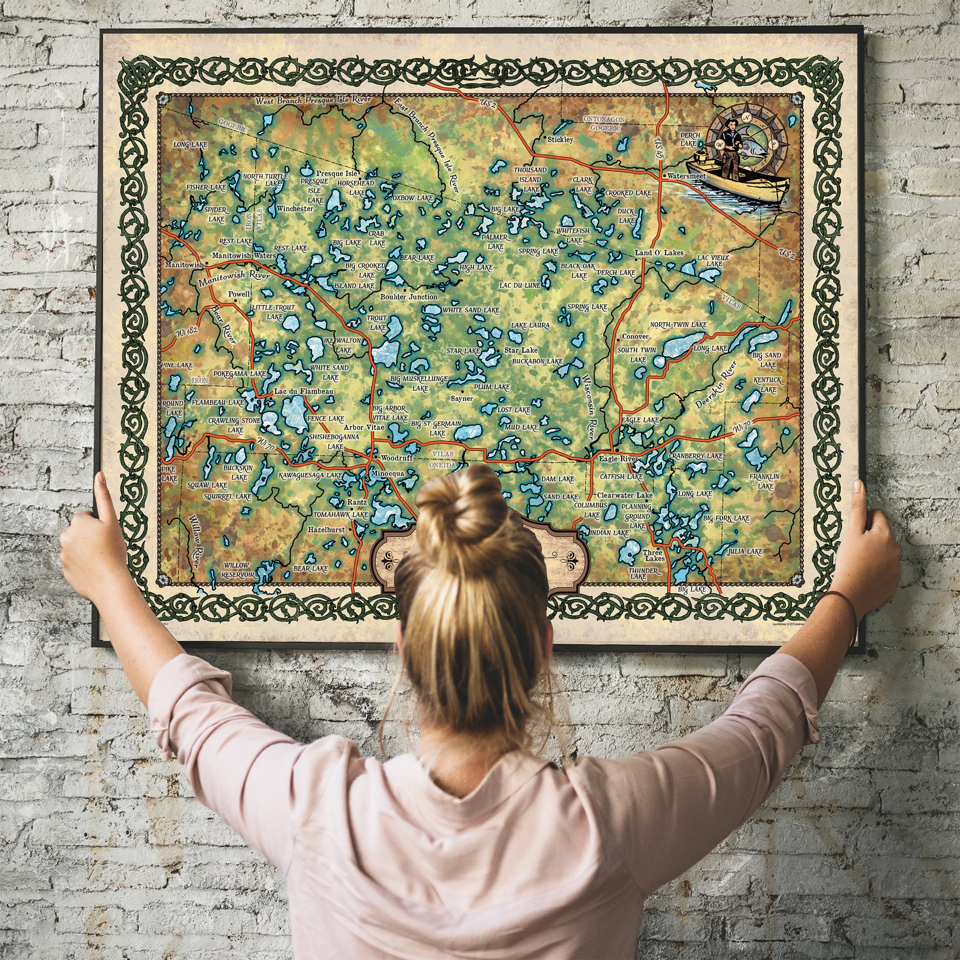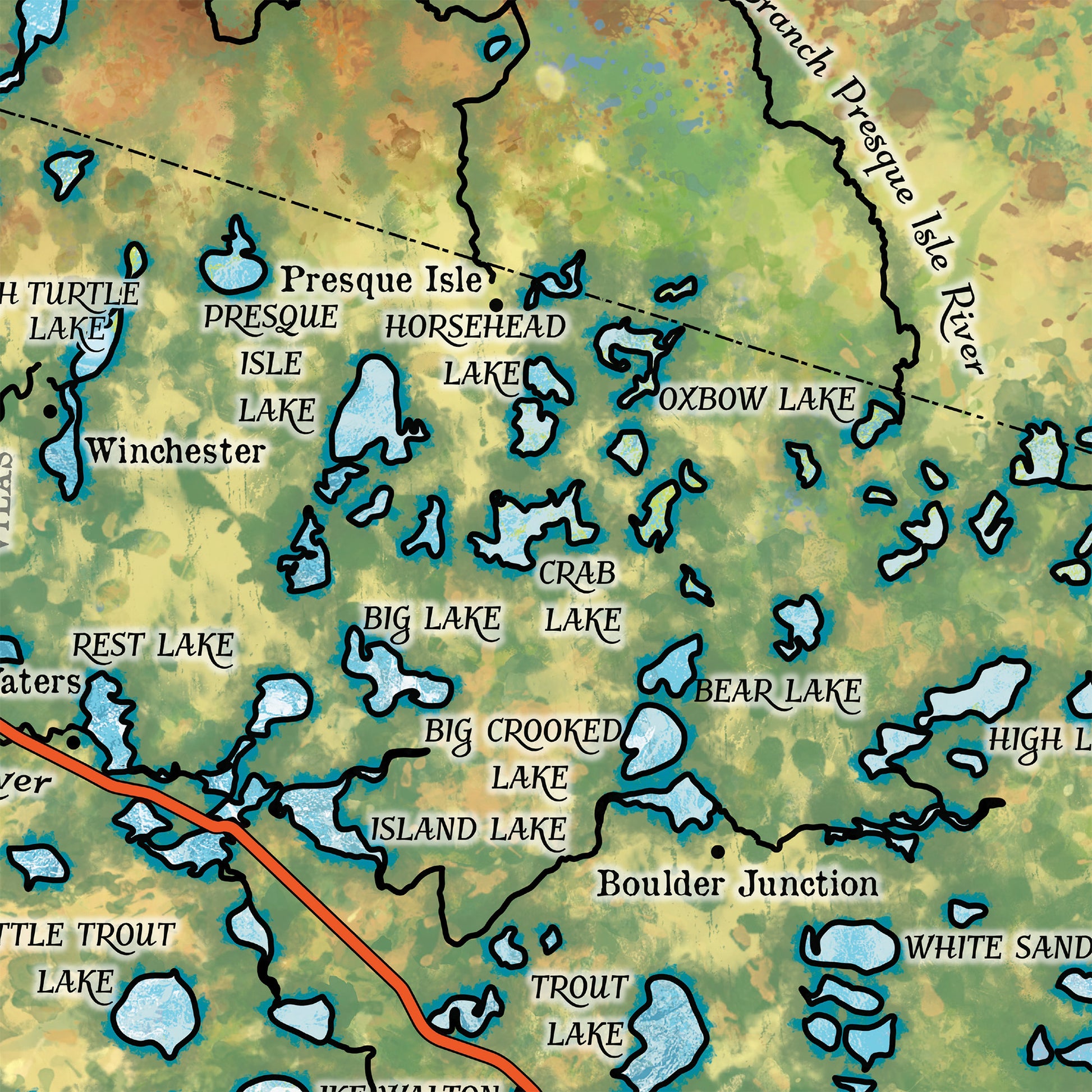 Great River Arts Lakes of Vilas County Historic Map Reproduction Artwork Wall Art Print Vintage