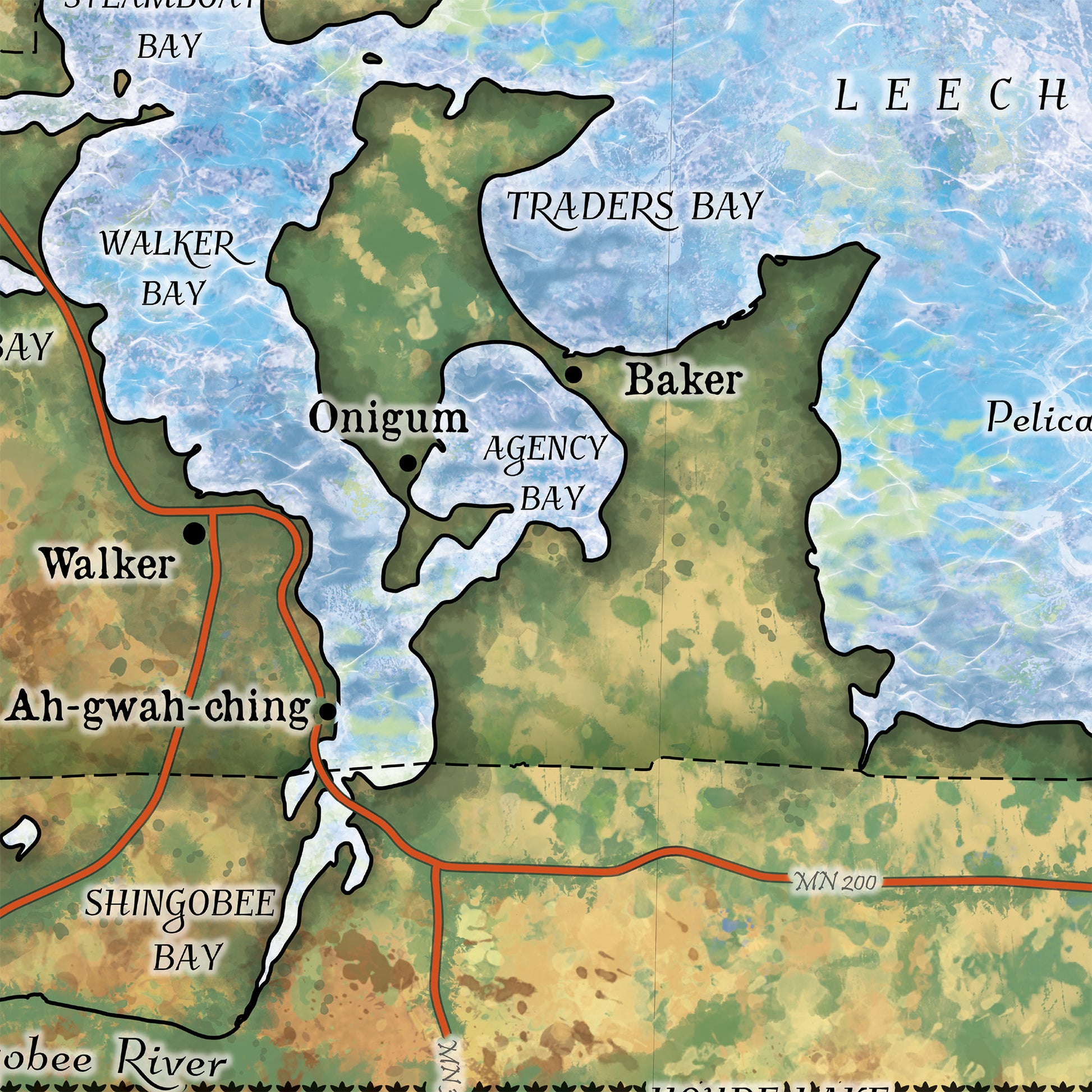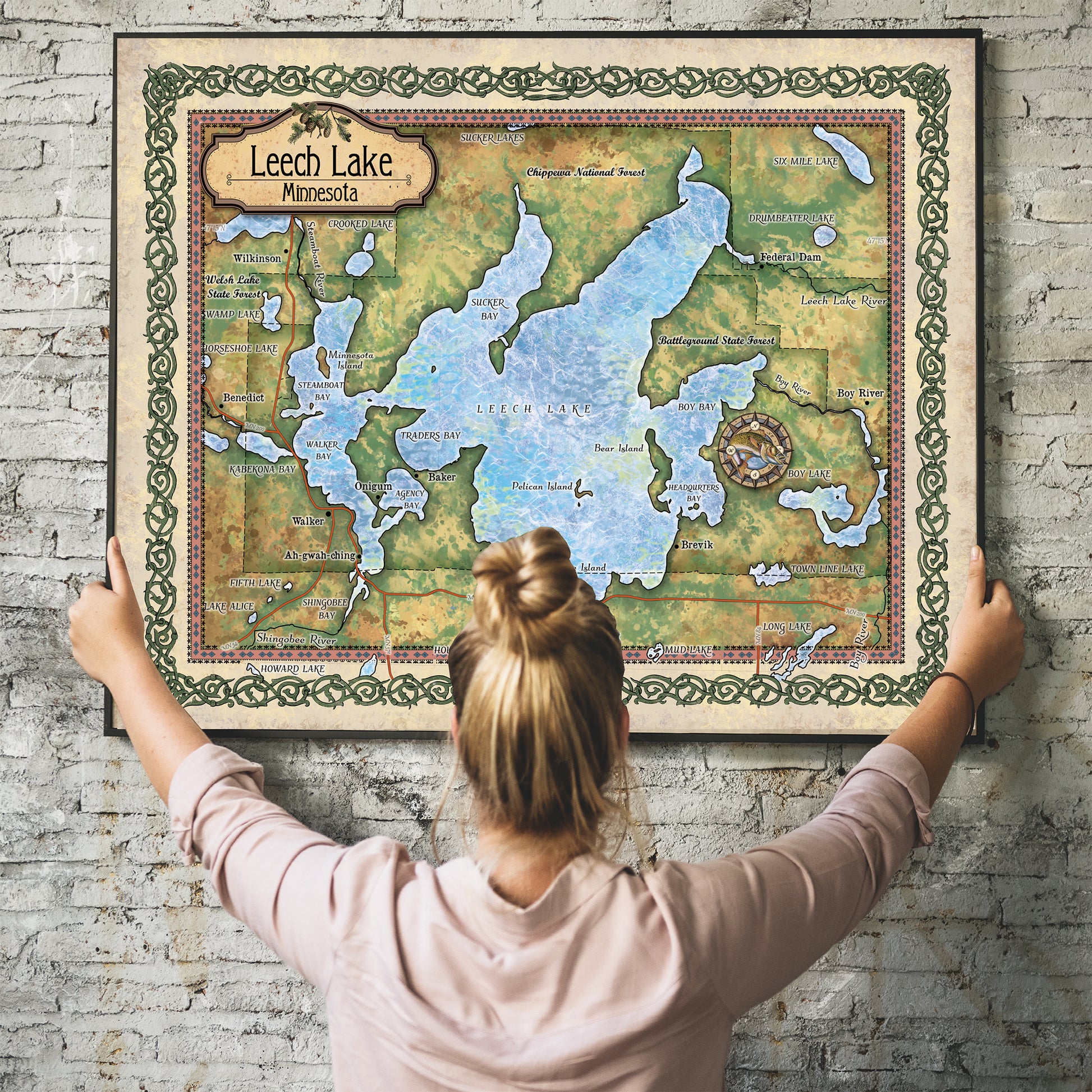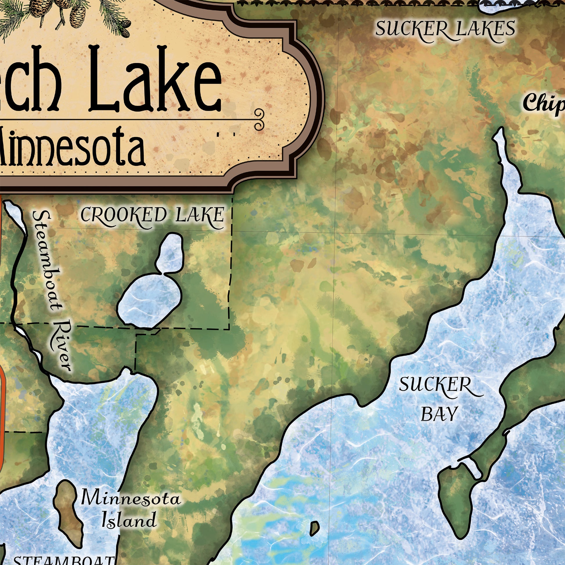 Great River Arts Leech Lake Historic Map Reproduction Artwork Wall Art Print Vintage