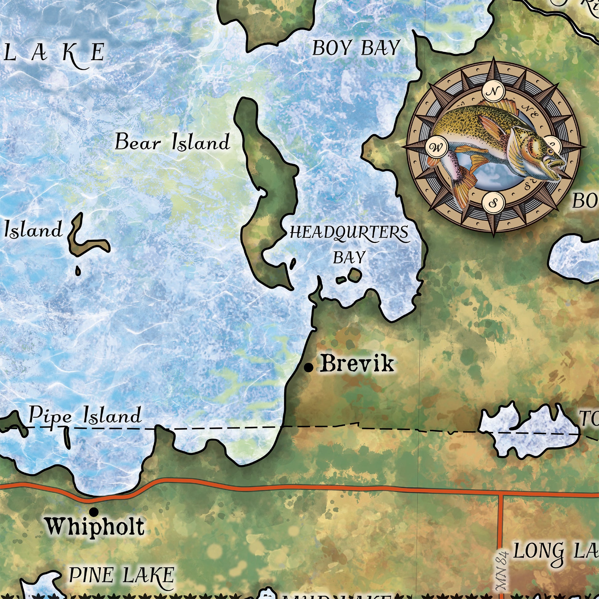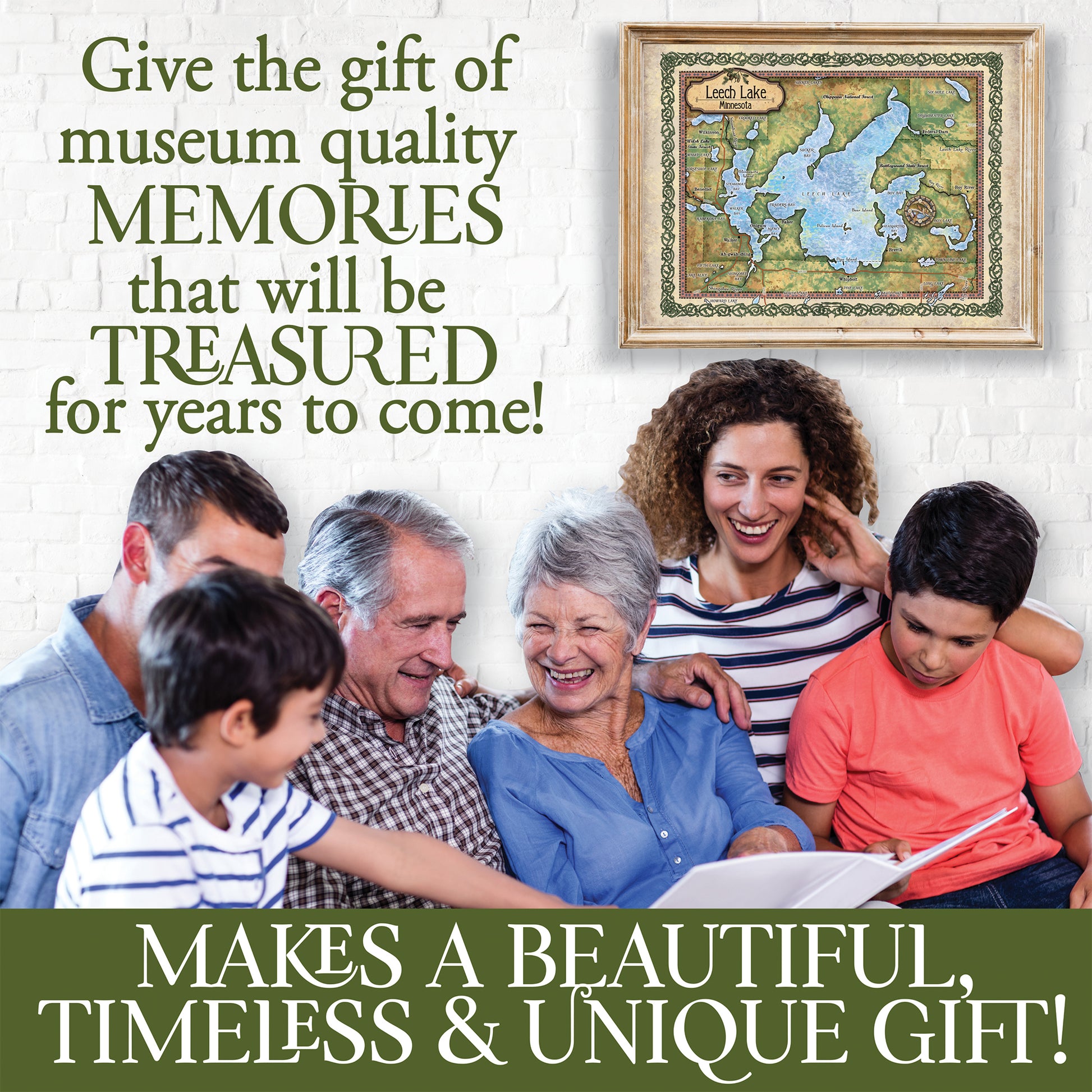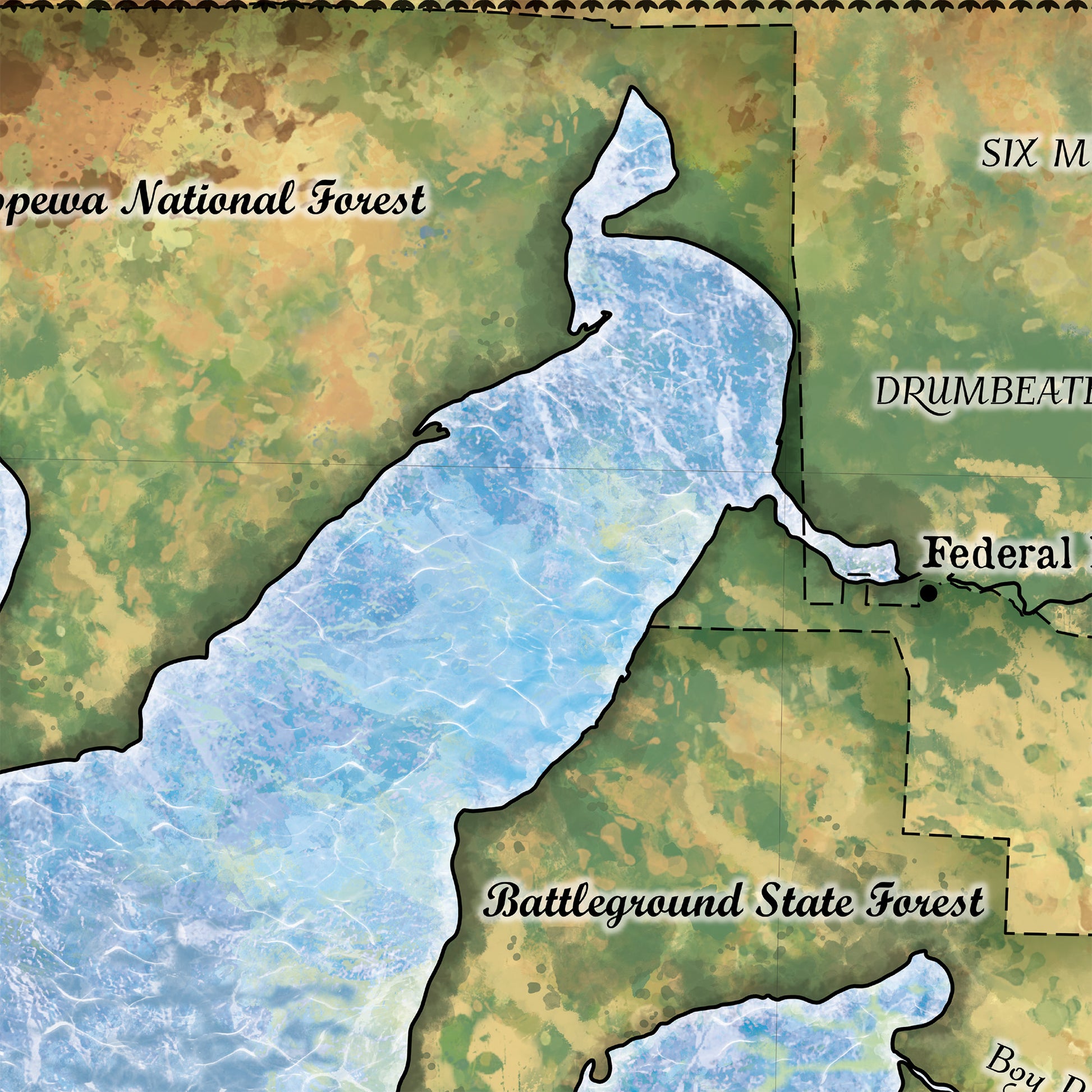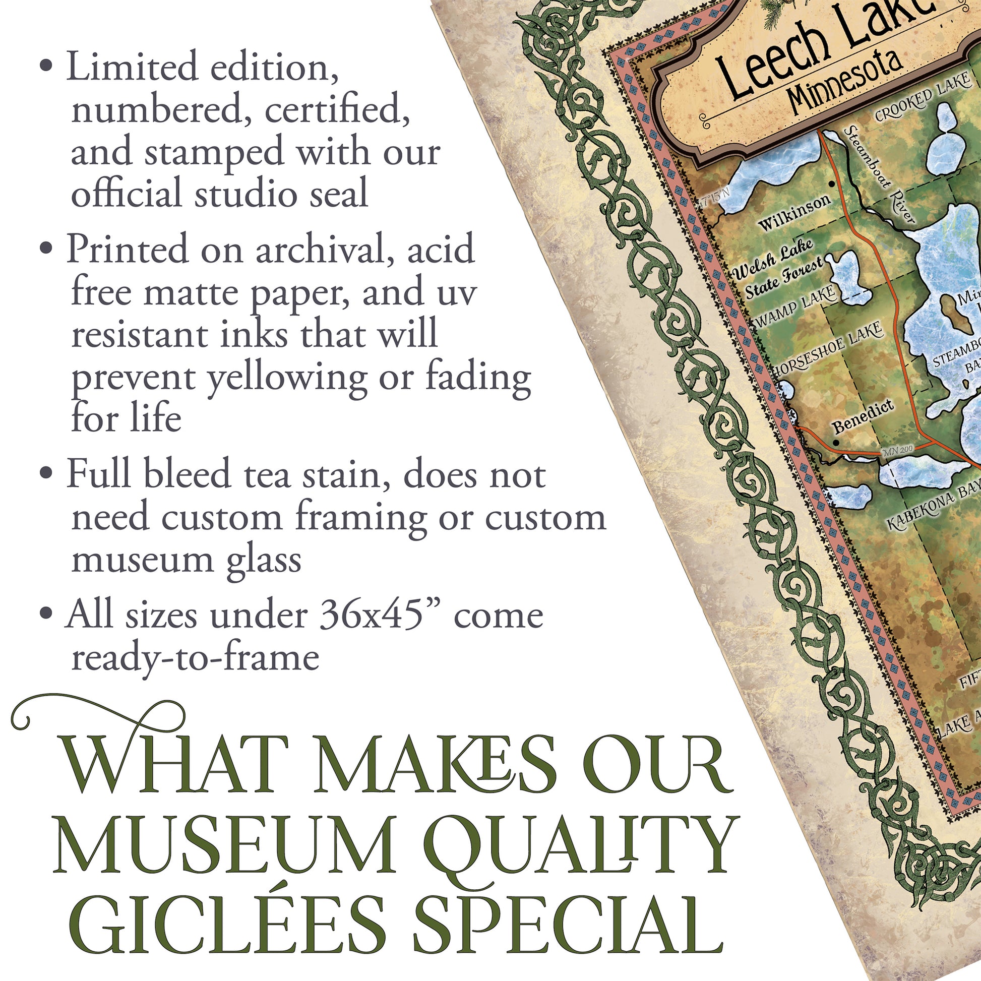 Great River Arts Leech Lake Historic Map Reproduction Artwork Wall Art Print Vintage