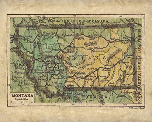 Great River Arts Montana 1906 Historic Map Reproduction Artwork Wall Art Print Vintage