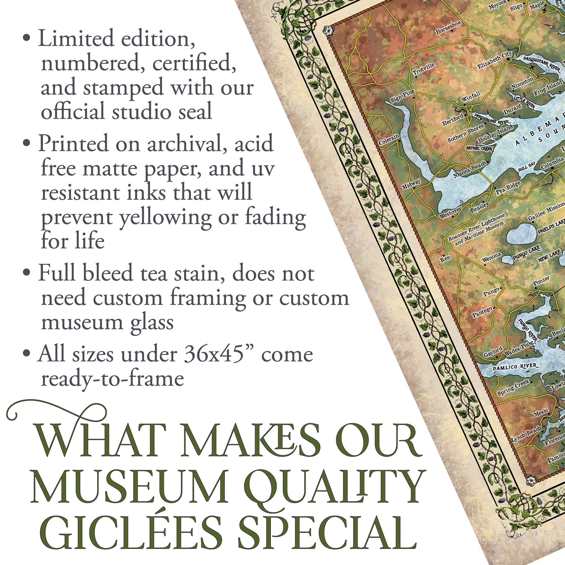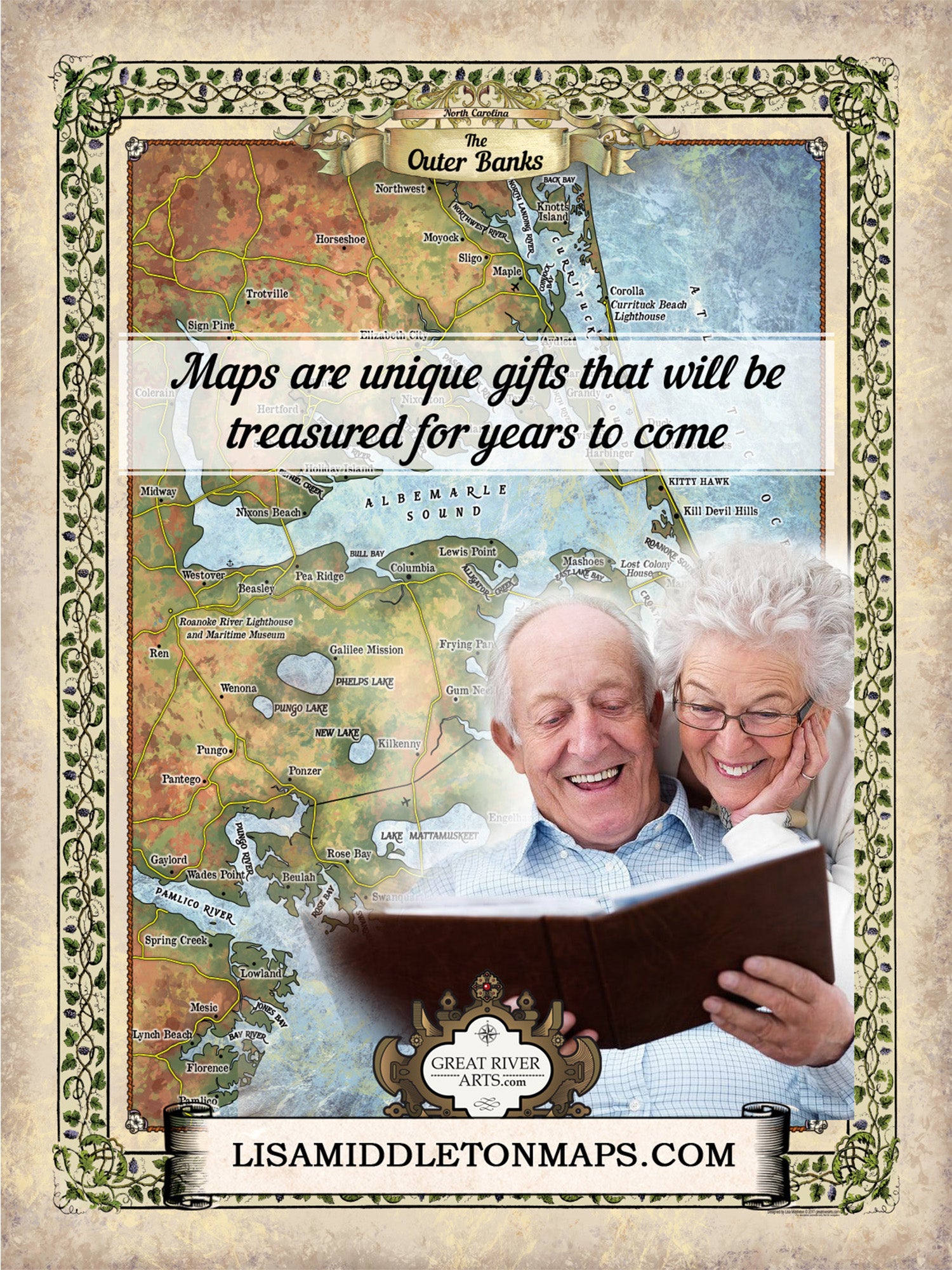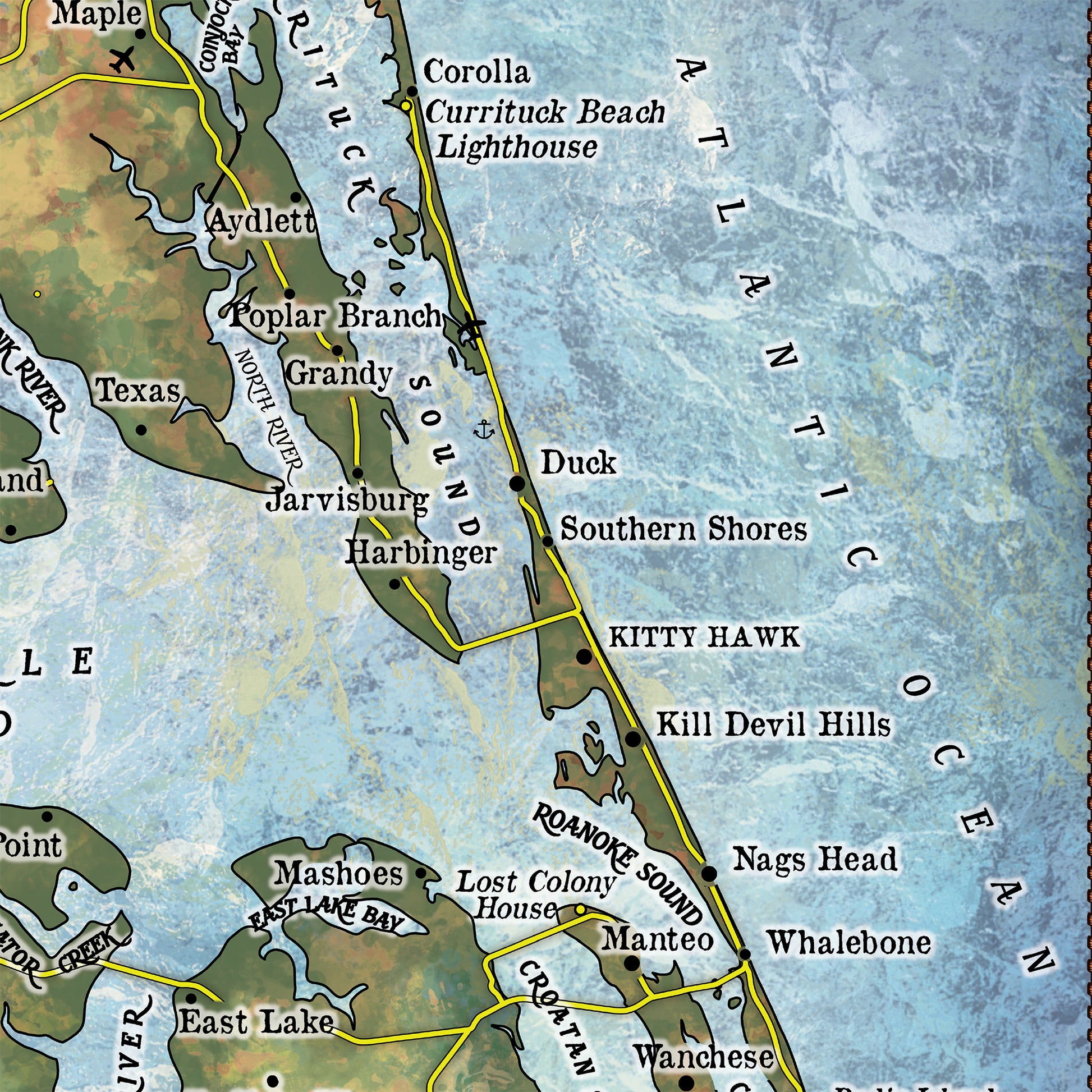 Great River Arts Outer Banks New No Illustrations Historic Map Reproduction Artwork Wall Art Print Vintage