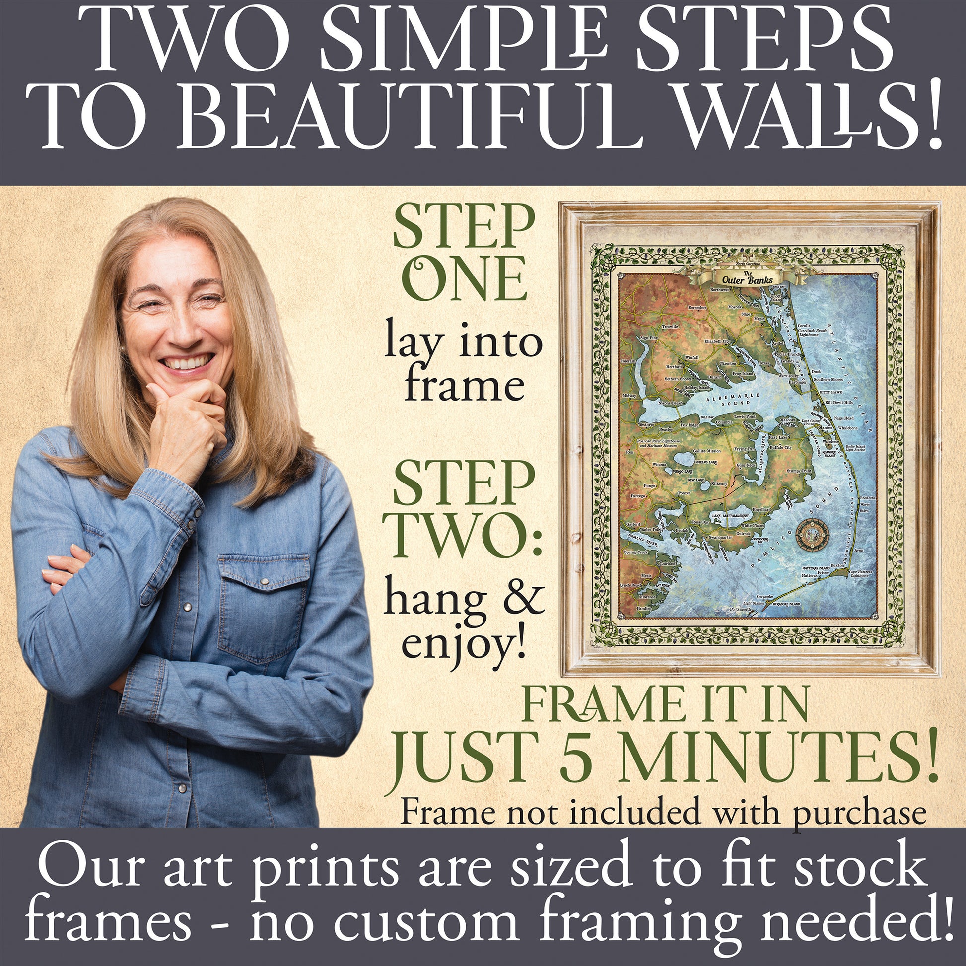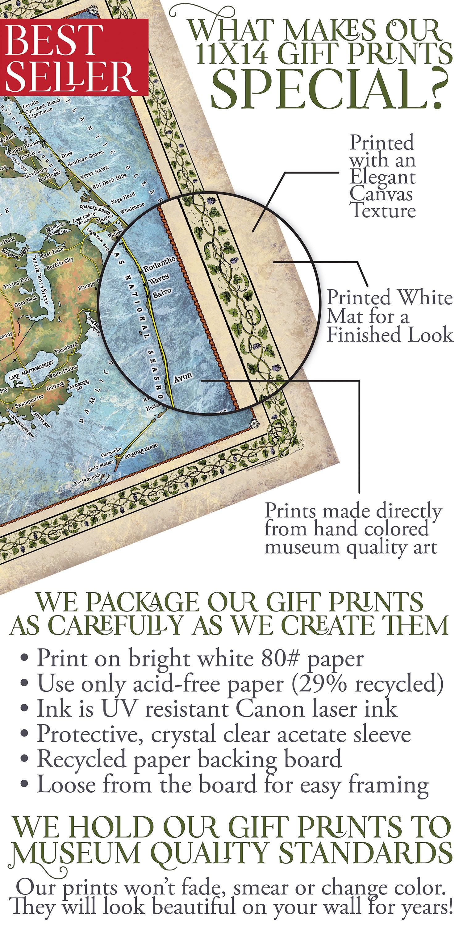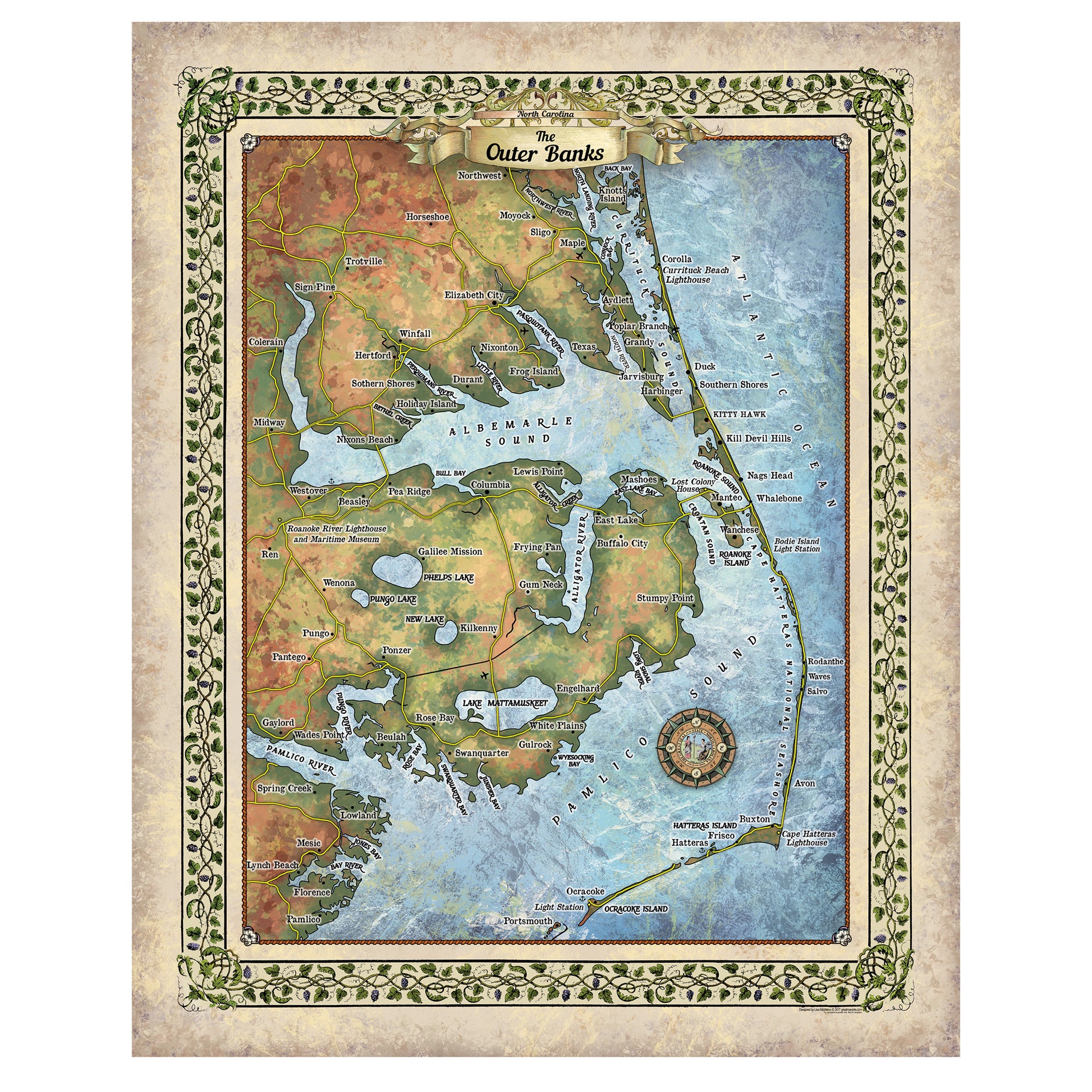 Great River Arts Outer Banks New No Illustrations Historic Map Reproduction Artwork Wall Art Print Vintage