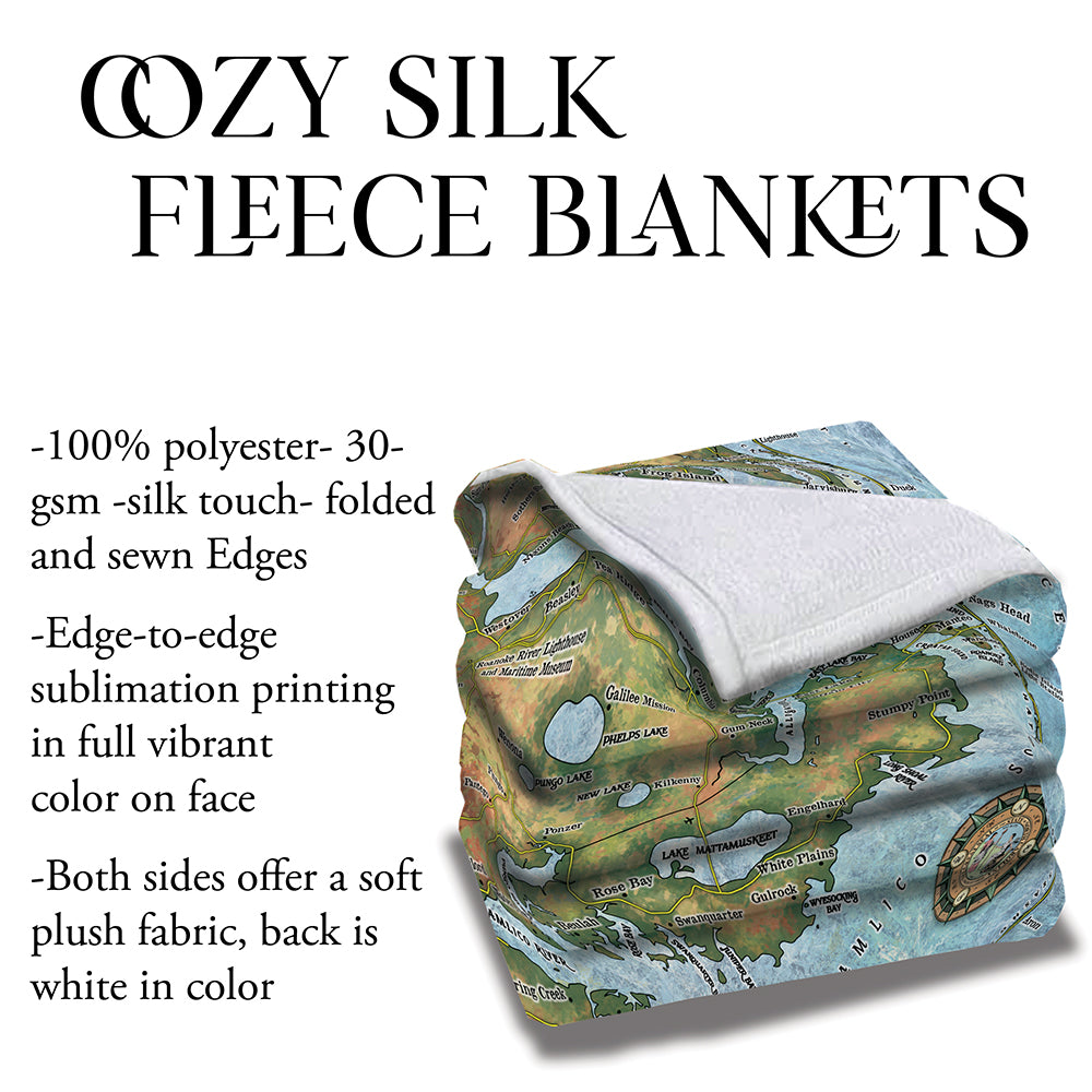 Great River Arts Outer Banks North Carolina Vs.2 Vintage Style Map Sherpa Fleece Blanket Double Stitched Edges Cozy Luxury Fluffy Super Soft 430 GSM Polyester - Sherpa/ Silky/ Polar Fleece Throw Blanket