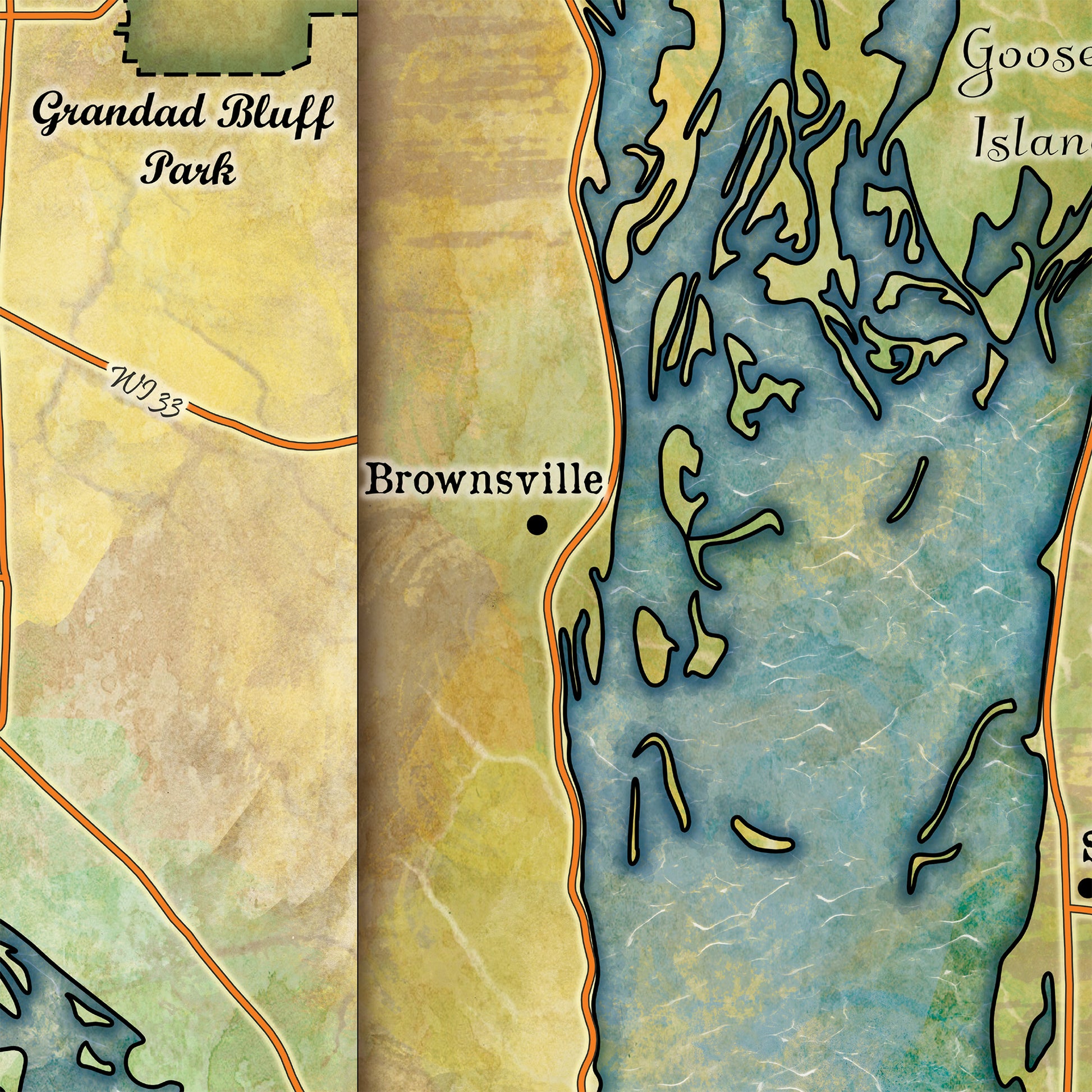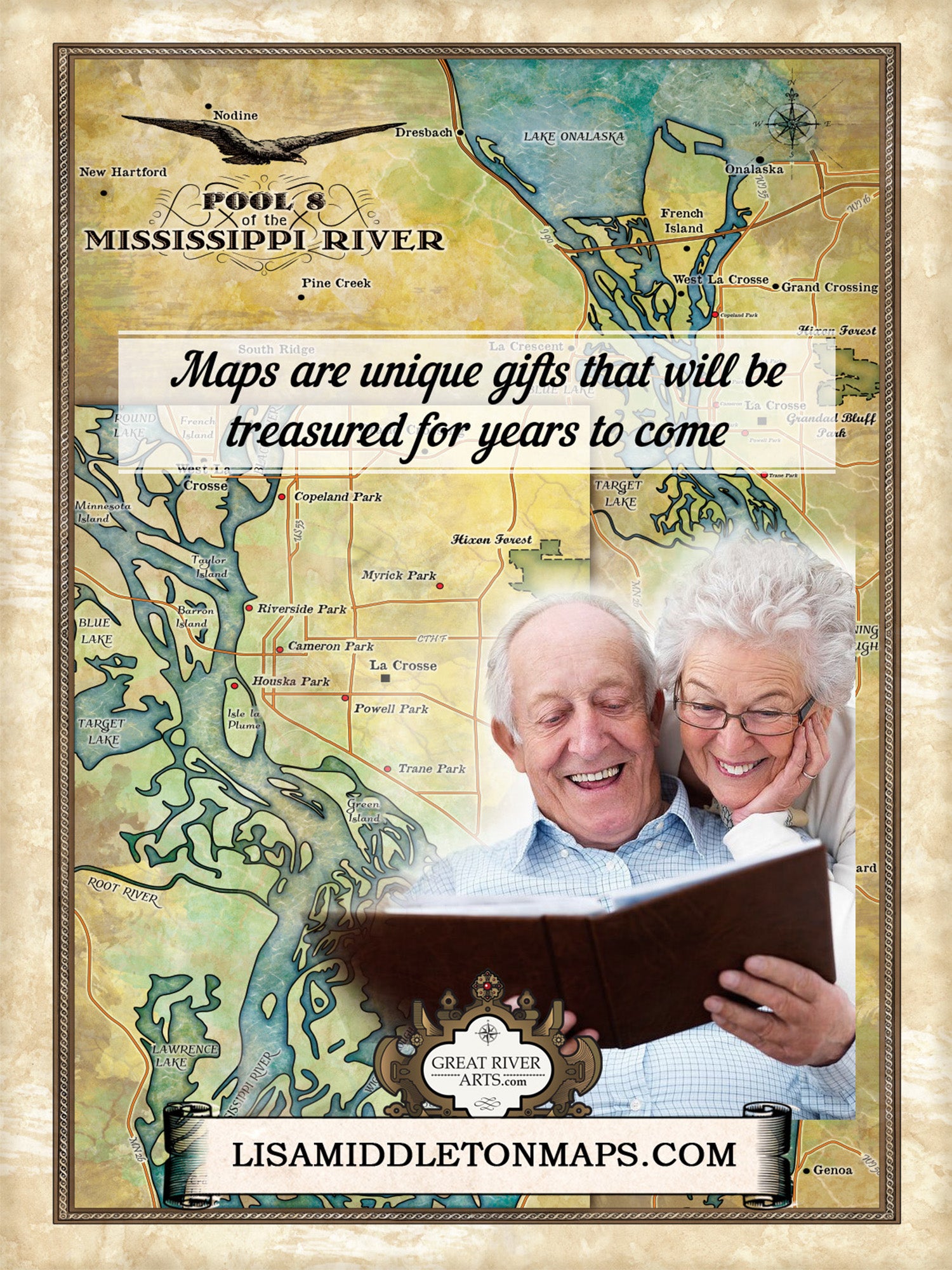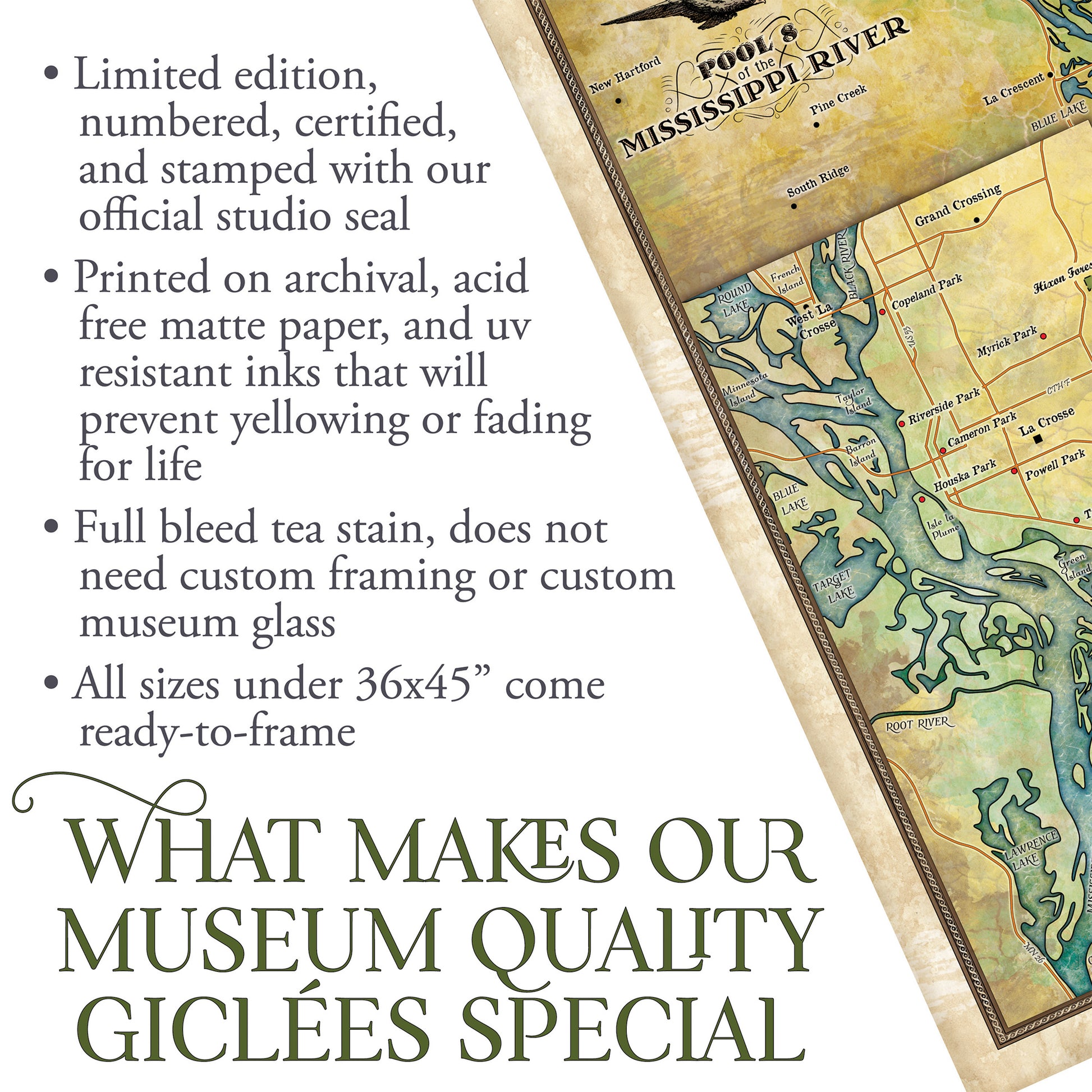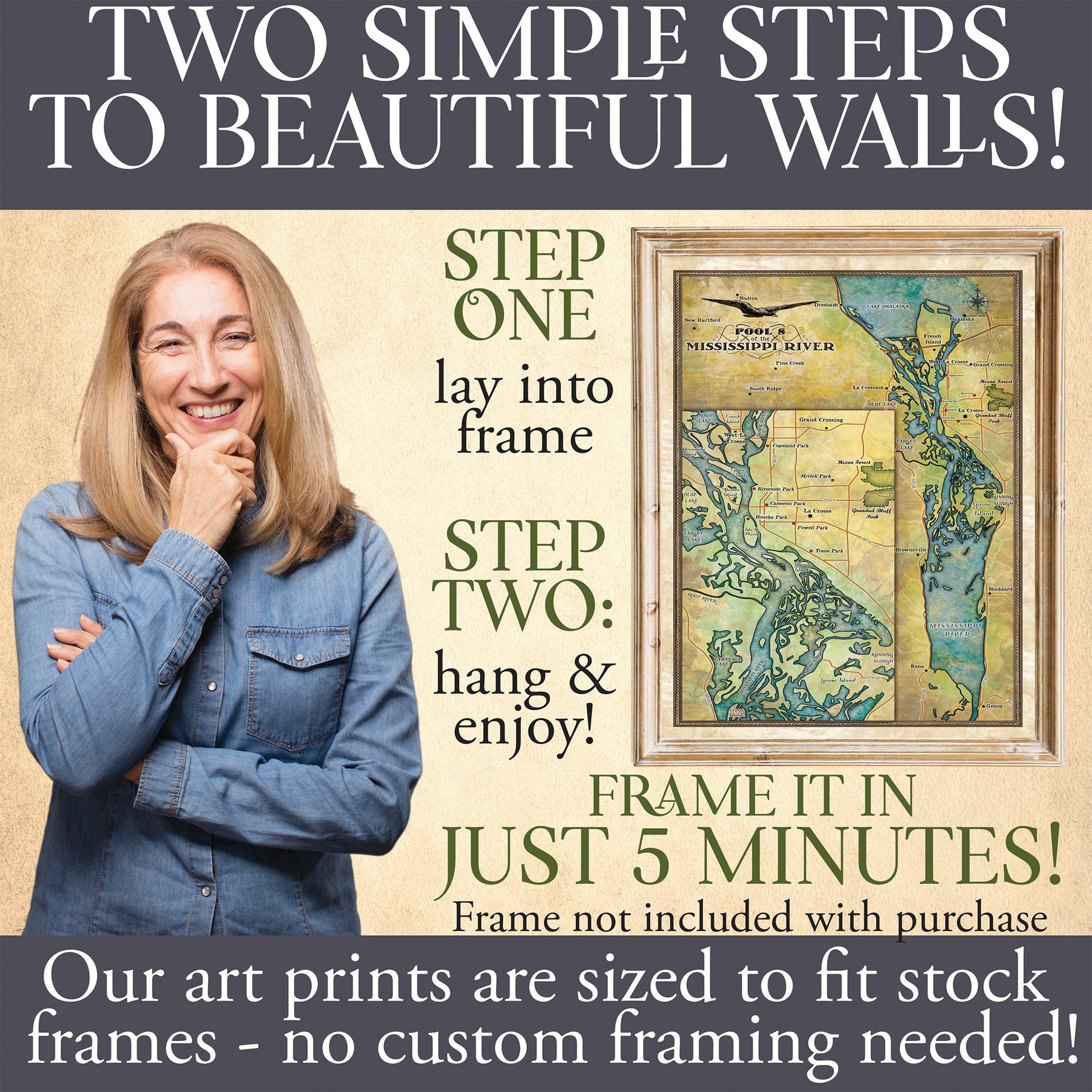 Great River Arts Pool 8 Mississippi River Historic Map Reproduction Artwork Wall Art Print Vintage