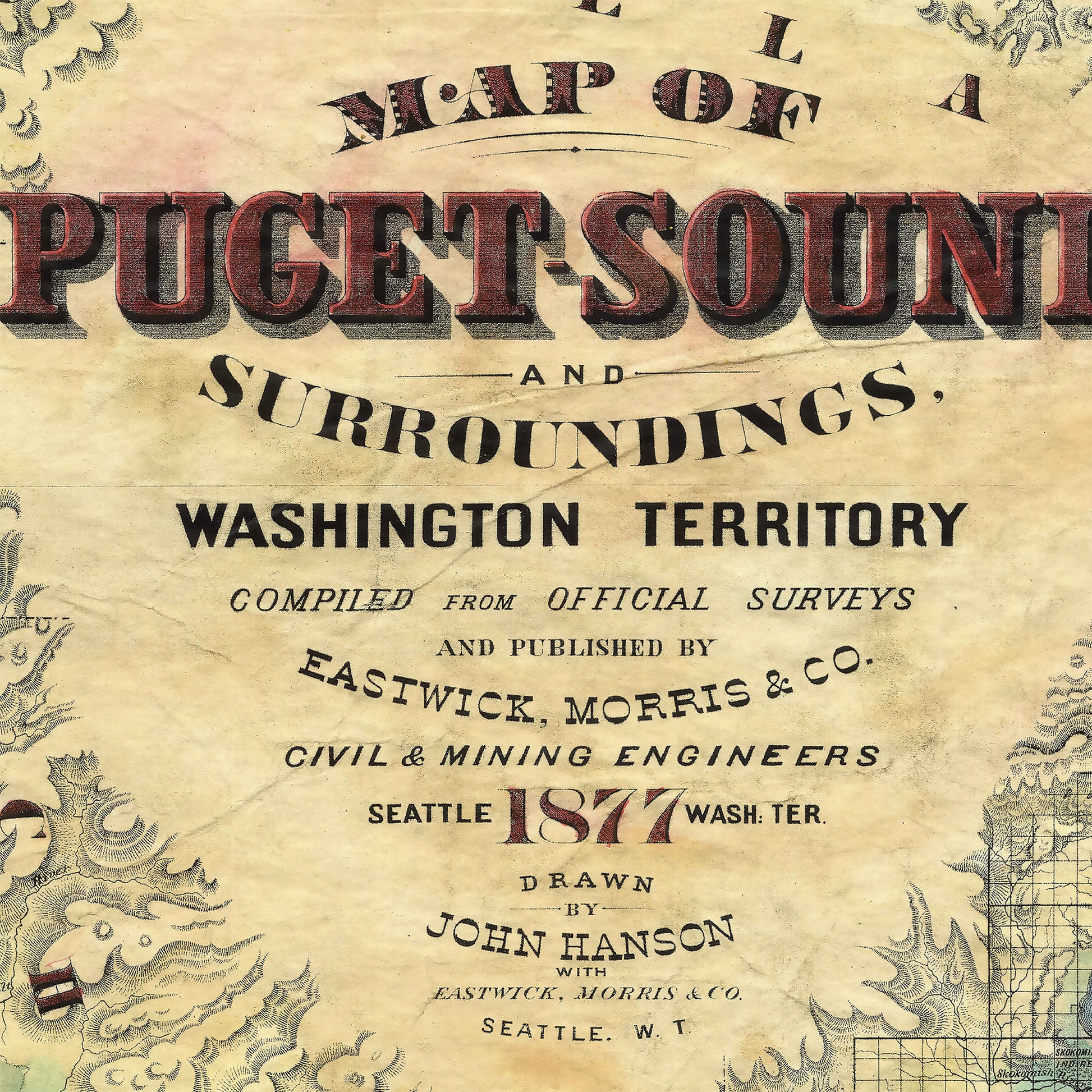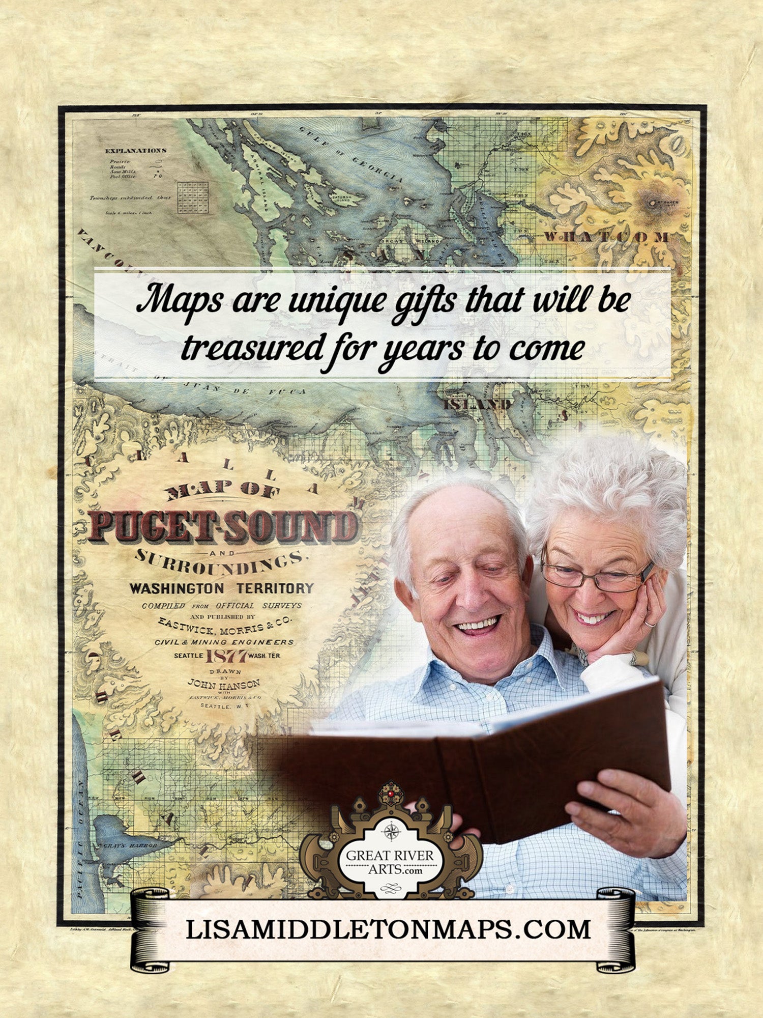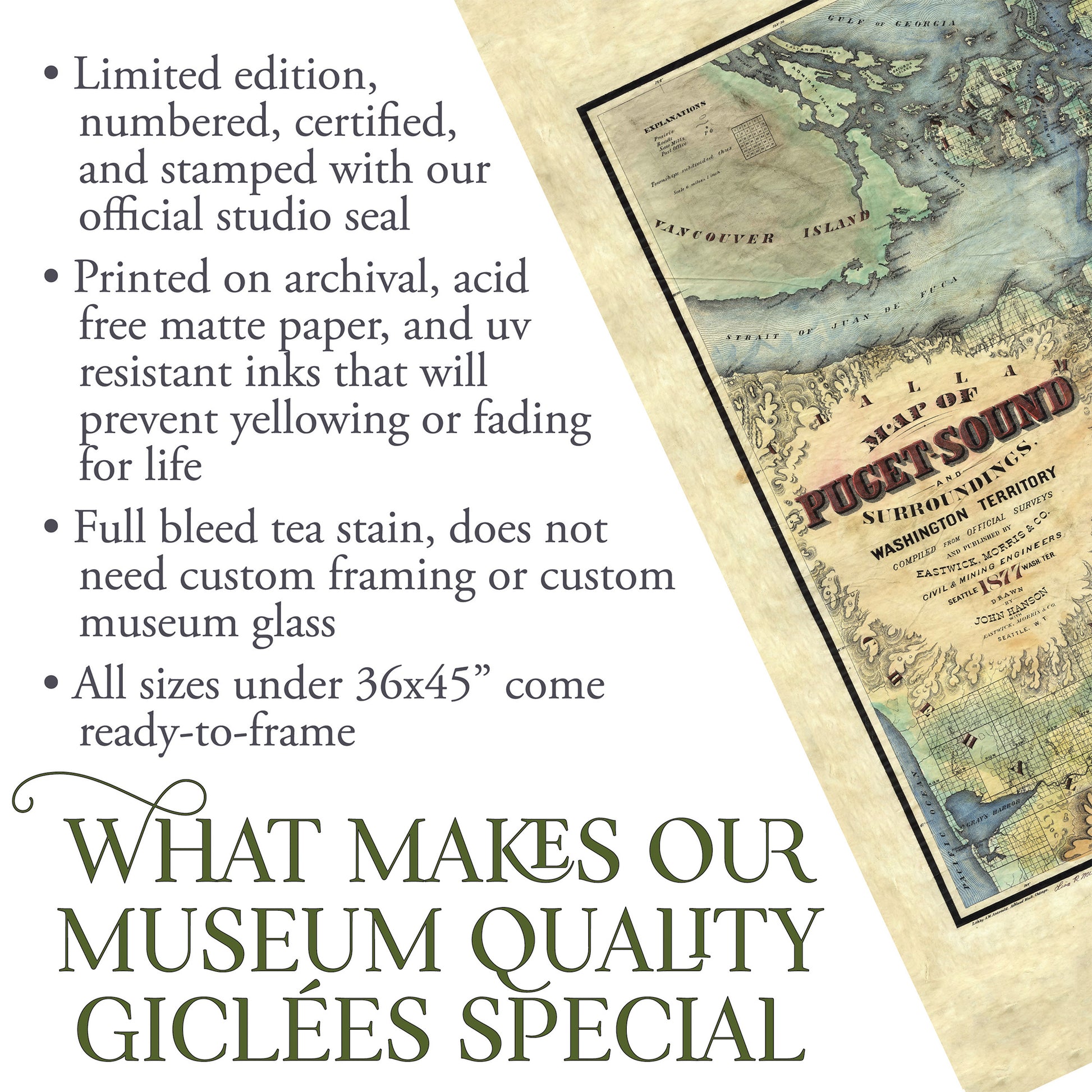 Great River Arts Puget Sound Historic Map Reproduction Artwork Wall Art Print Vintage