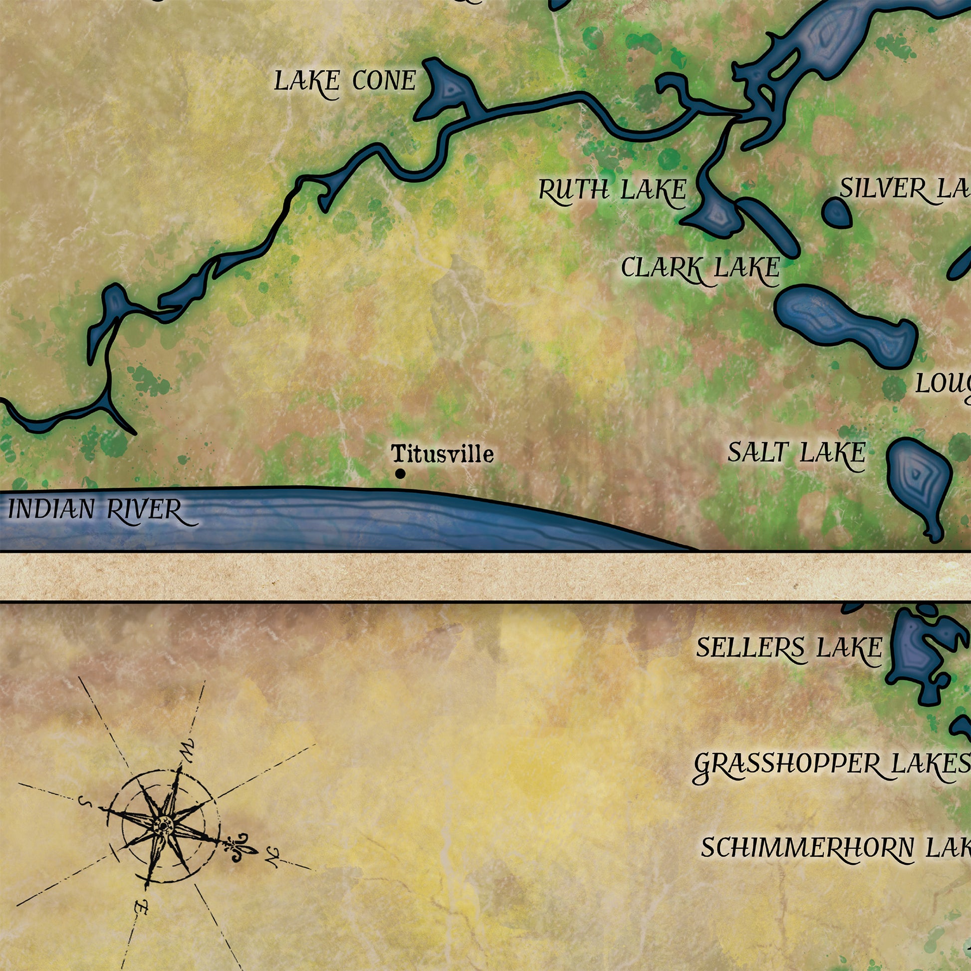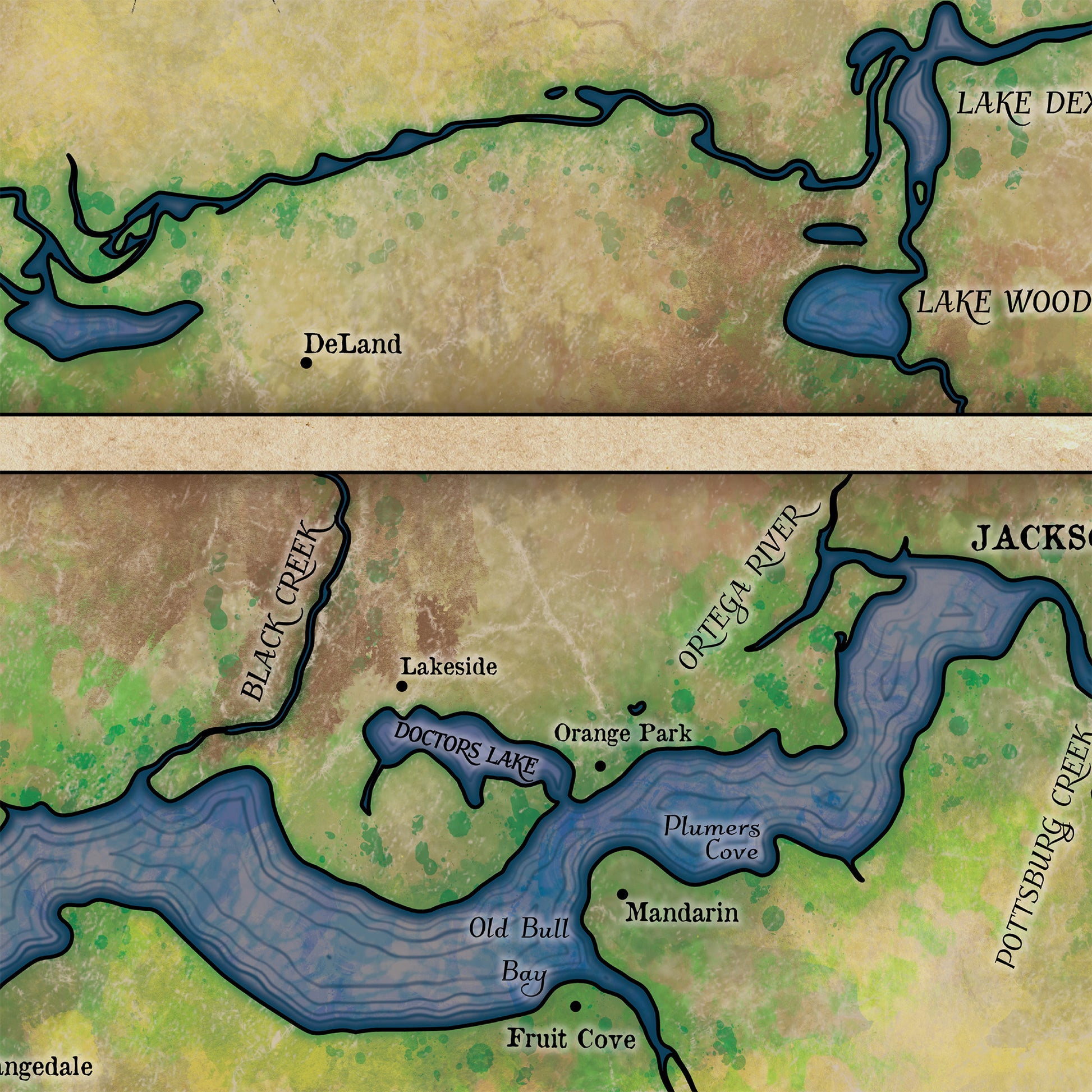 Great River Arts St. Johns River 8X120 Historic Map Reproduction Artwork Wall Art Print Vintage