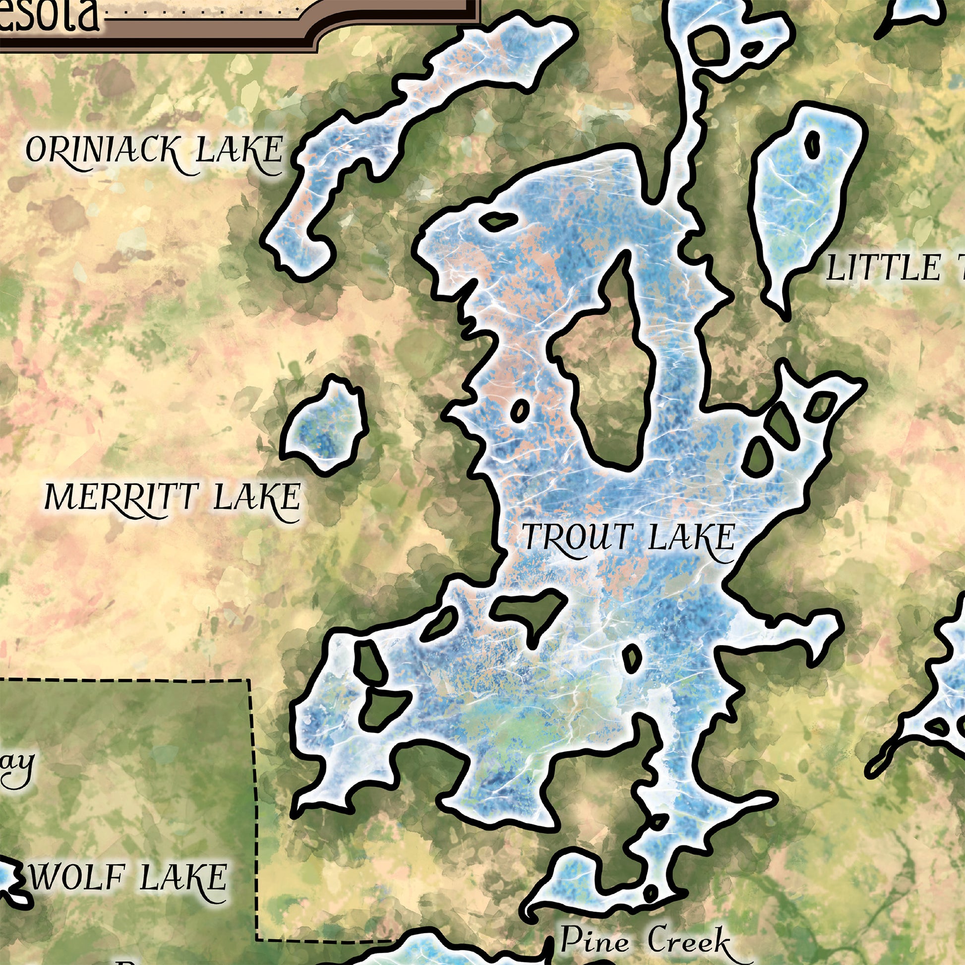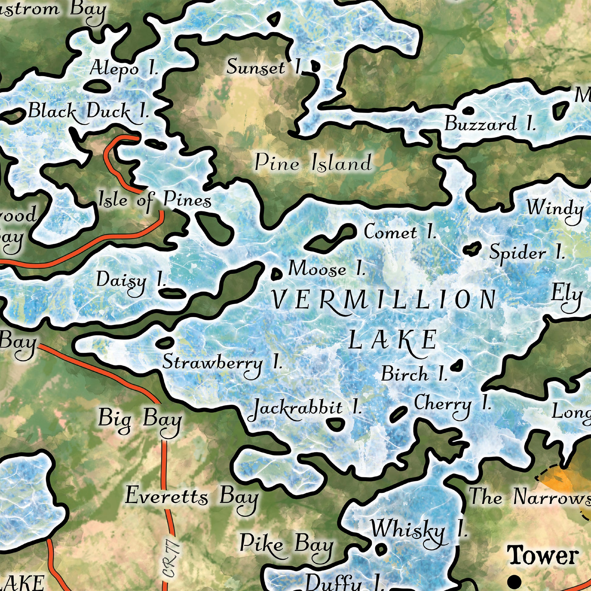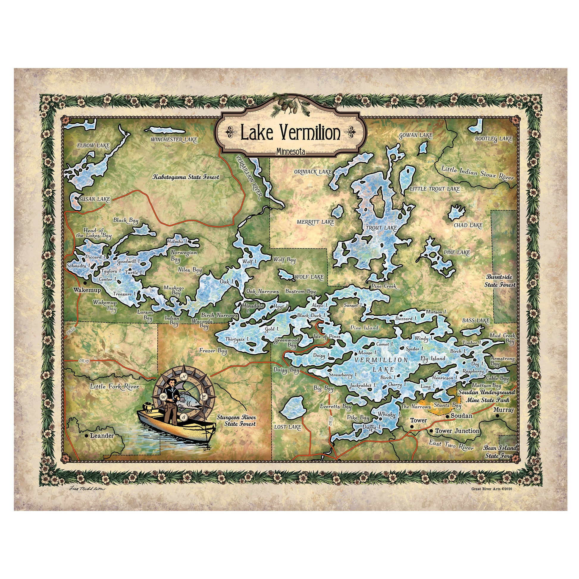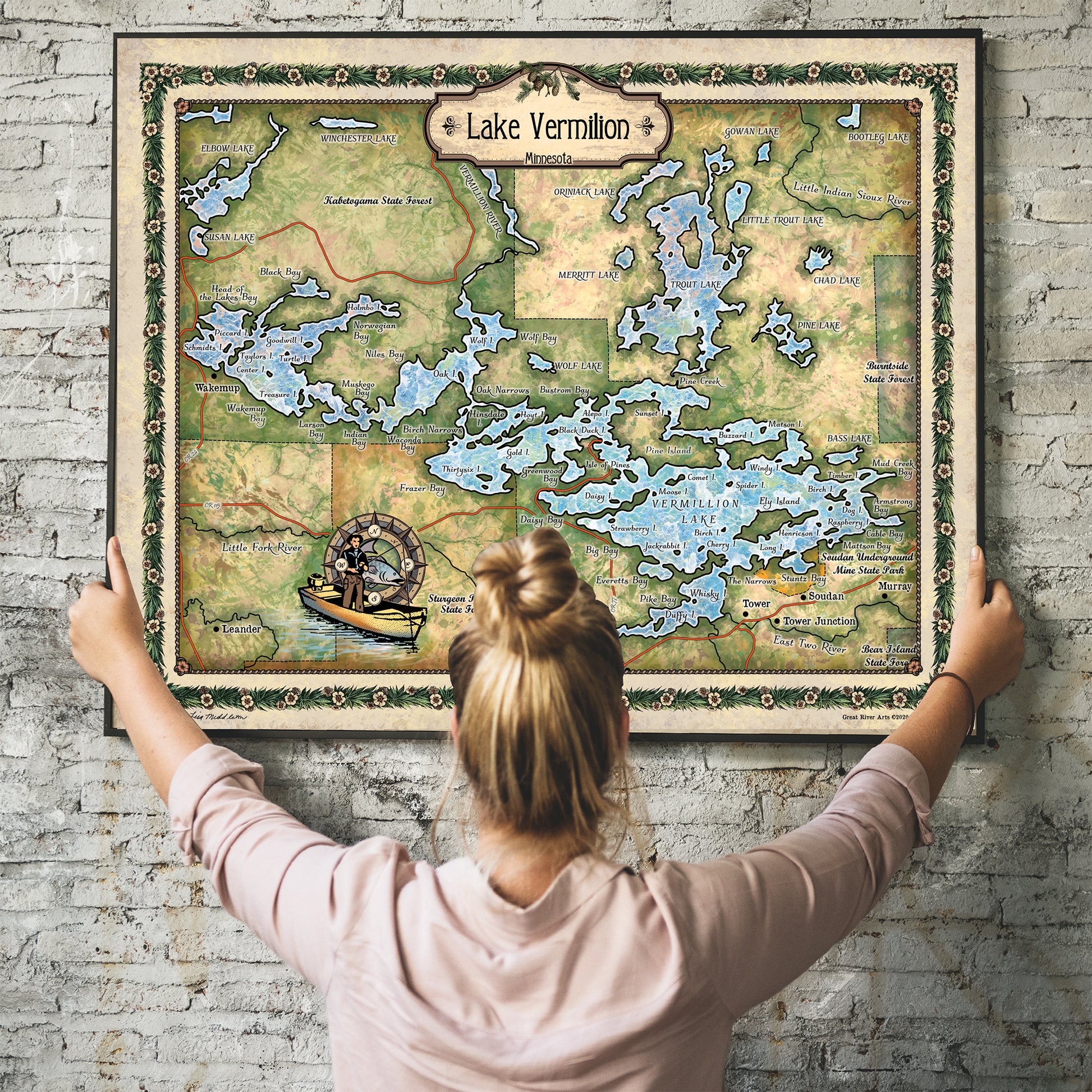 Great River Arts Vermilion Lake Historic Map Reproduction Artwork Wall Art Print Vintage