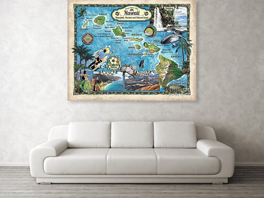 Hawaii Gift, Surfing Gift, Beach House Gift, Hawaii Map, Hawaii Art, Surfing Print, Surfing Decor, Surfing Art, Hawaii Print Wall Art