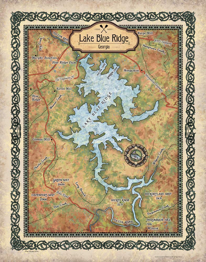 Love Lake Life? Enjoy this rare Lake Blue Ridge map in rich color and multiple sizes- for years to come. Great for gifts and a feature map in your home! If you are looking for gorgeous color and a way to cherish your family memories for years to come- fishing, boating, and laid back lake life- this lovely map should be yours.