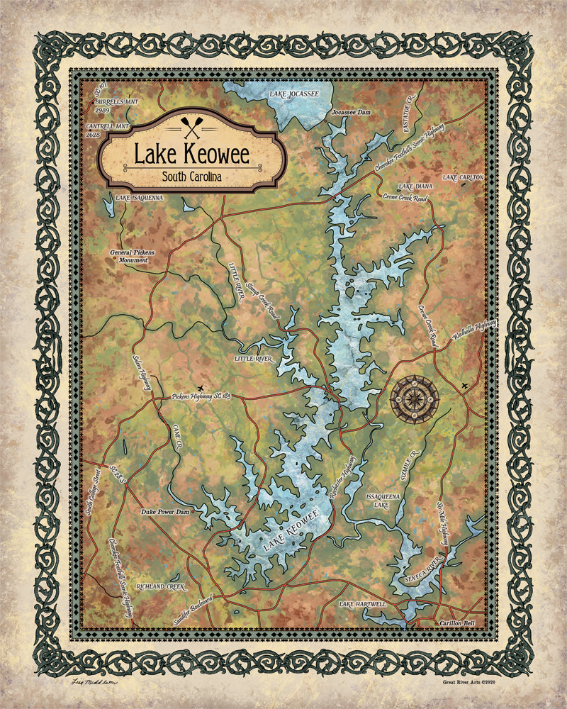 Lake Keowee, South Carolina, Vintage map, Vintage map art, south carolina map, lake art, lake map, lake life, lake house, map lake Keowee