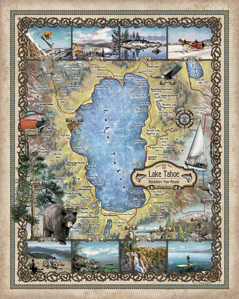 Lake Tahoe Antique Map Art Blanket Throw Soft Polar/ Silky/ Sherpa Fleece Vintage Warm Blanket For Bed Sofa Chair Dorm Gift & Travel