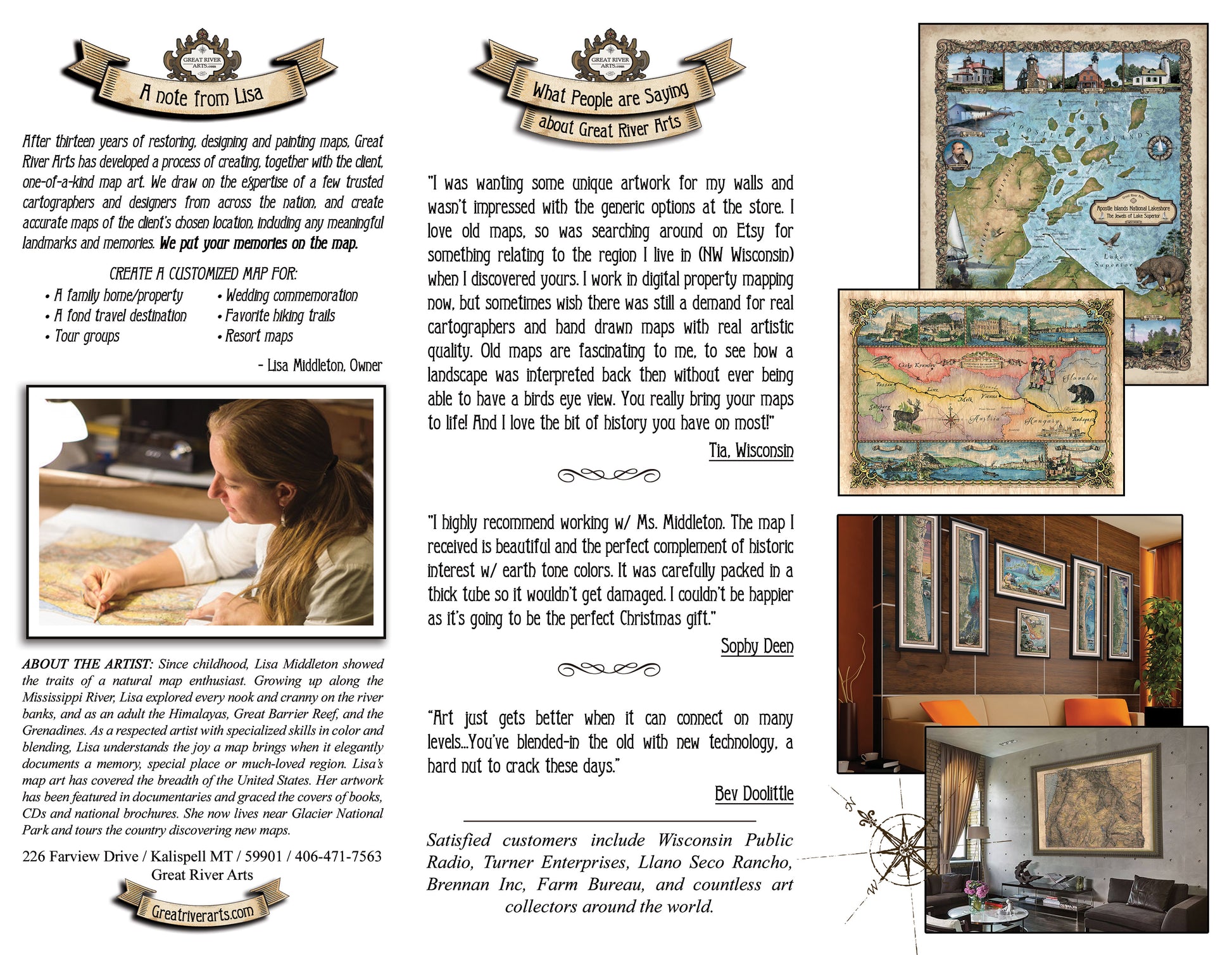 “Throughout the process of creating the map Lisa was in contact with me about the area to cover, and specific towns and features I wanted to include to personalize the map for us. The finished product is beautifully done, and made such a special, personal gift. I found Lisa very accommodating and easy to work with and would recommend her without reservation.” Corporate Client, DE