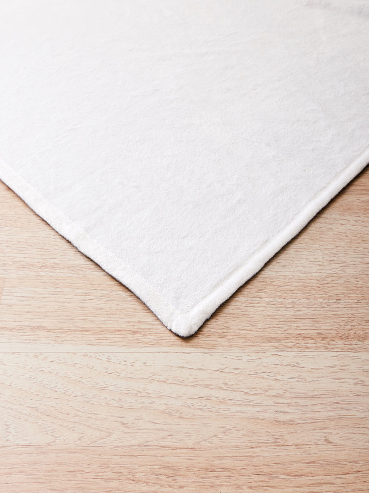 -Sherpa fleece blankets are a little heavier, white on the back, with surged, square edges. The Sherpa fleece has two sides — one side has a flat smooth with almost no pile, allowing for a clearer image. The other side is textured to look like fleece from sheep.