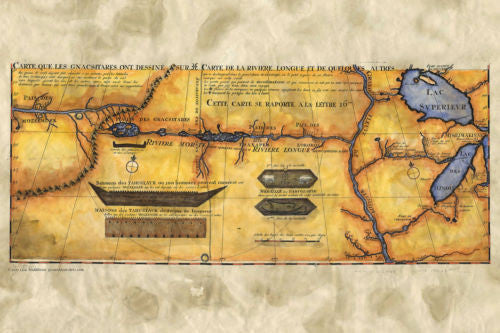 The map also features several French forts and outposts that were responsible for fur trading. The French were the first to establish trade with the Indians in this manner. Beaver pelts were used to make hats that were quite popular at the time in Europe. The native Americans were good trappers and developed a symbiotic trading relationship with the early french explorers. The map here gives a snapshot of sorts, of what the trade route would have looked like at the time.