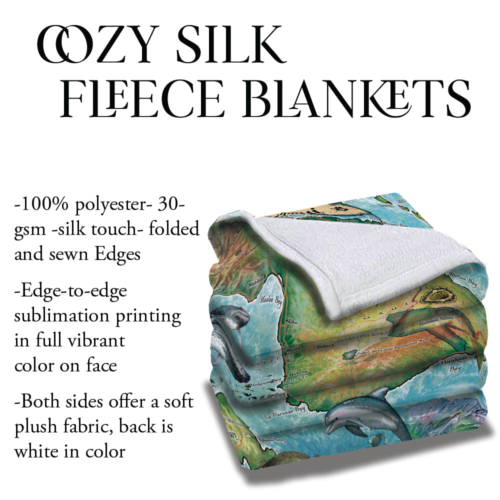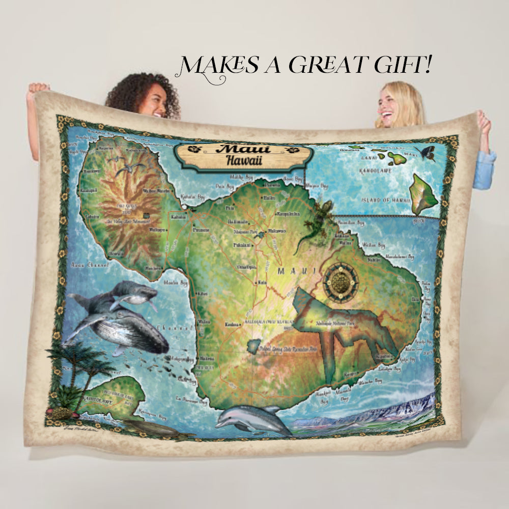 Maui Hawaii Map Art Blanket Throw Polar/ Silky/ Sherpa Fleece Vintage Blanket For Bedroom Sofa Chair Dorm Gift & Winter Traveling