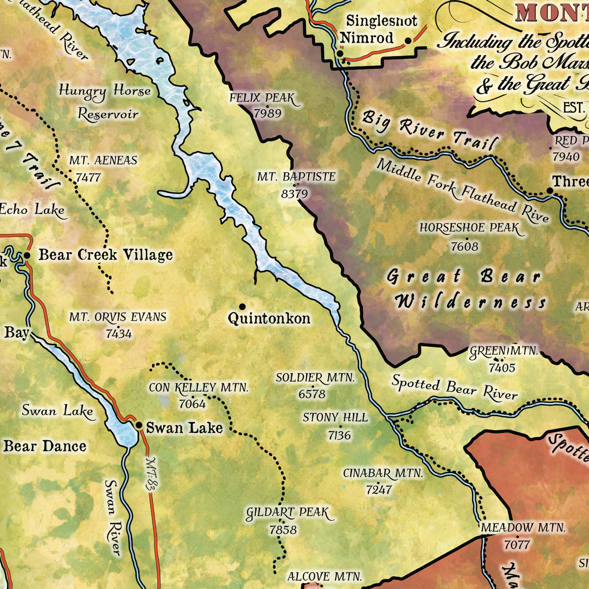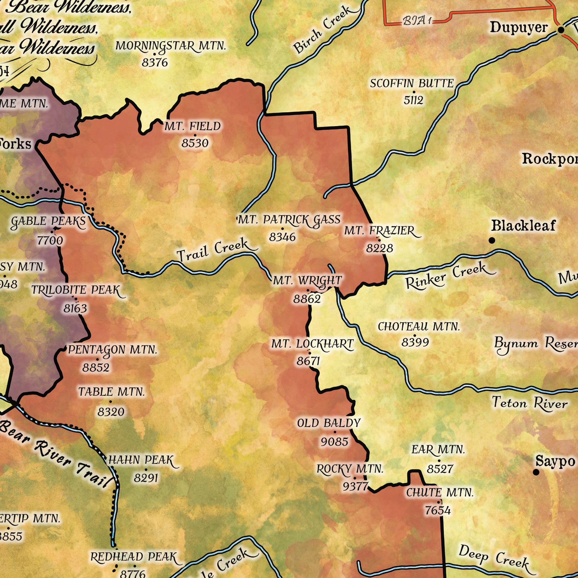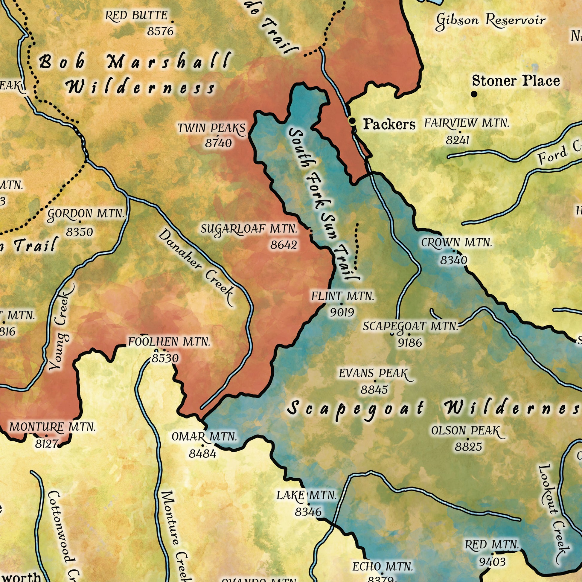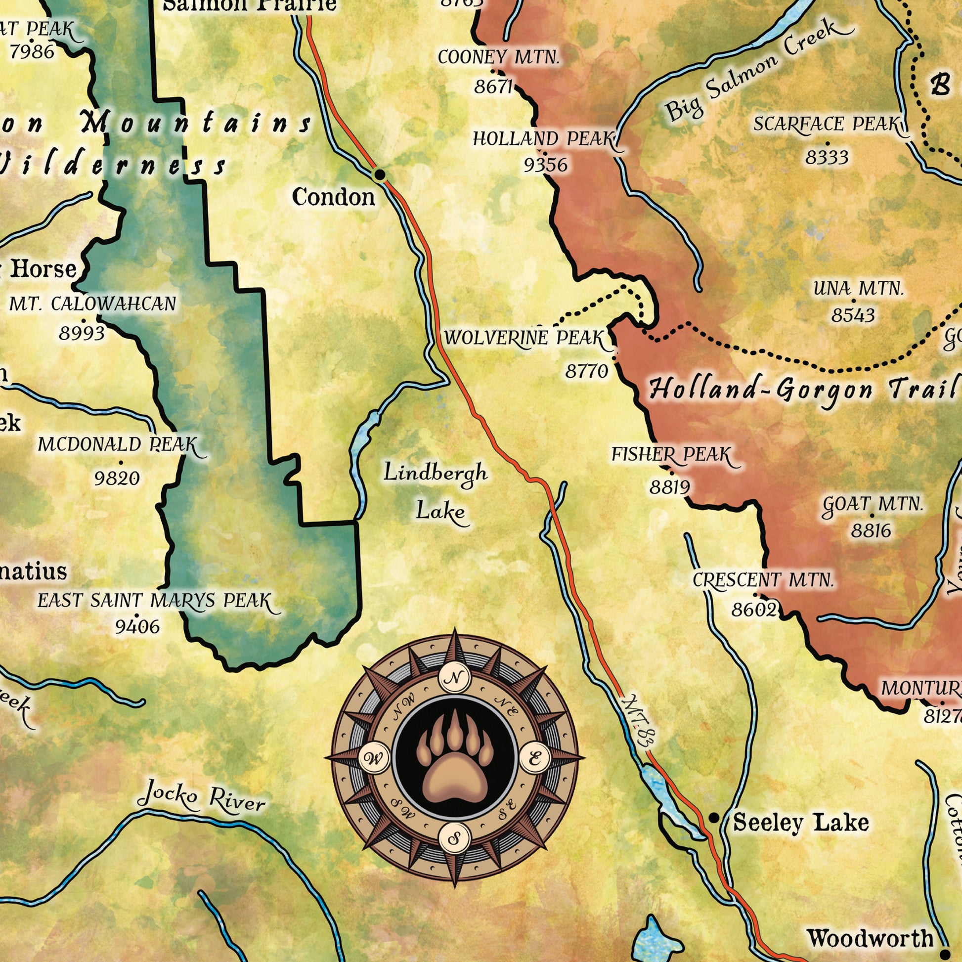 Montana map, montana hiking, Bob Marshall Wilderness, The Bob map, backpacker gift, Montana gift, hiker gift,