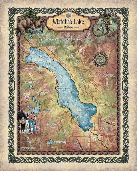Right around 1850, a group of fur traders and trappers found the indigenous population who resided at the lake fishing for a particular fish. The fish appeared to be white to the trappers and they named the lake accordingly. Though it was a popular place for trappers, fishers, and traders to travel through for many decades, there was no settlement at the lake until John Morton built a cabin on the shore of the lake near the mouth of the Whitefish River in 1883. Soon after, the logging industry took an interest in the area. Loggers would float their logs on the lake to the mouth of the river. They would then dam up the river and then release the water which would help them float their logs all the way down to the city of Kalispell.