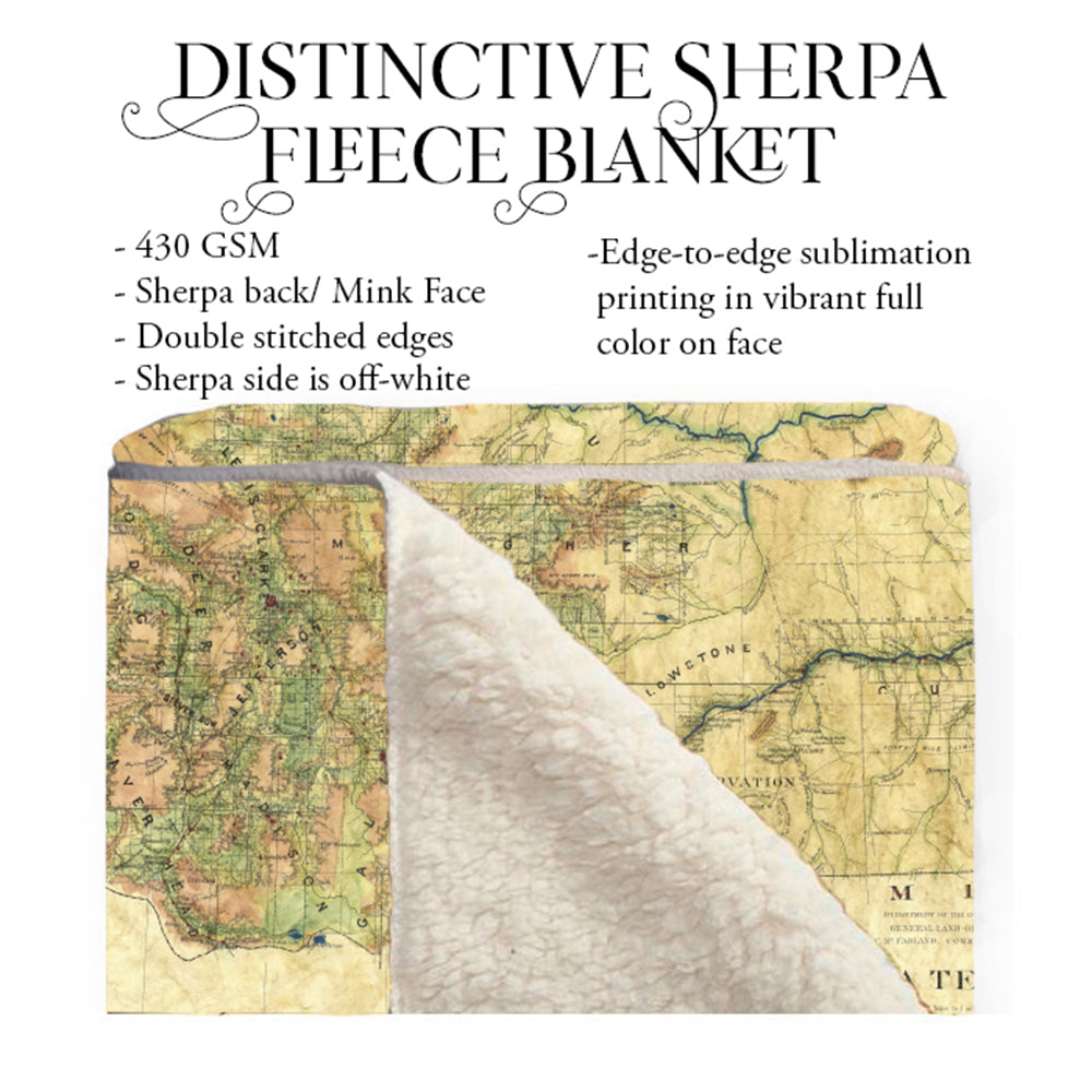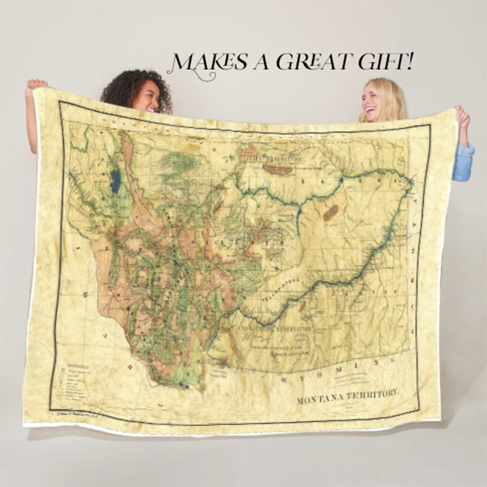 Montana Territory Tribal Map 1883 Old Montana Map - Sherpa blanket, silky fleece blanket and polar fleece blankets perfect for Mom gifts, Dad gifts, children gifts, and travel gifts. Ideal lake house decor, cabin decor, tropical décor for guest blankets, living room blankets, and anywhere you want to add a beautiful map blanket of your favorite place