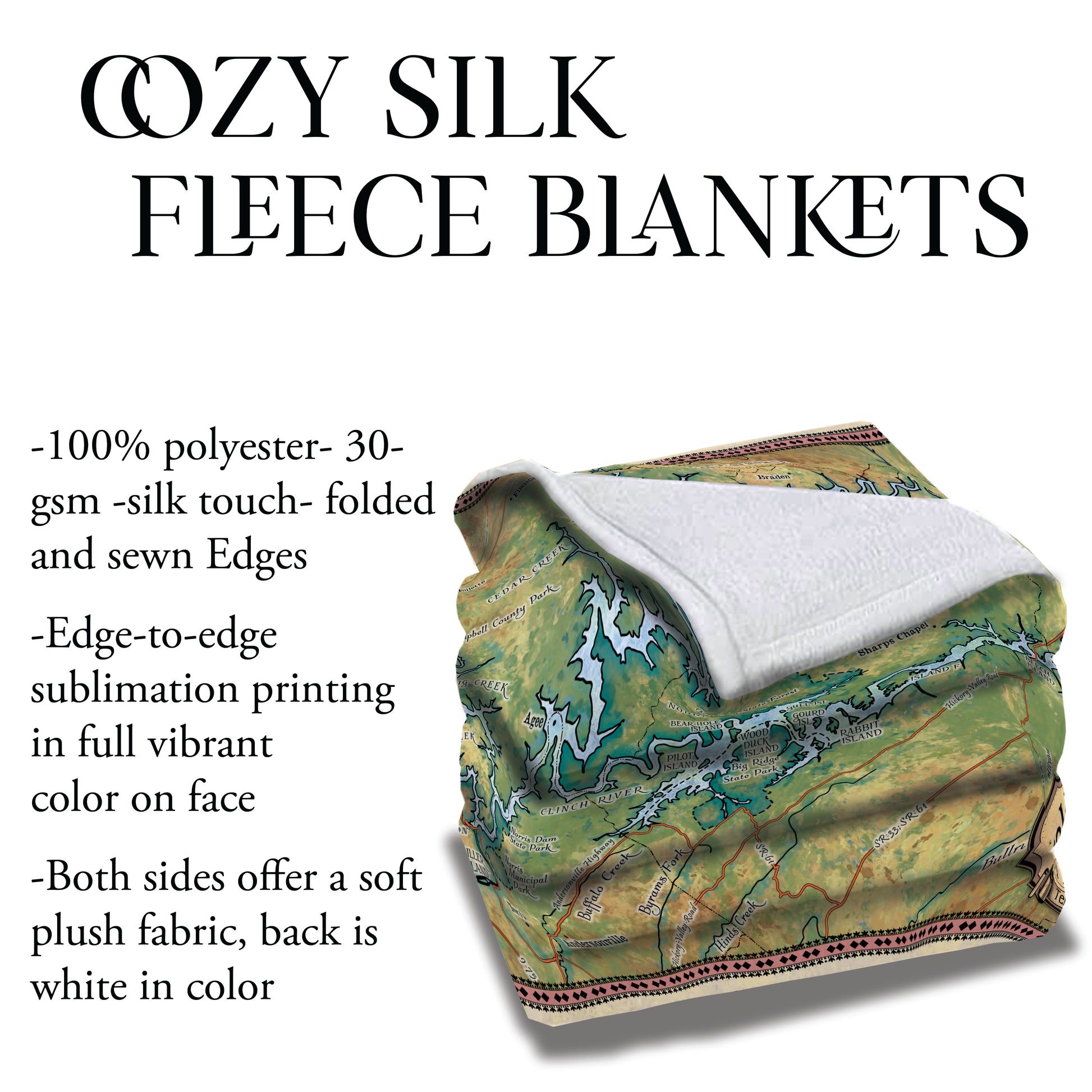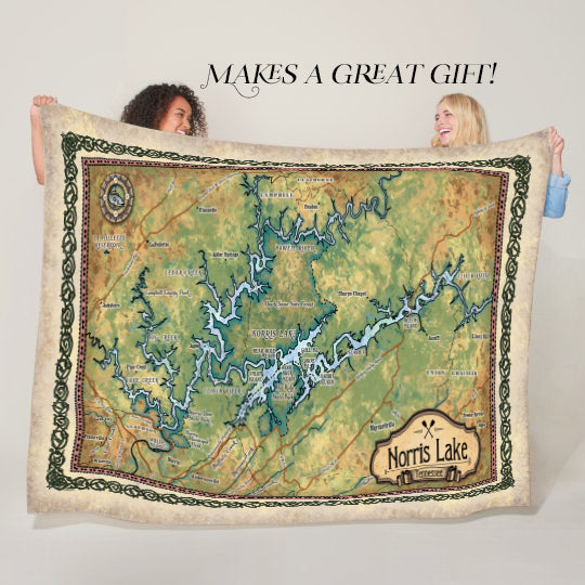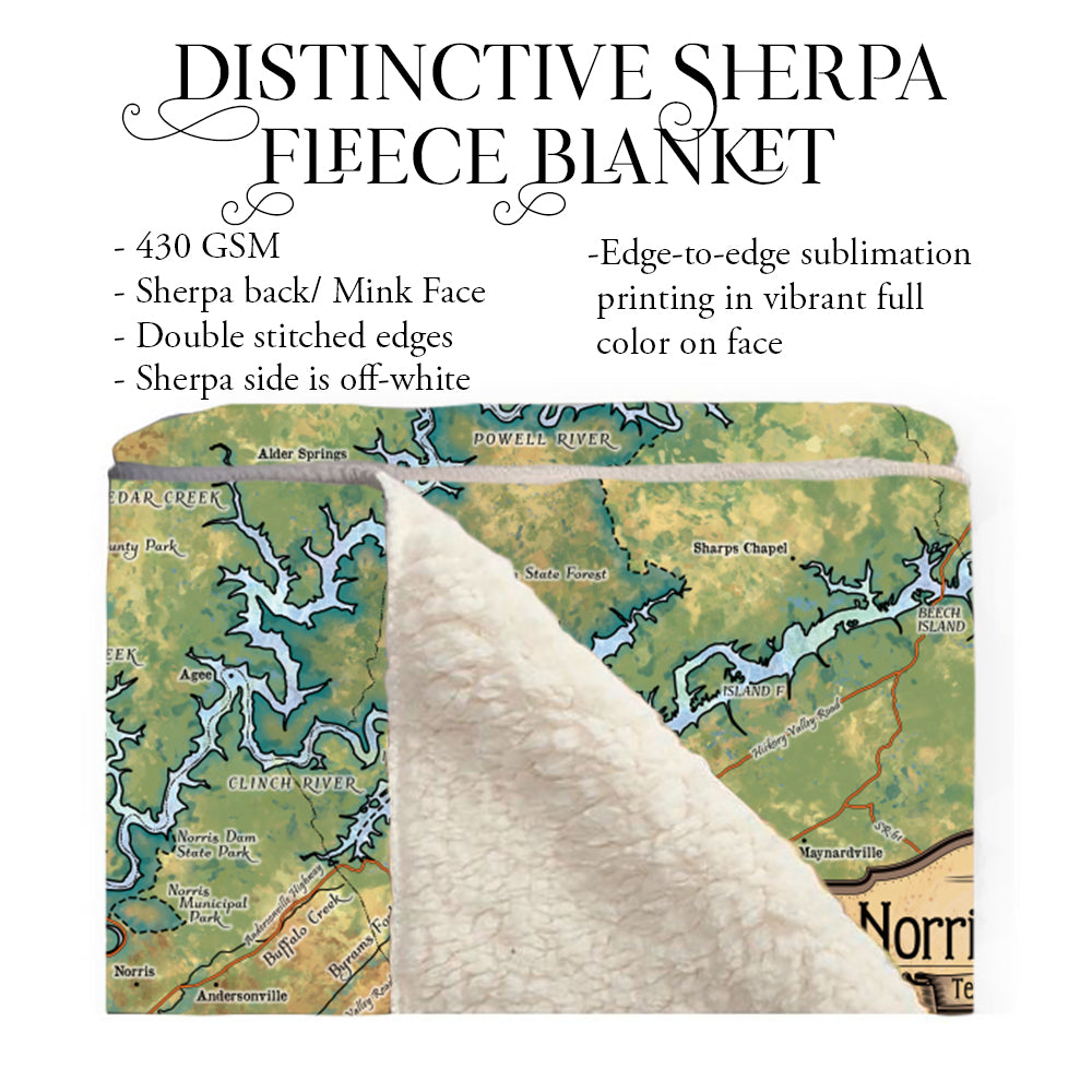 Norris Lake Tennesse Antique Map Art Blanket Throw Soft Polar/ Silky/ Sherpa Fleece Warm Blanket For Bed Sofa Chair Dorm Gift & Travel