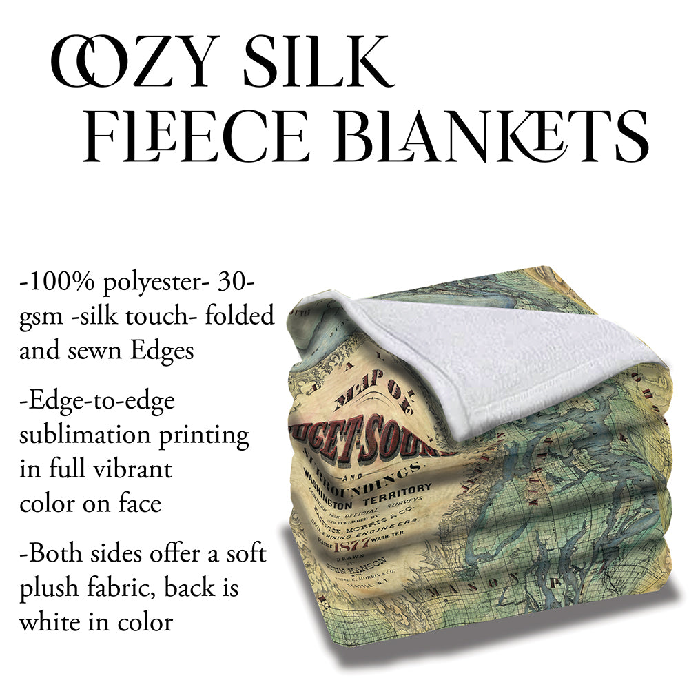 Puget Sound Washington Map Sherpa Fleece Blanket Double Stitched Edges Cozy Luxury Fluffy Super Soft 430 GSM Polyester Throw Blanket