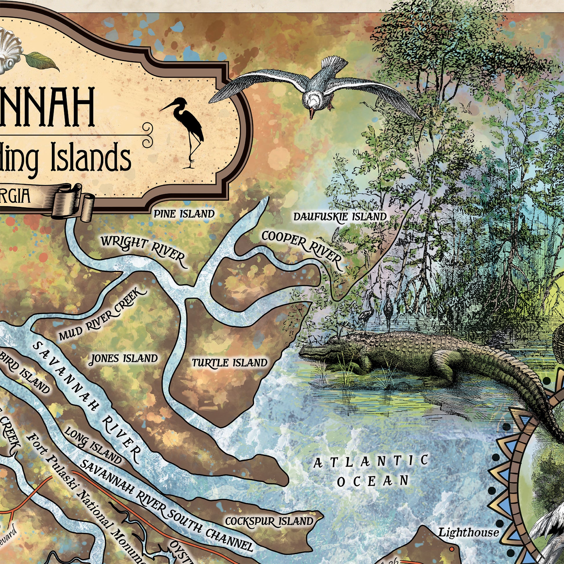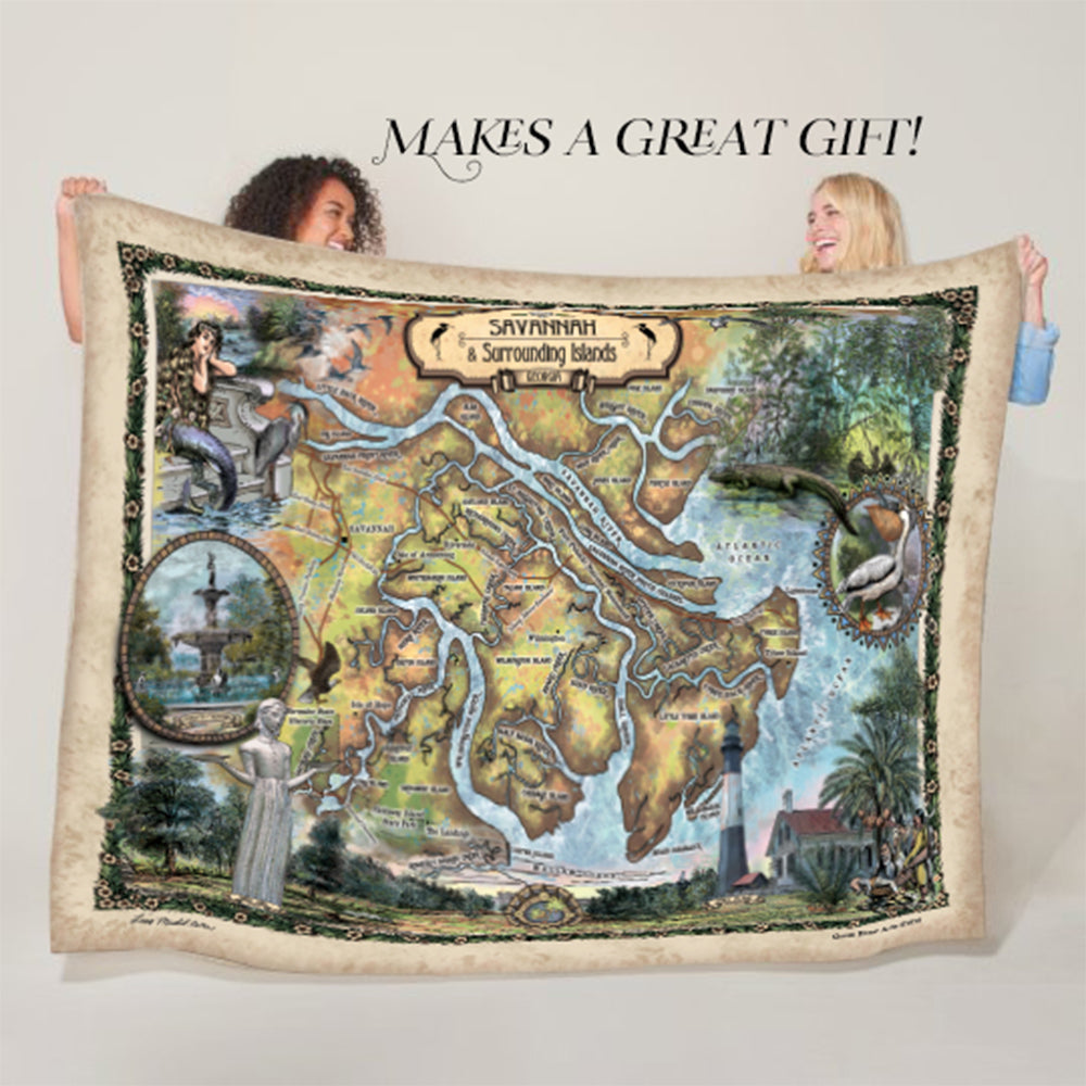 Savannah and Tybee Georgia Map - Sherpa blanket, silky fleece blanket and polar fleece blankets perfect for Mom gifts, Dad gifts, children gifts, and travel gifts. Ideal lake house decor, cabin decor, tropical décor for guest blankets, living room blankets, and anywhere you want to add a beautiful map blanket of your favorite place.