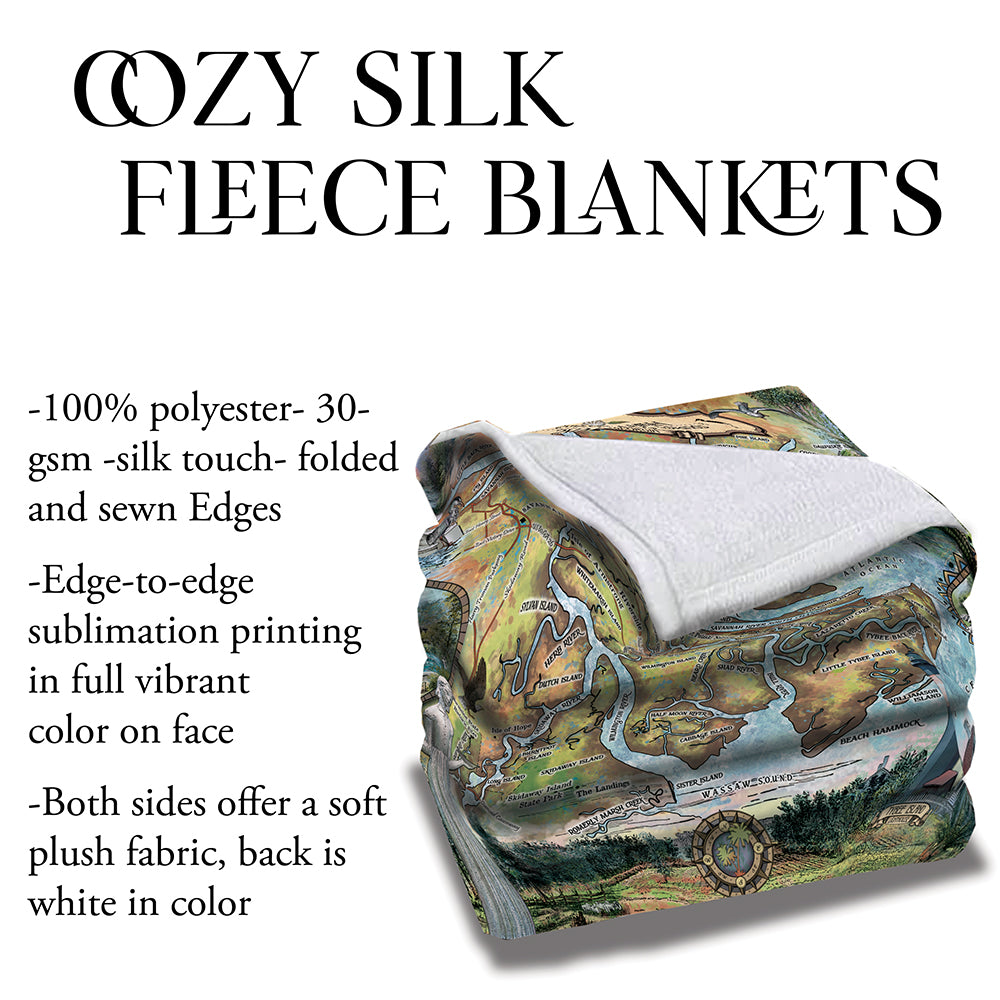 Savannah and Tybee Georgia Map Sherpa Fleece Blanket Double Stitched Edges Cozy Luxury Fluffy Super Soft 430 GSM Polyester Throw Blanket